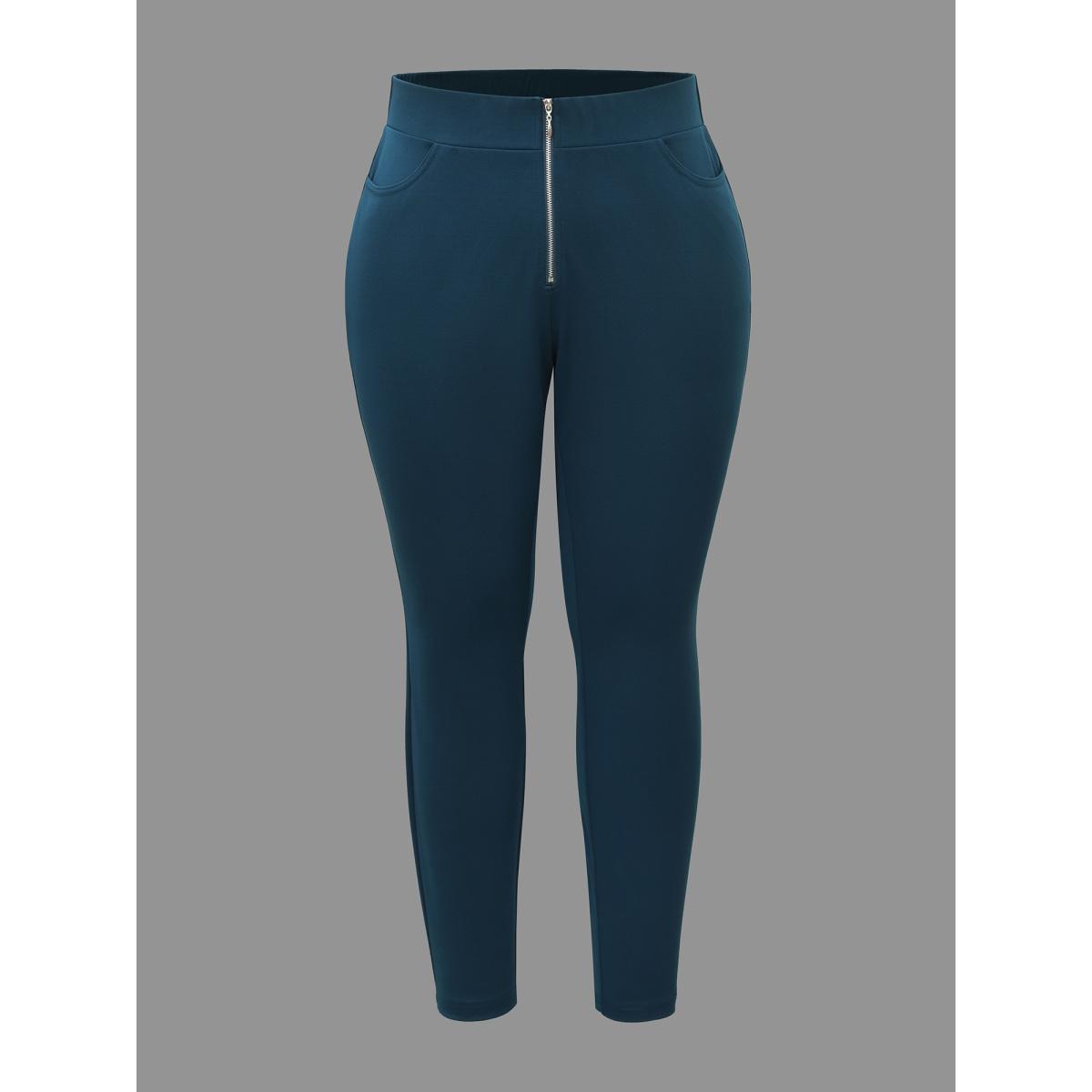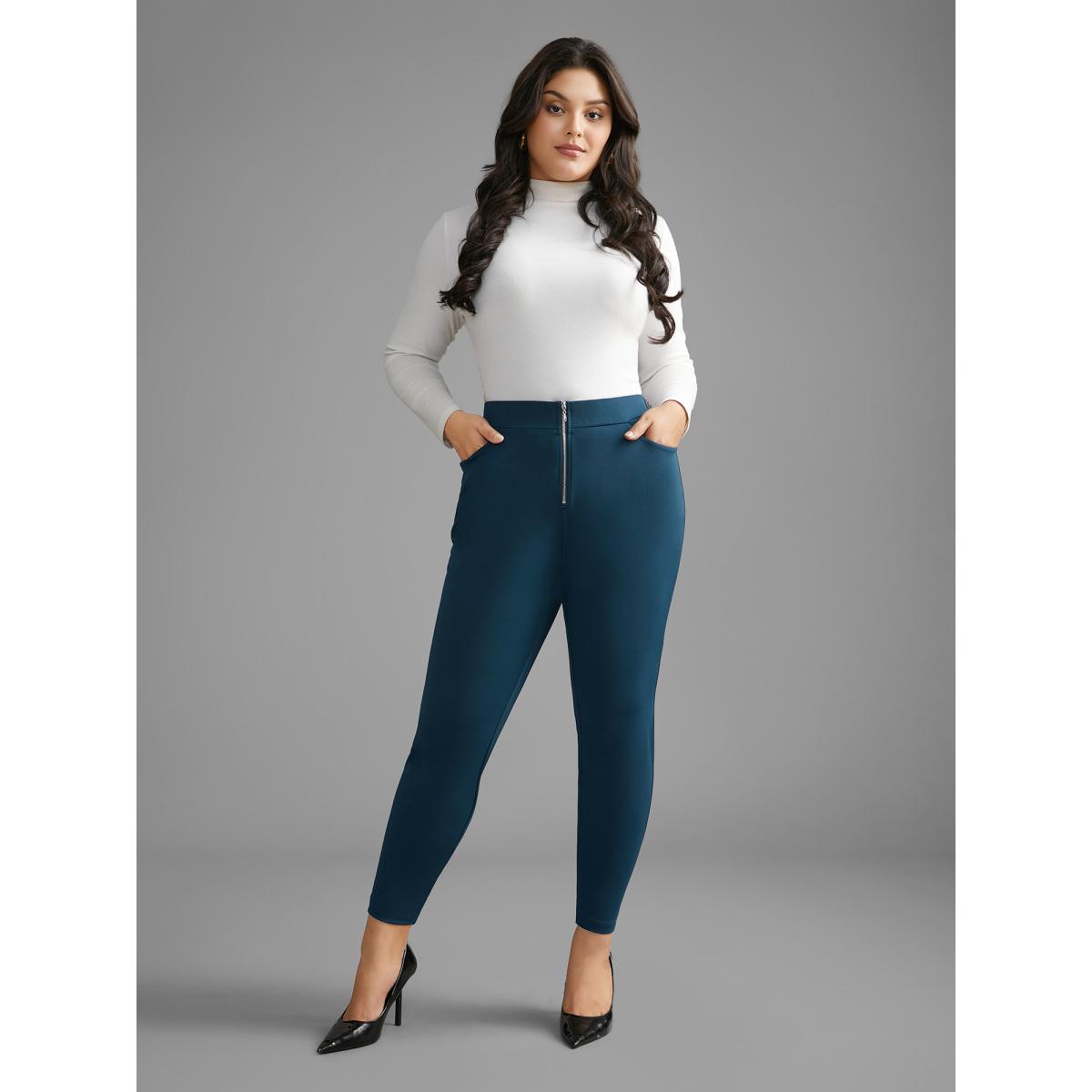 Plus Size Mid Rise Zipper Detail Skinny Pants Women Aegean Elegant Skinny Mid Rise Everyday Pants BloomChic 26/4X Product Image