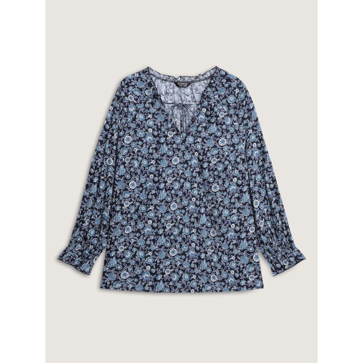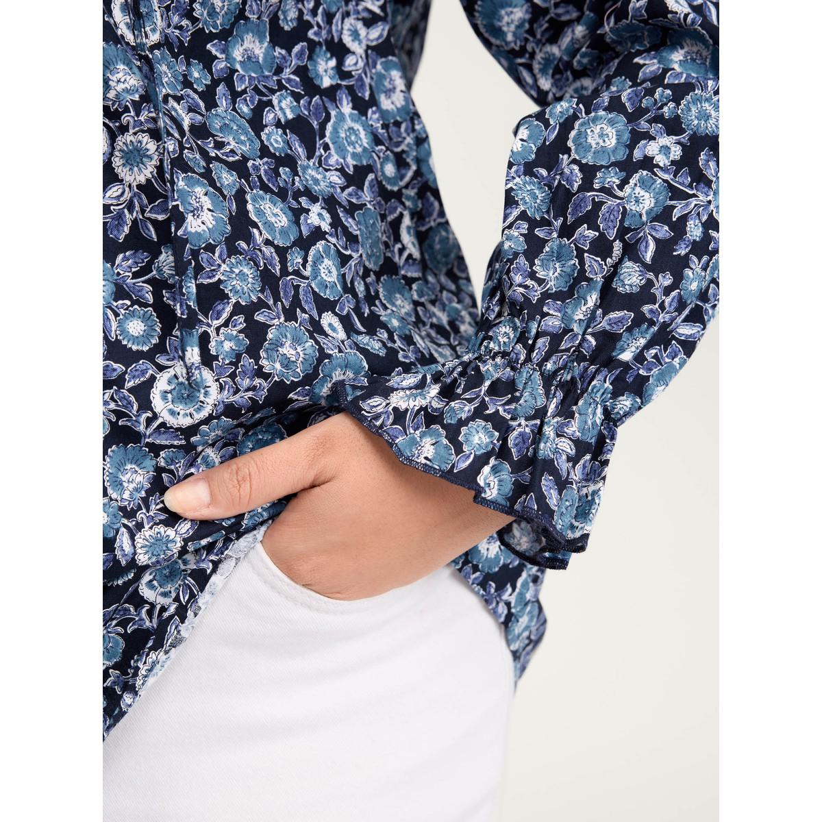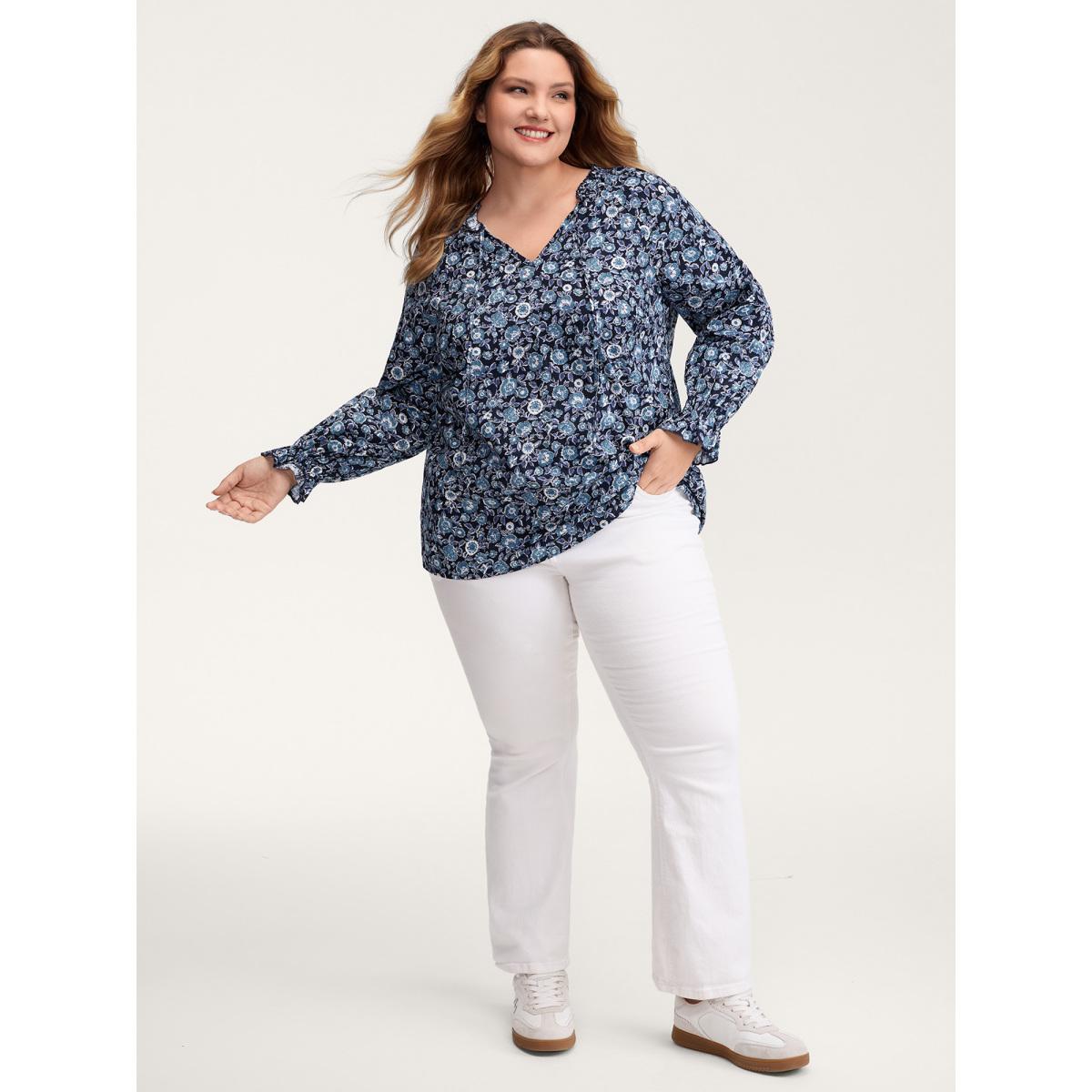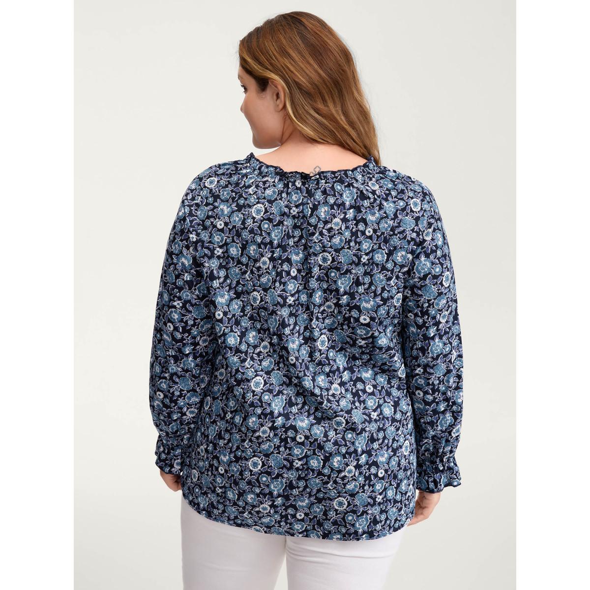 Plus Size Midnight Cotton Floral Print Toothpick Pleats Blouse Women Leisure Extra Long Sleeve Notched collar Casual Blouses BloomChic 30/6X