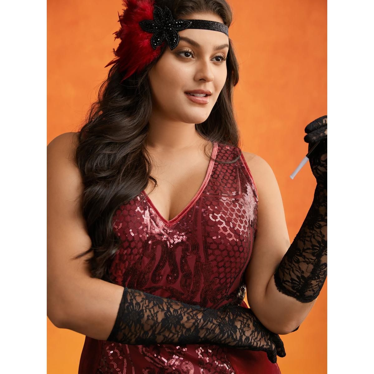 Plus Size Midnight Glamour Fringe Sequins Velvet Midi Dress Scarlet Women Cocktail Texture Party Curvy Bloomchic 30/6X