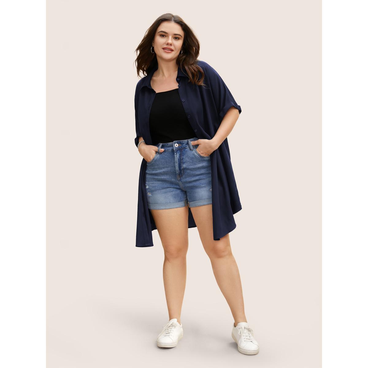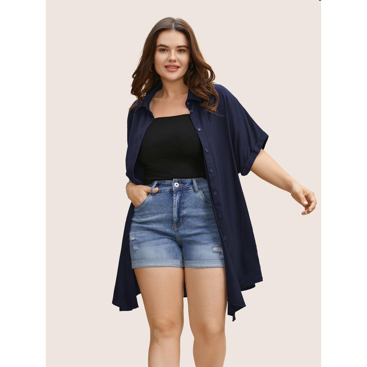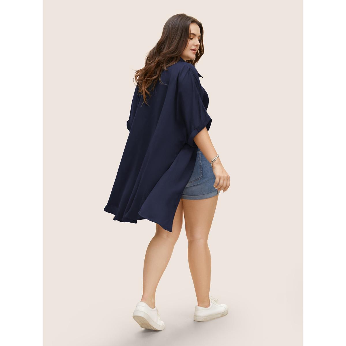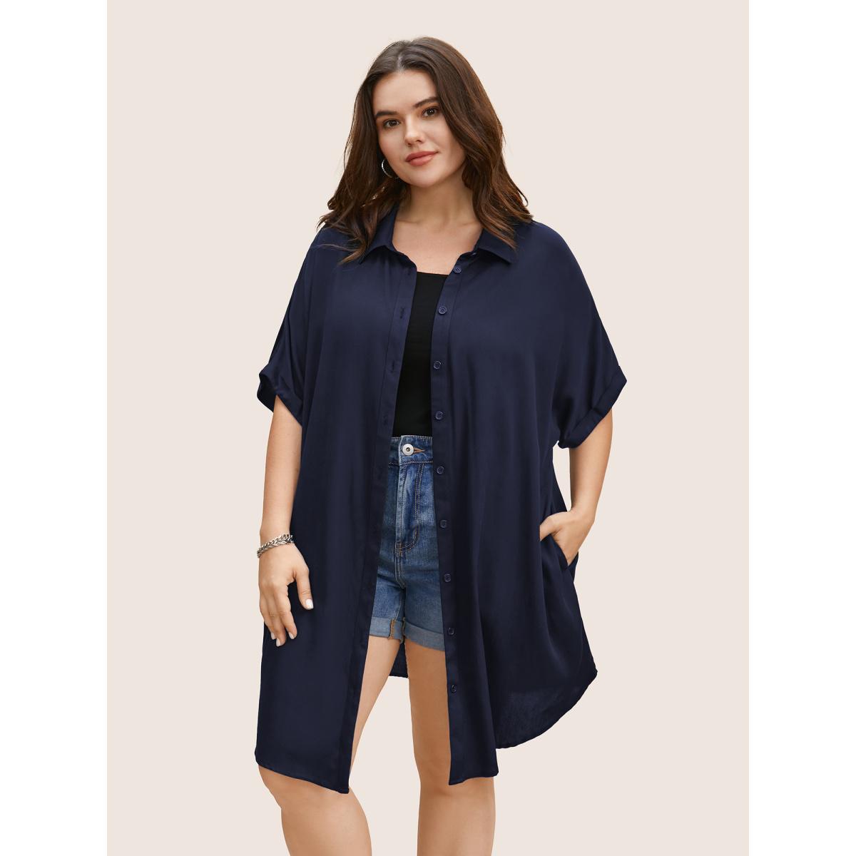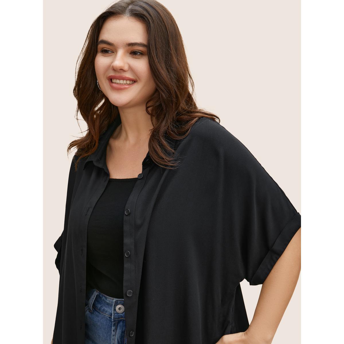 Plus Size Midnight Rayon Shirt Collar Cuffed Sleeve Pocket Blouse Women Casual Short sleeve Shirt collar Everyday Blouses BloomChic 12/L