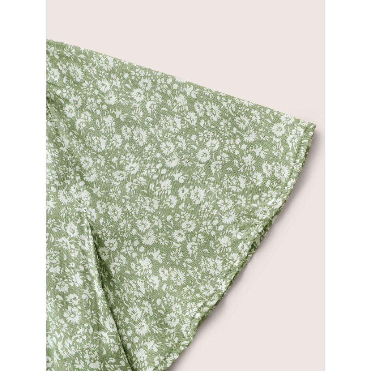 Plus Size Mint Ditsy Floral Notched Button Detail Blouse Women Elegant Short sleeve V-neck Everyday Blouses BloomChic 12/L Product Image
