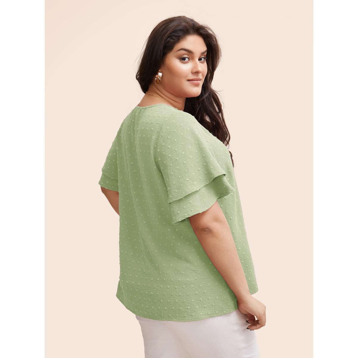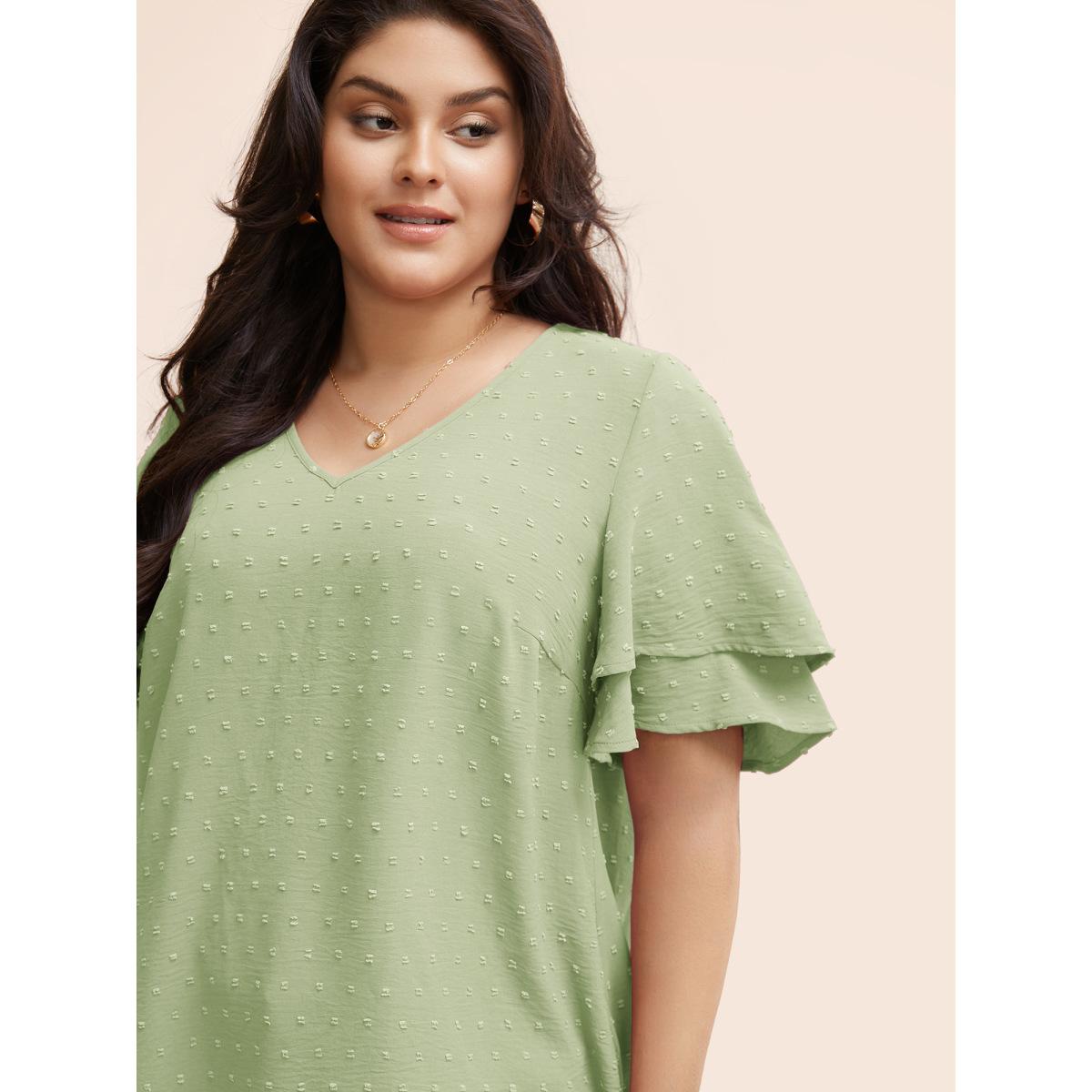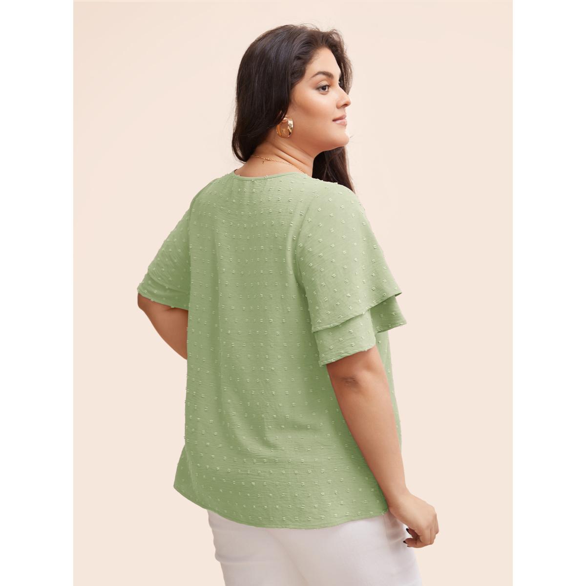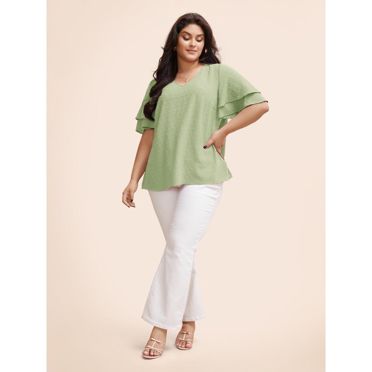 Plus Size Mint Plain Ruffle Tiered Sleeve V Neck Polka Dot Blouse Women Elegant Short sleeve V-neck Everyday Blouses BloomChic 30/6X