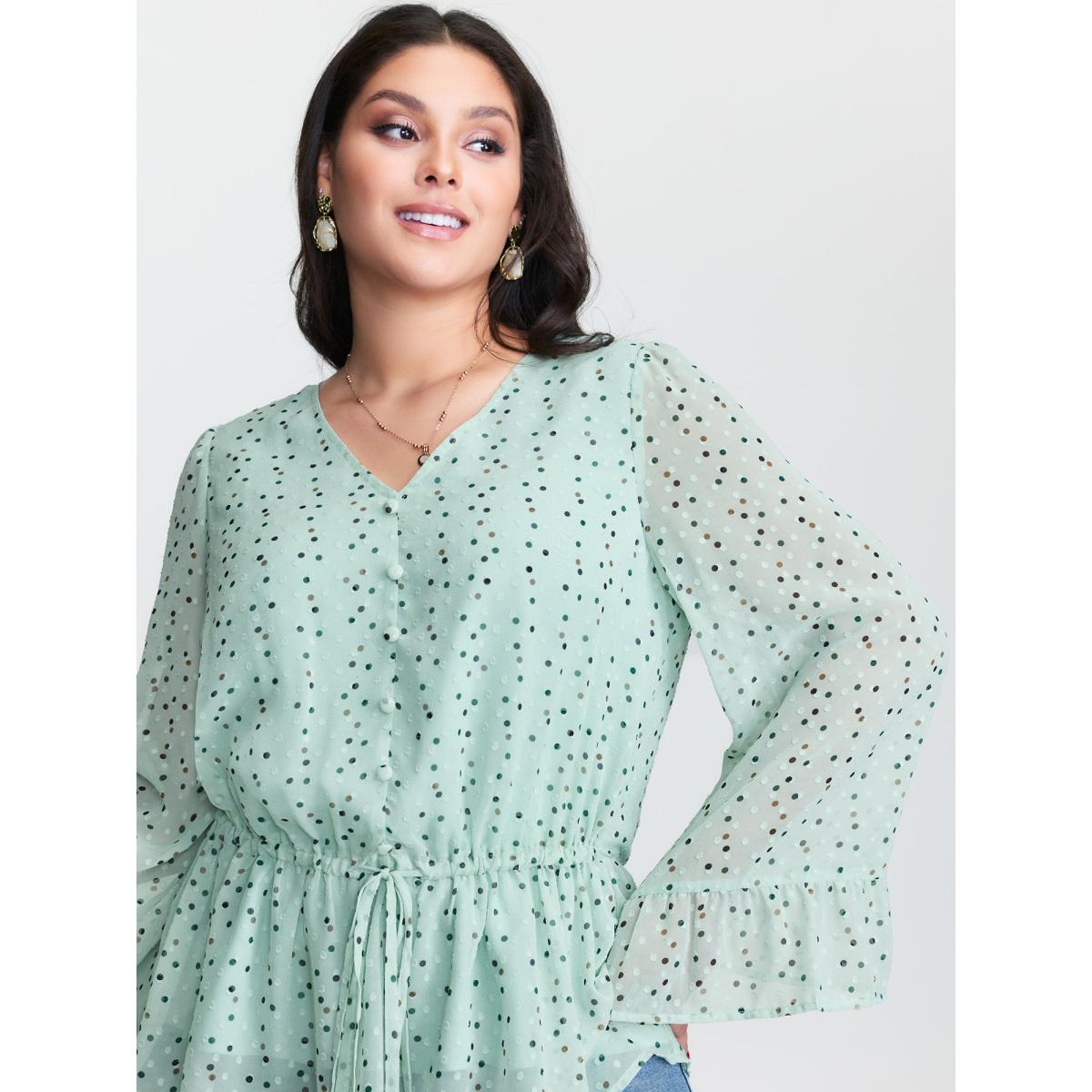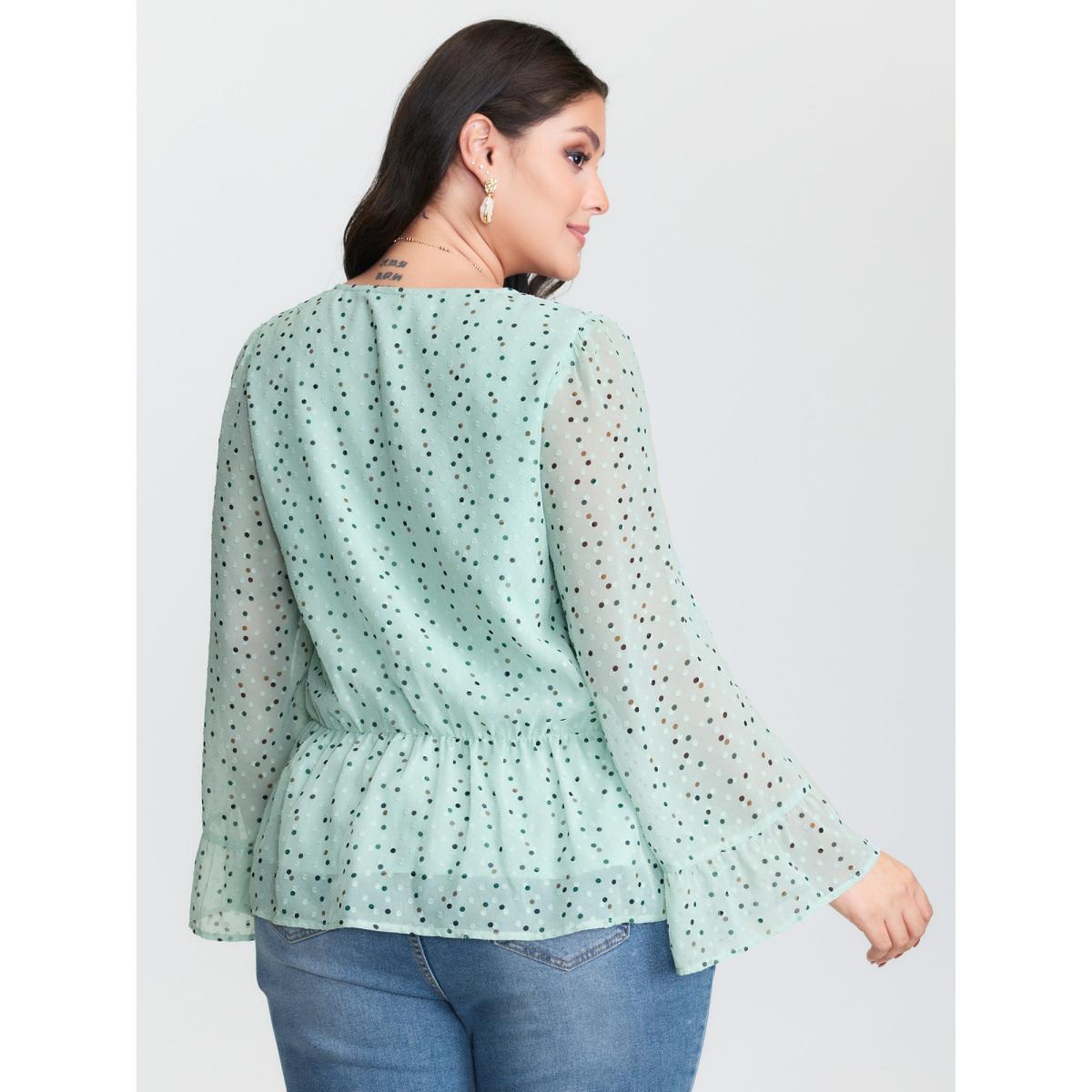 Plus Size Mint Polka Dots Waist-Tie V-Neck Blouse Women Timeless Extra Long Sleeve V-neck Elegant Blouses BloomChic 30/6X Product Image