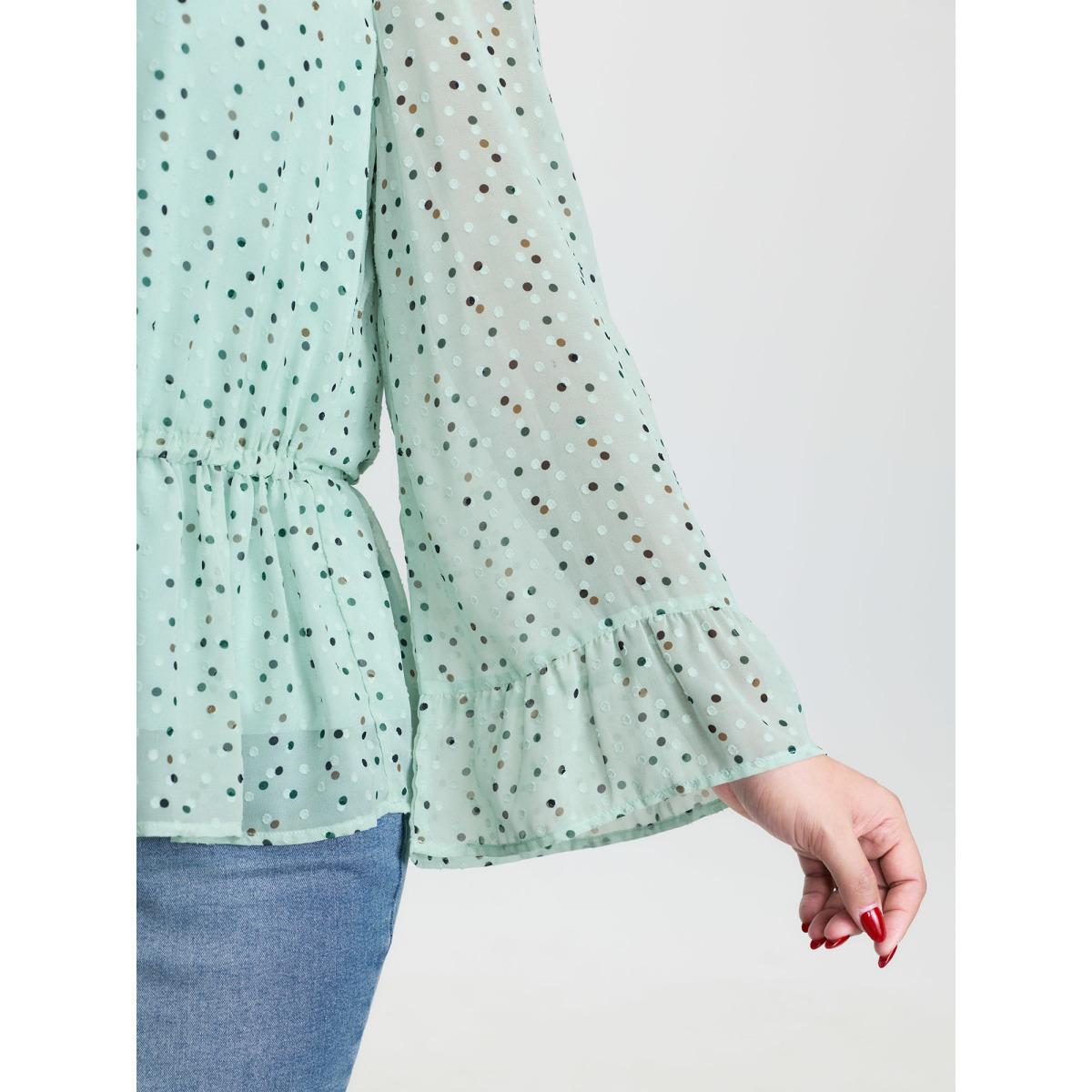 Plus Size Mint Plain Ruffle Tiered Sleeve V Neck Polka Dot Blouse Women Elegant Short sleeve V-neck Everyday Blouses BloomChic 30/6X