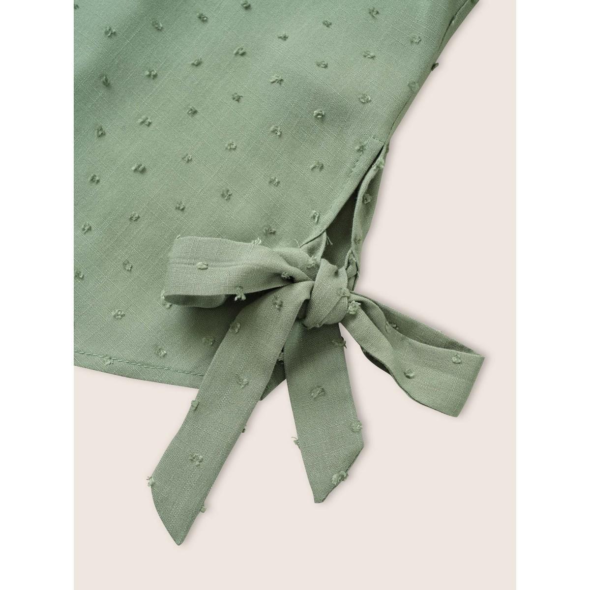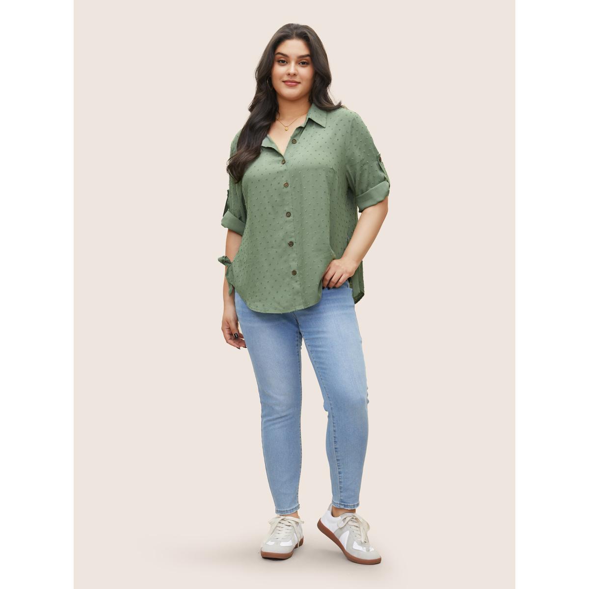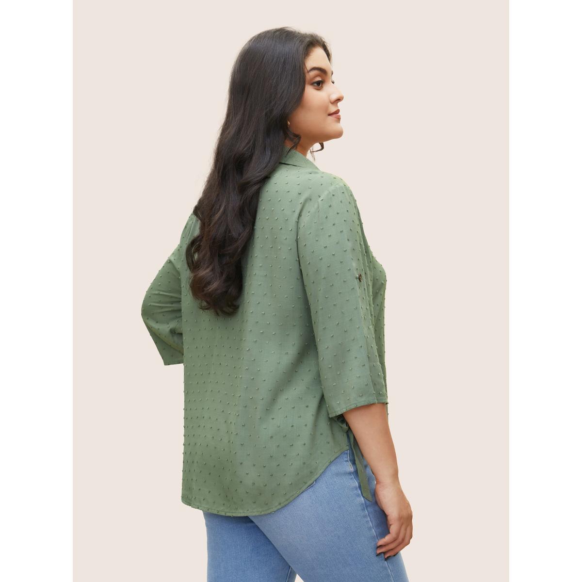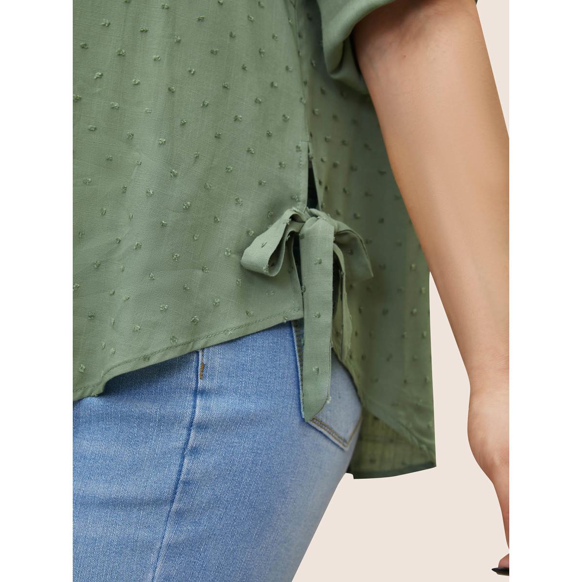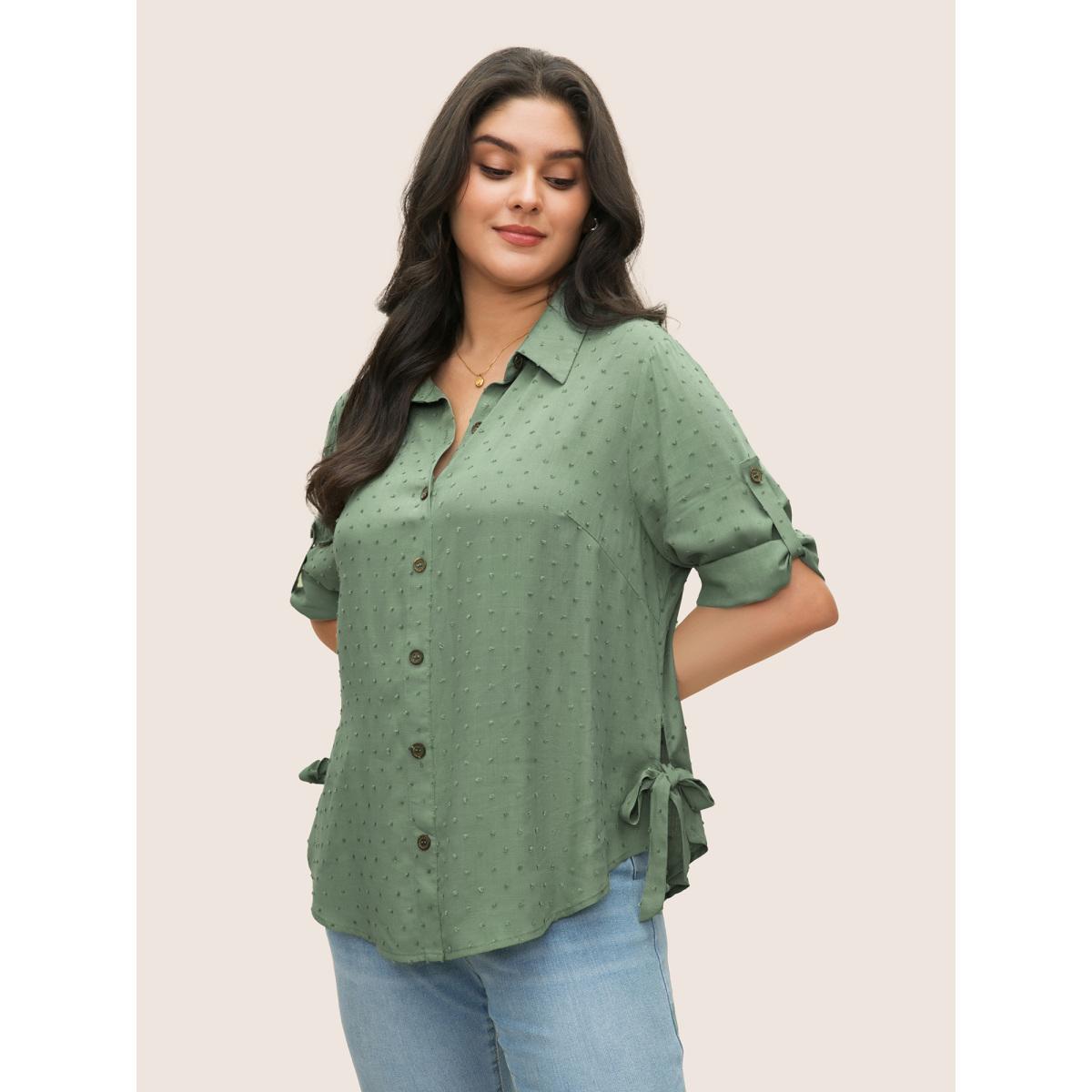 Plus Size Mint Solid Textured Ties Tab Sleeve Blouse Women At the Office Elbow-length sleeve Shirt collar Work Blouses BloomChic 18-20/2X