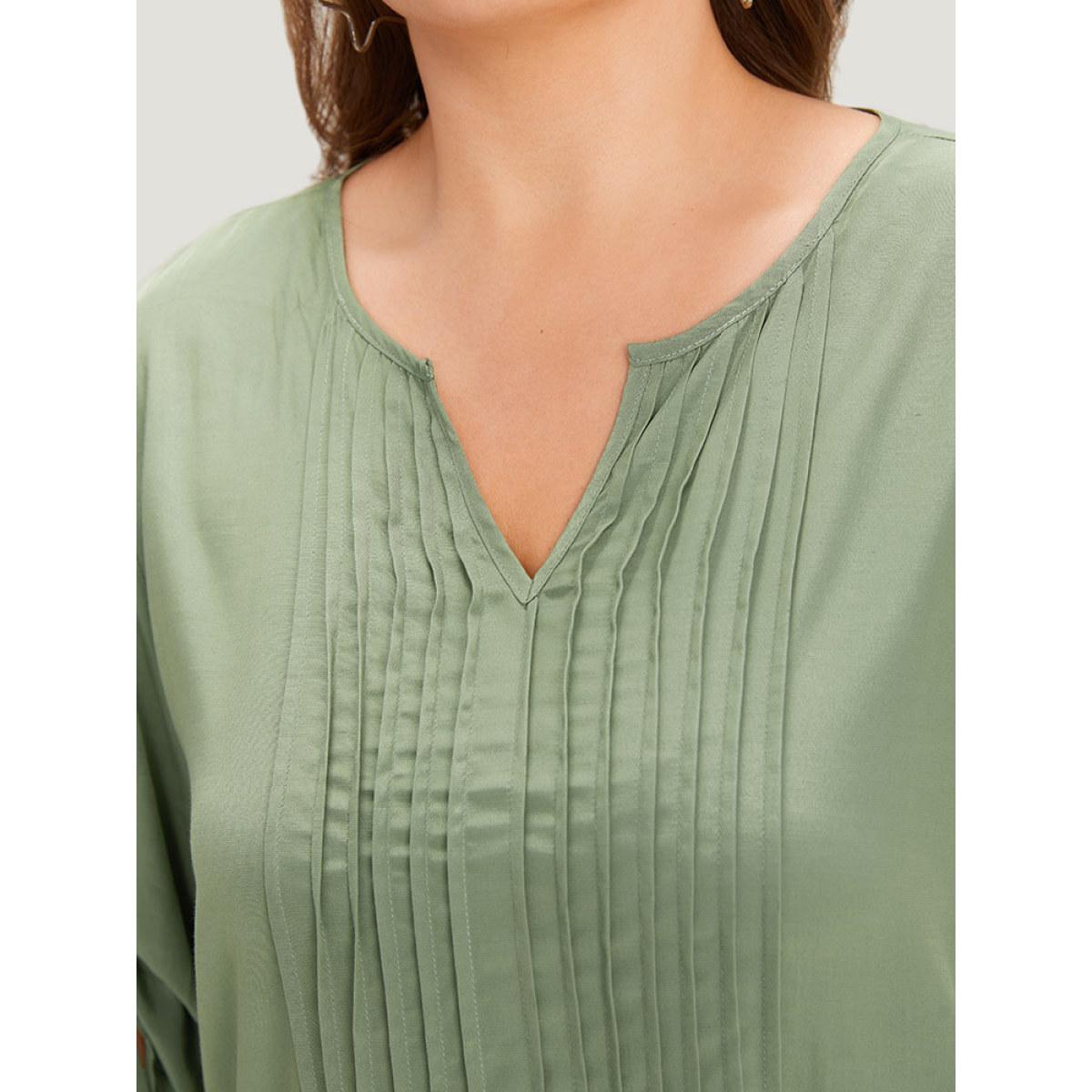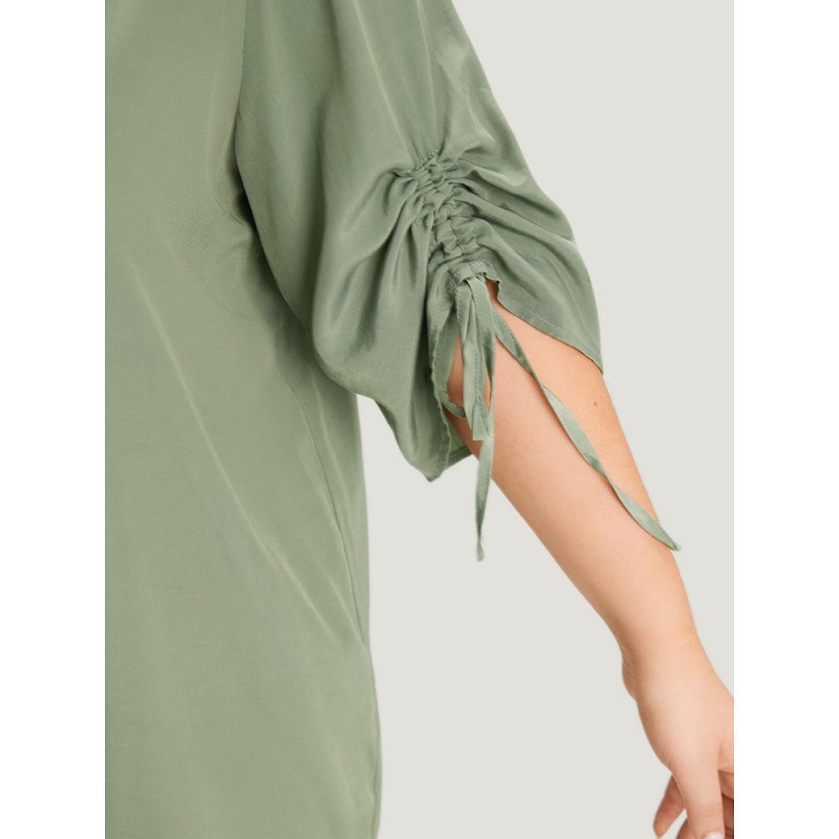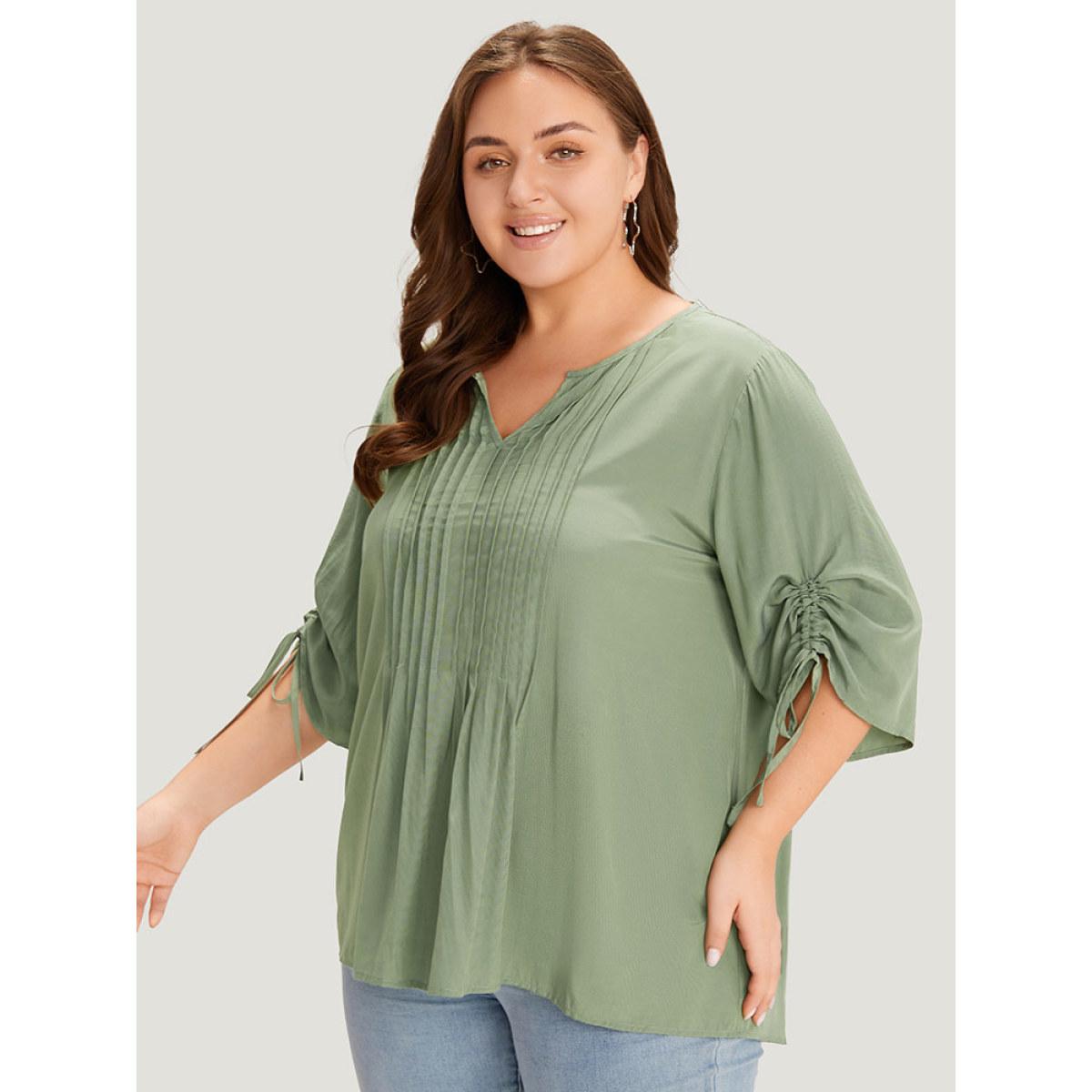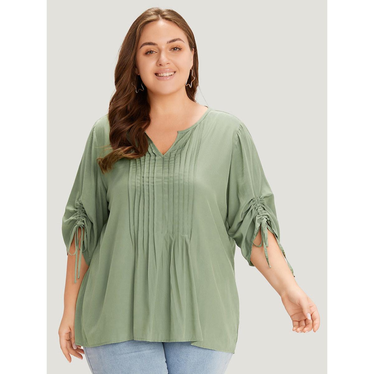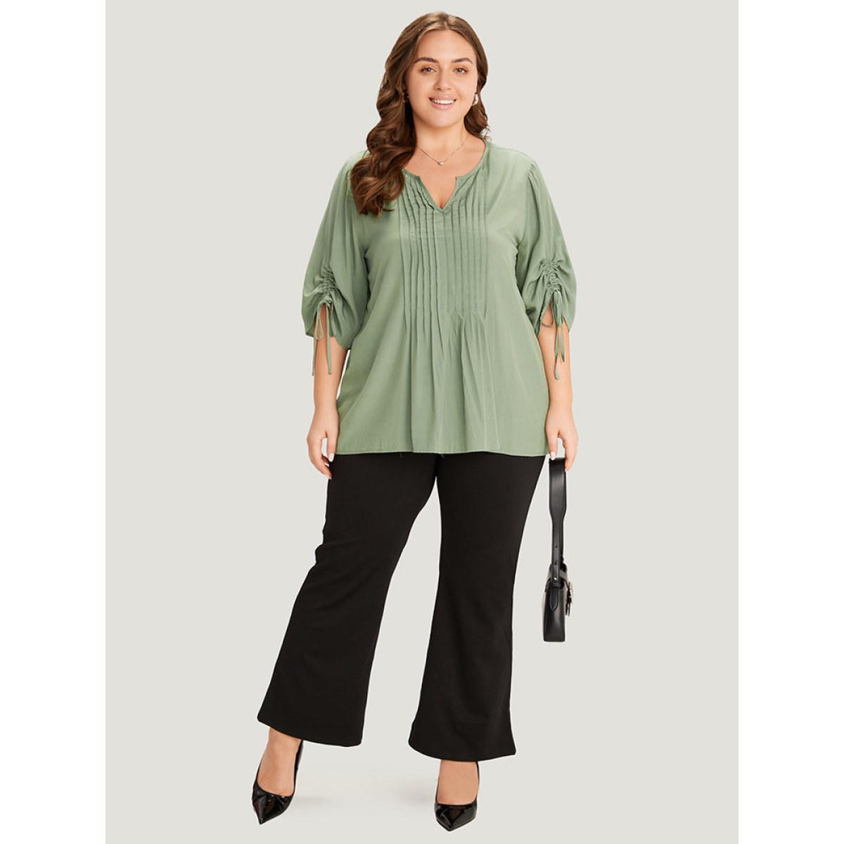 Plus Size Mint Supersoft Essentials Plain Notched Pleated Drawstring Blouse Women Office Half Sleeve Notched collar Work Blouses BloomChic 14-16/1X