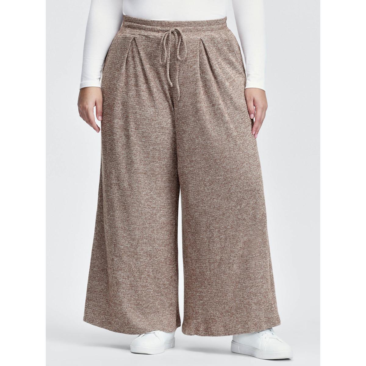 Plus Size Mixed Color Knit Pleated Drawstring Pants Women LightBrown Leisure Loose Mid Rise Casual Pants BloomChic 22-24/3X