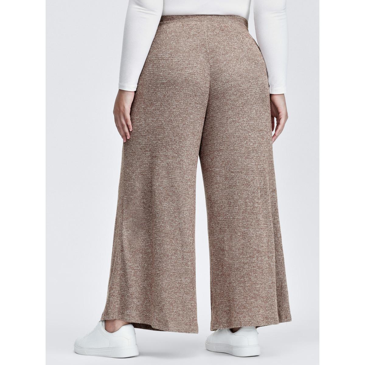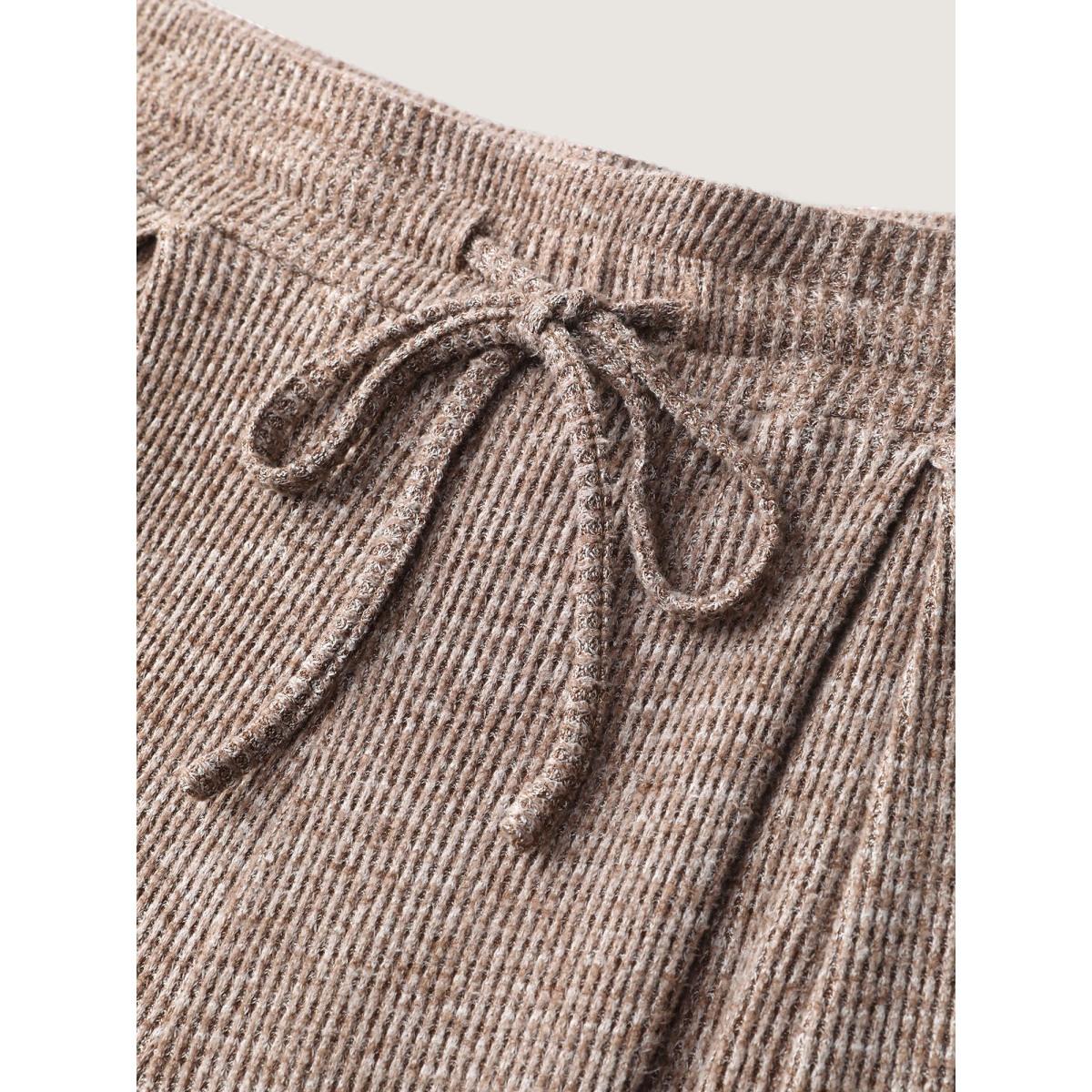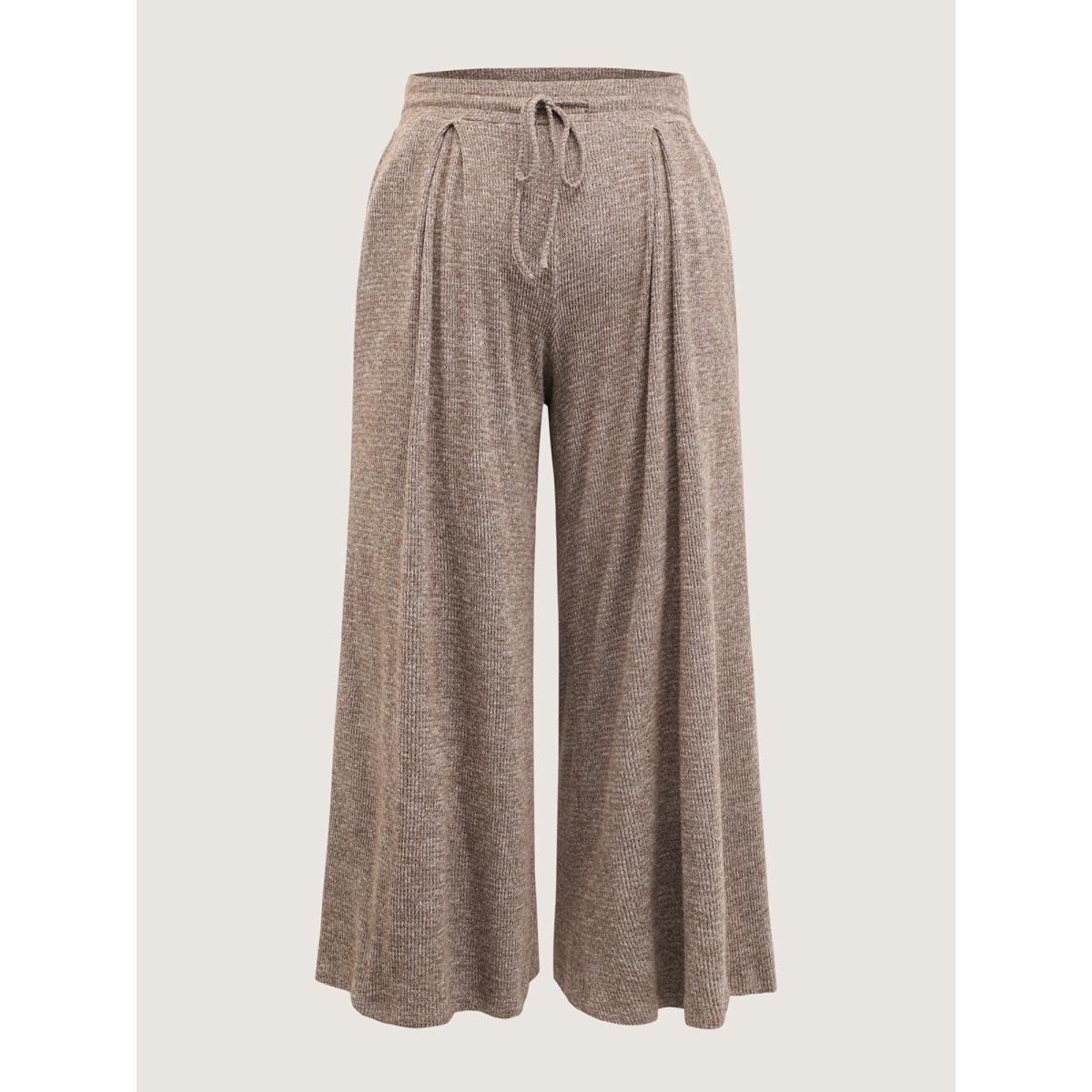 Plus Size Mixed Color Knit Pleated Drawstring Pants Women LightBrown Leisure Loose Mid Rise Casual Pants BloomChic 22-24/3X Product Image
