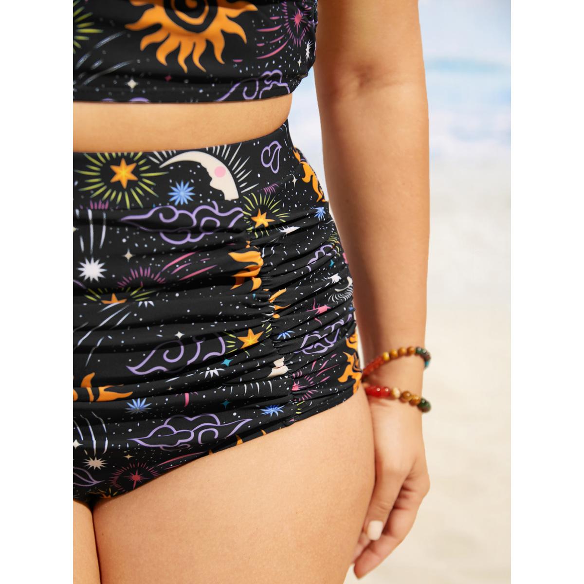 Plus Size Moon & Star Ruched High Rise Swim Bottom Women's Swimwear Black Beach Gathered High stretch Skinny High Rise Curve Swim Bottoms BloomChic 10/M