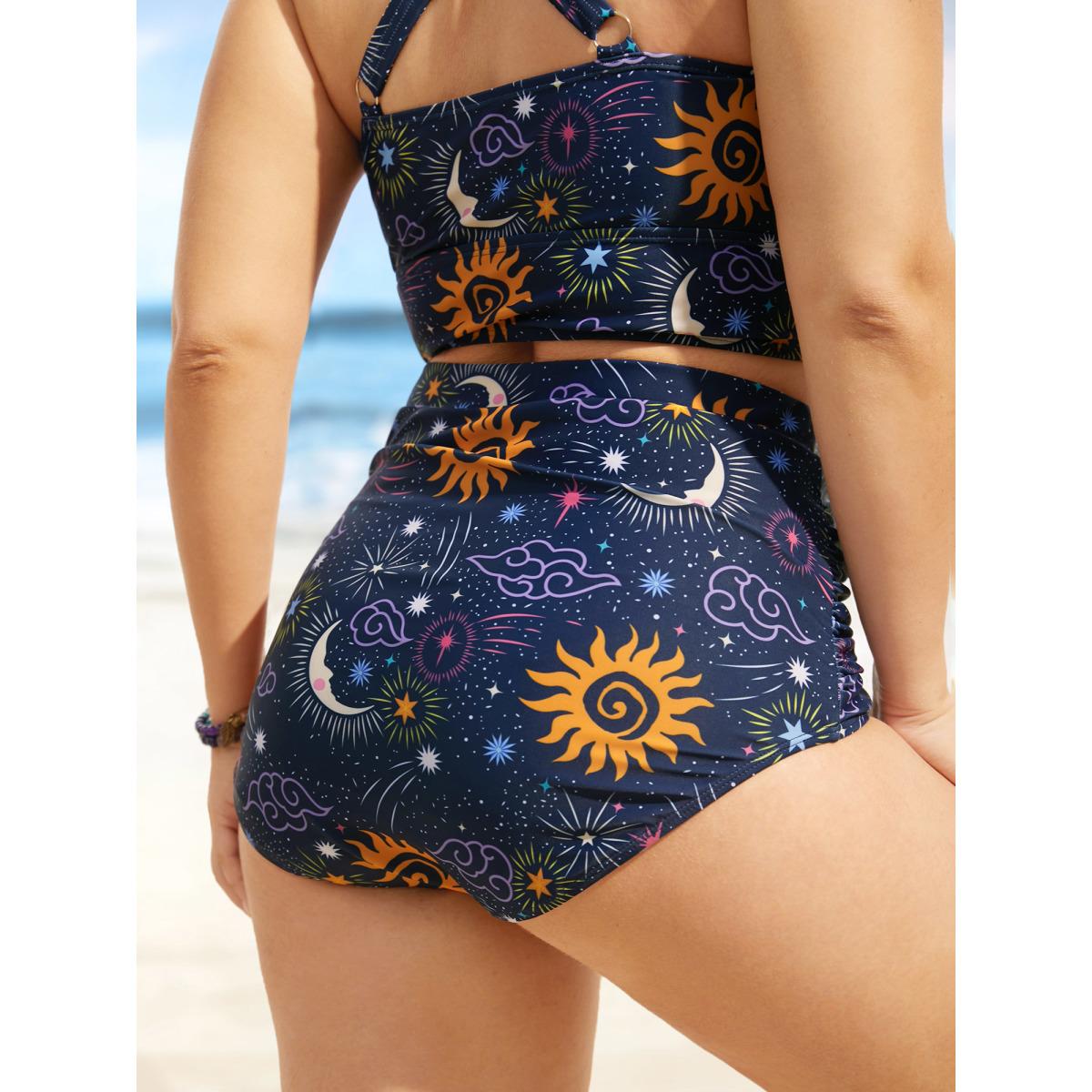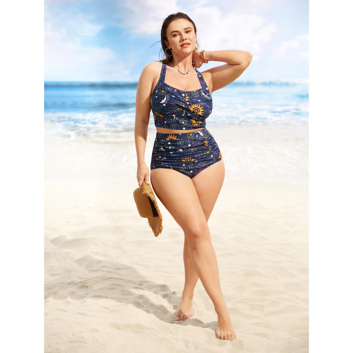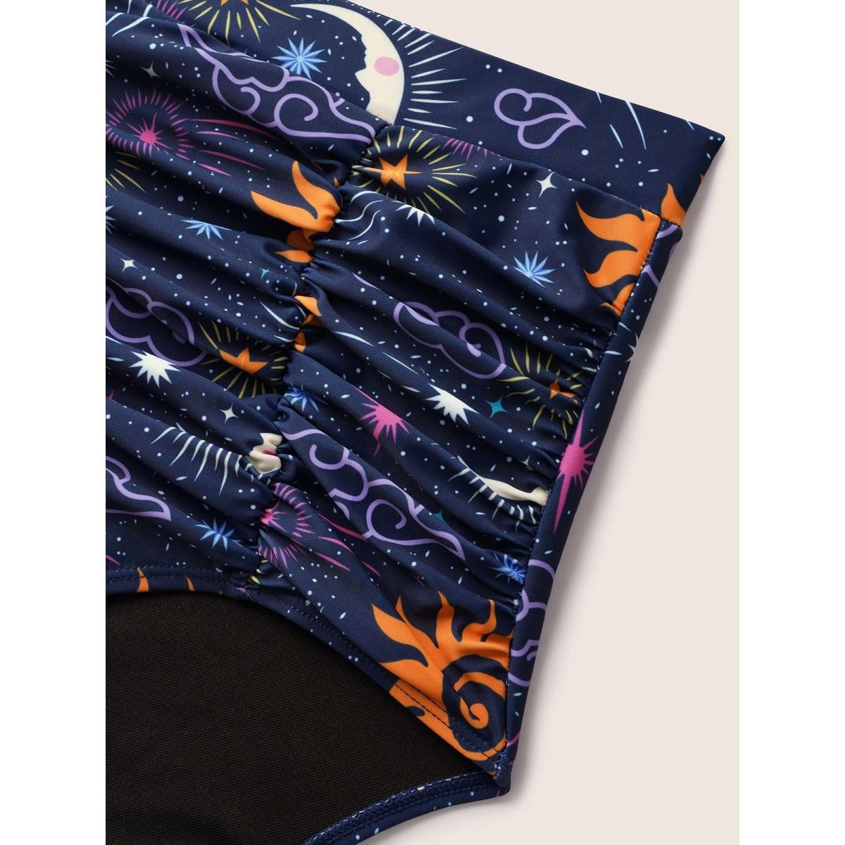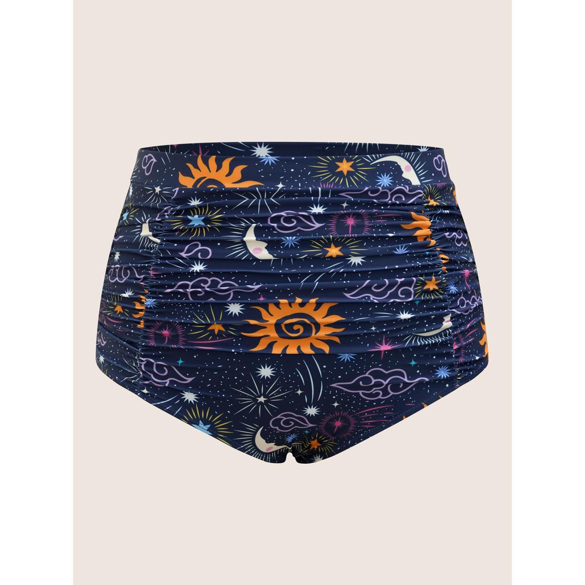 Plus Size Moon & Star Ruched High Rise Swim Bottom Women's Swimwear Midnight Beach Gathered High stretch Skinny High Rise Curve Swim Bottoms BloomChic 18-20/2X