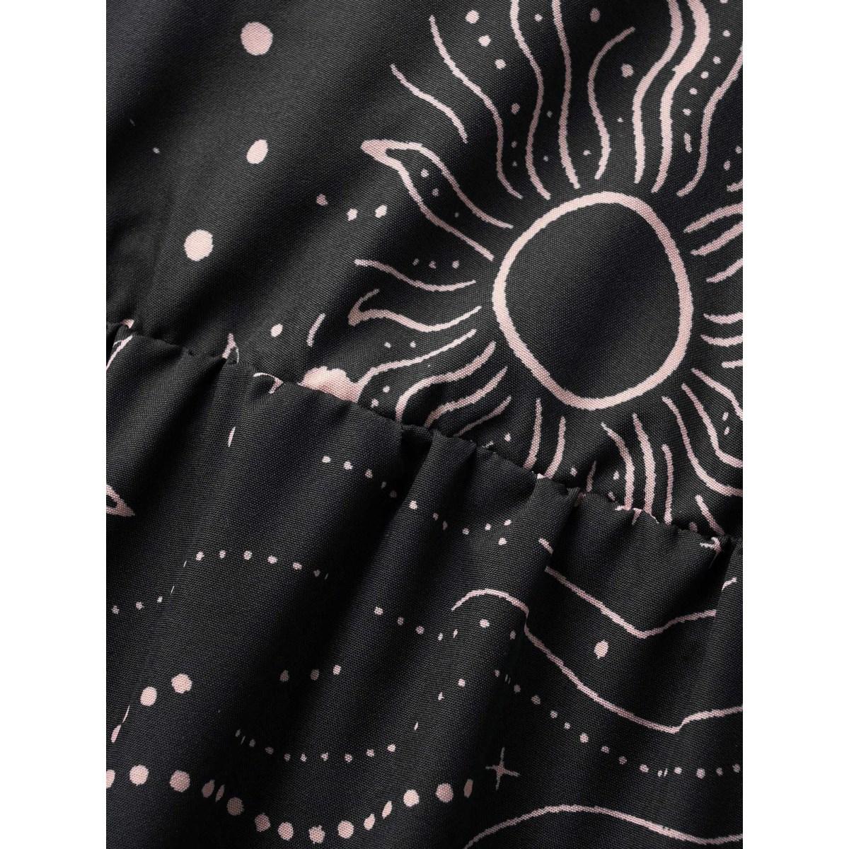 Plus Size Moon & Star Ruffle Cap Sleeve Maxi Dress Black Women Resort Belted Overlap Collar Cap Sleeve Curvy BloomChic 12/L Product Image