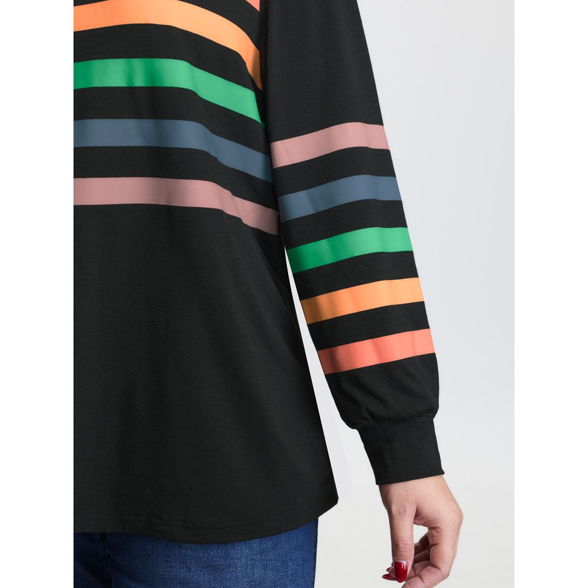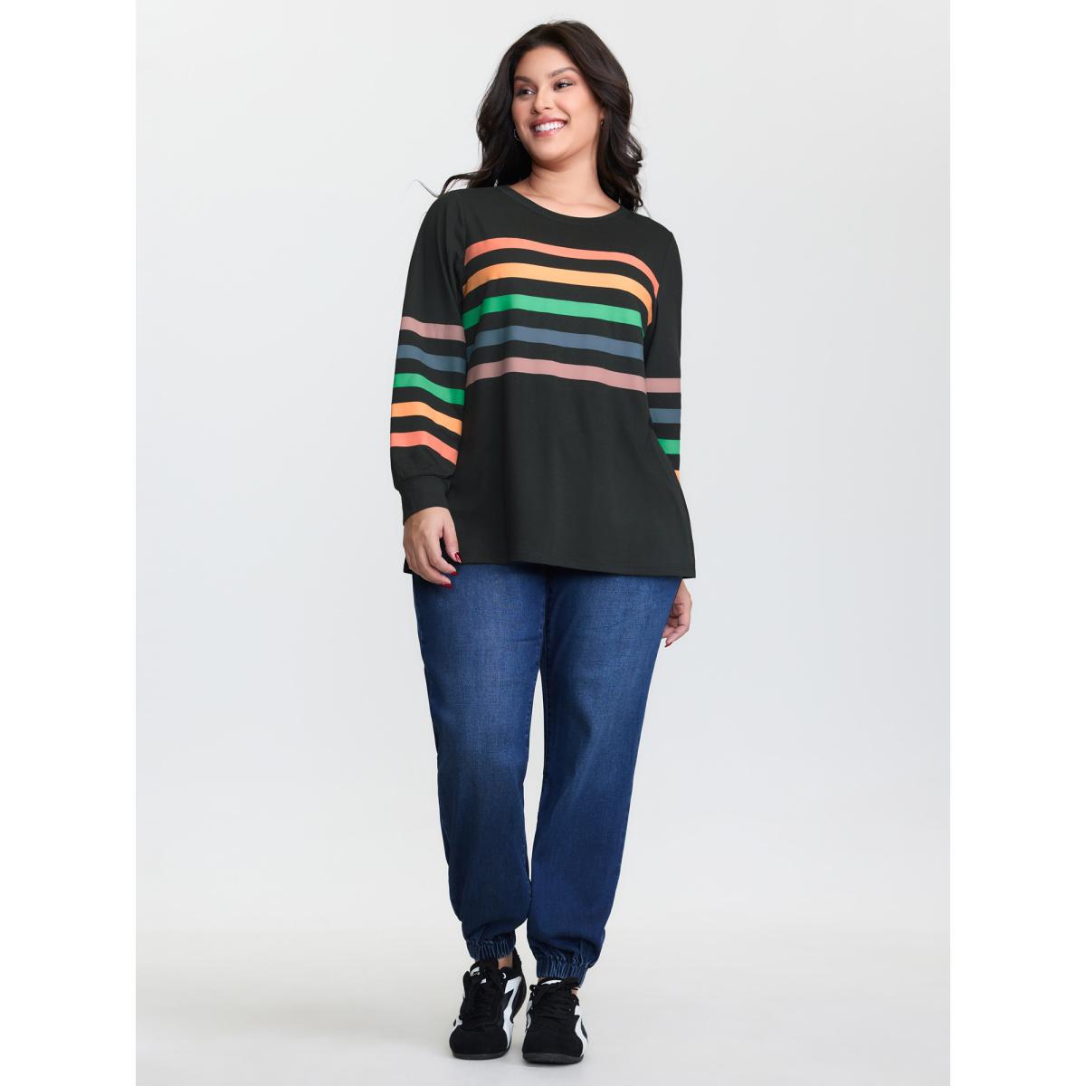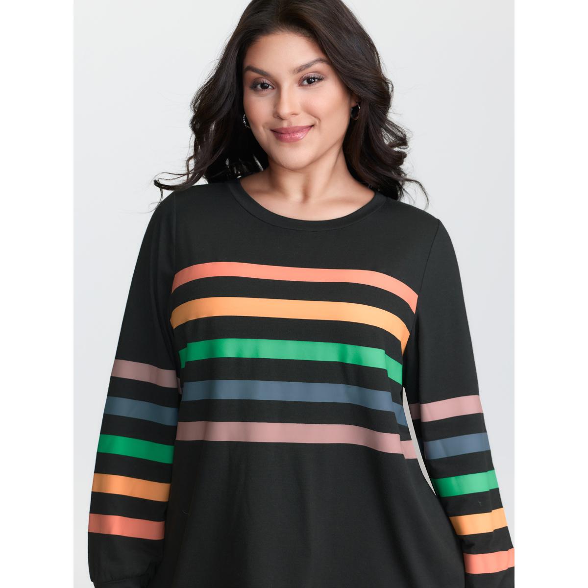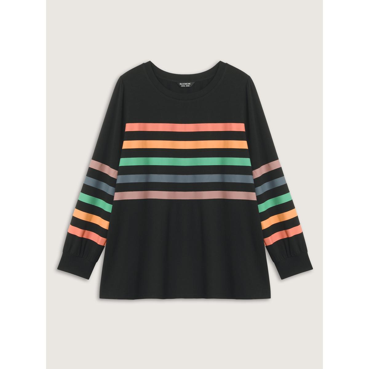 Plus Size Multi-Color Striped Round Neck T-Shirt Black Women Playful Non Round Neck Casual T-shirts BloomChic 22-24/3X