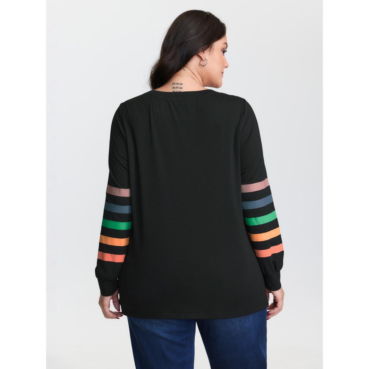 Plus Size Multi-Color Striped Round Neck T-Shirt Black Women Playful Non Round Neck Casual T-shirts BloomChic 22-24/3X Product Image