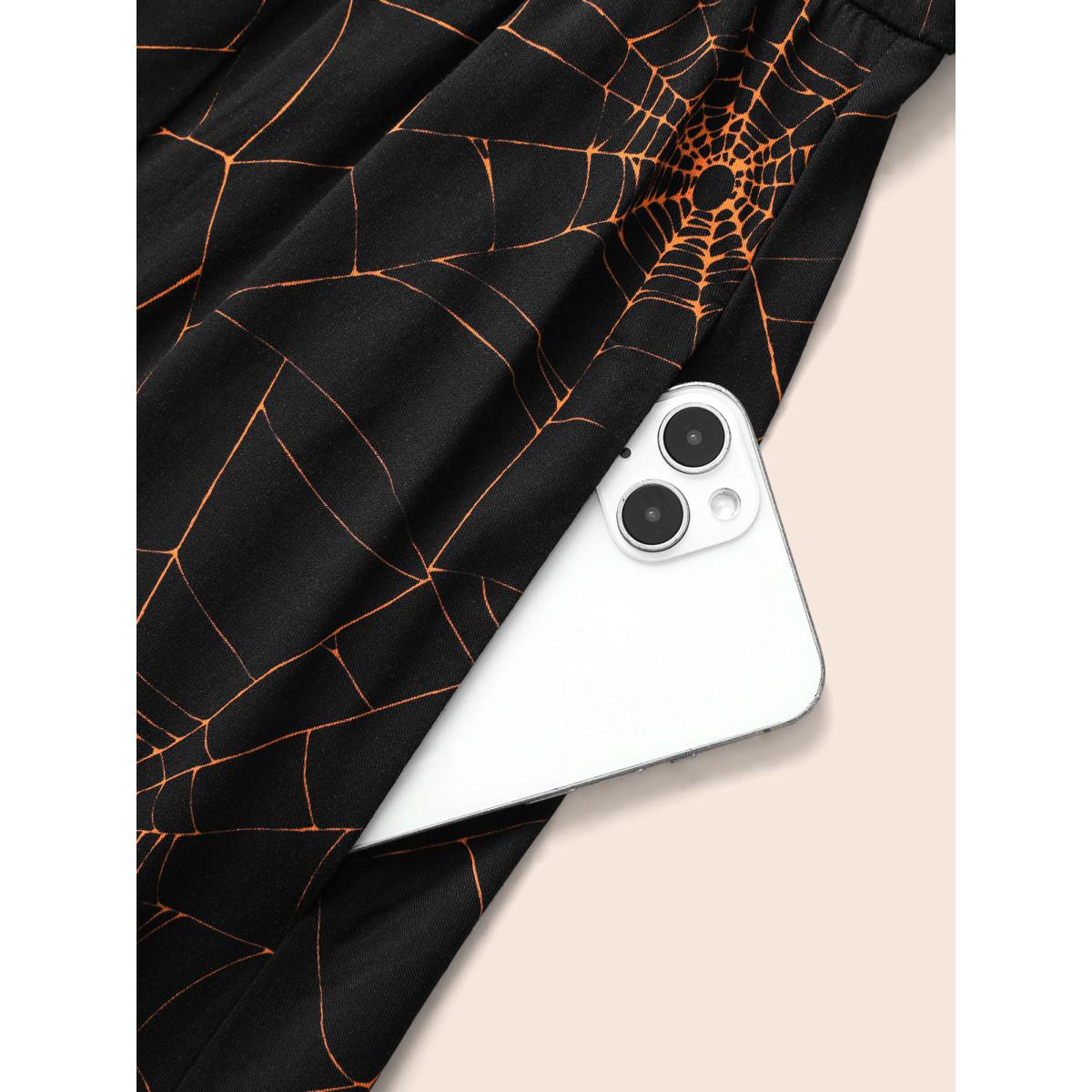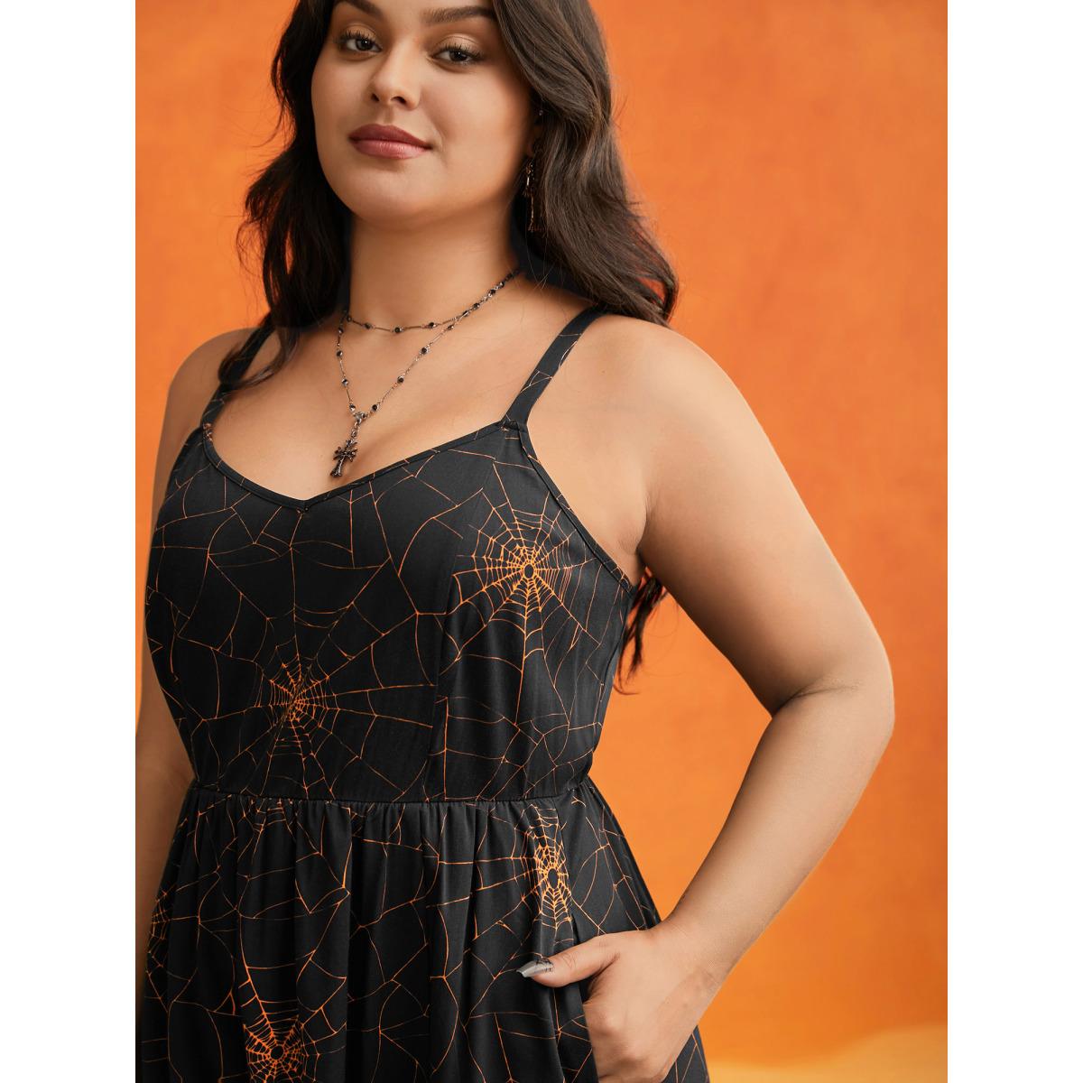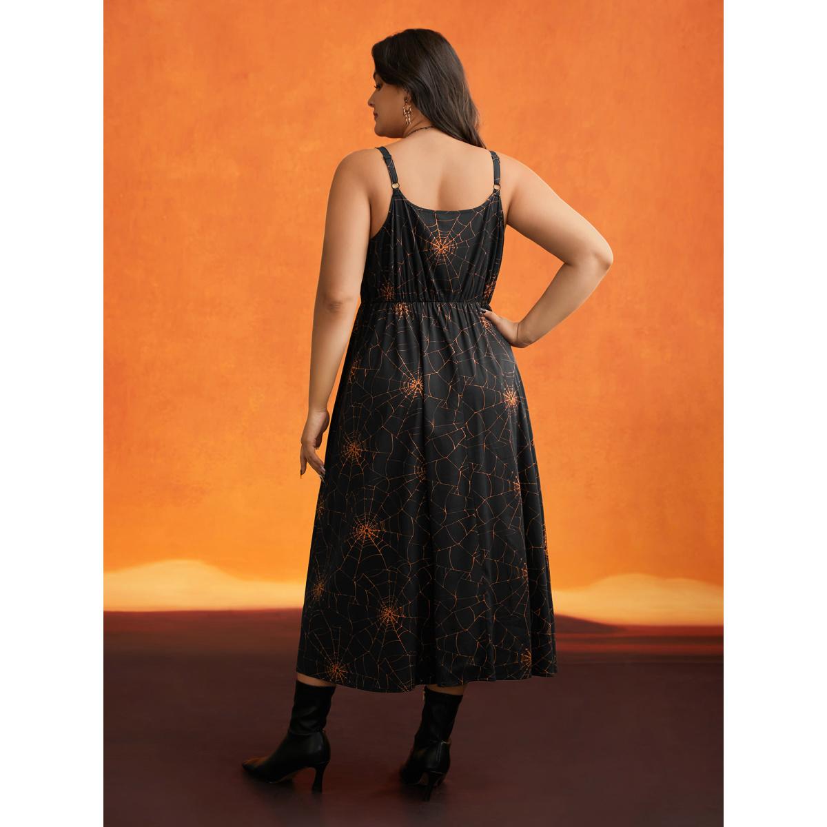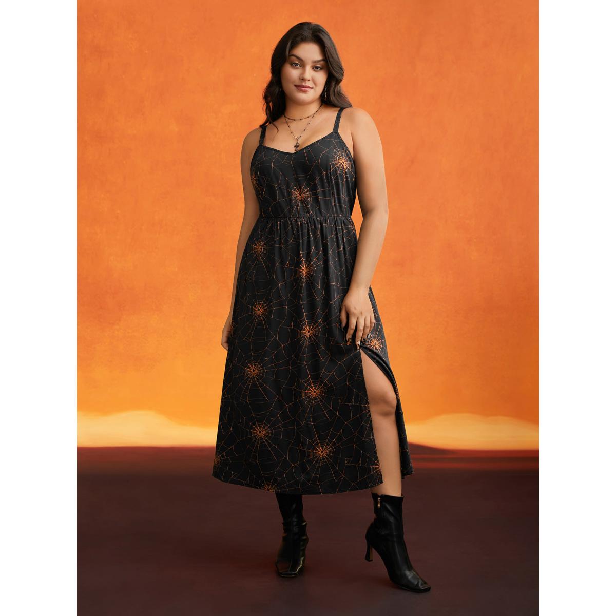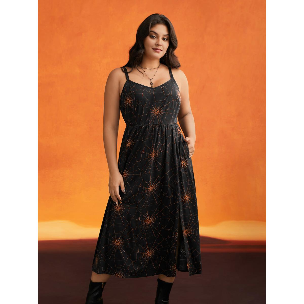 Plus Size Mystical Spiderweb Waist-Cinching Midi Dress Black Women Cocktail Slit Party Curvy Bloomchic 18-20/2X