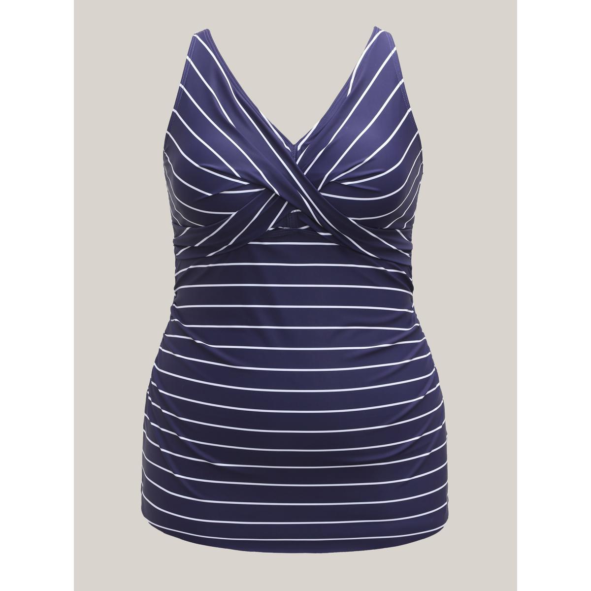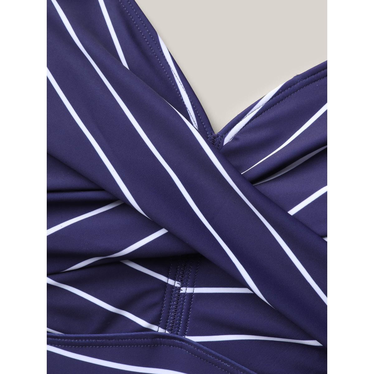 Plus Size Nautical Striped Print Front-Twist Swim Top Women's Swimwear Indigo Beach Twist High stretch Skinny V-neck Curve Swim Tops BloomChic 12/L