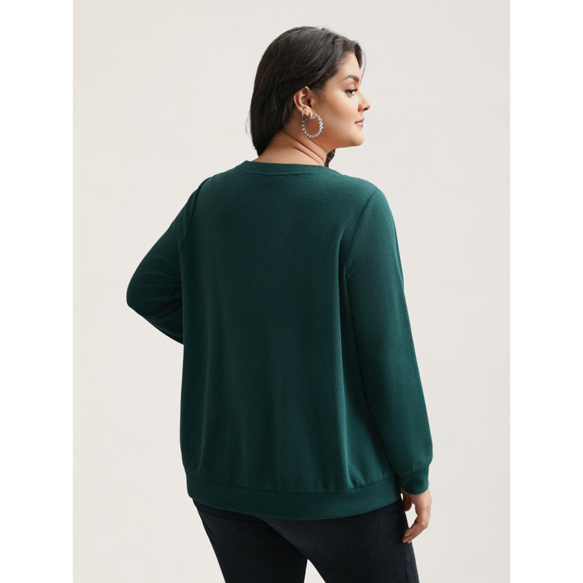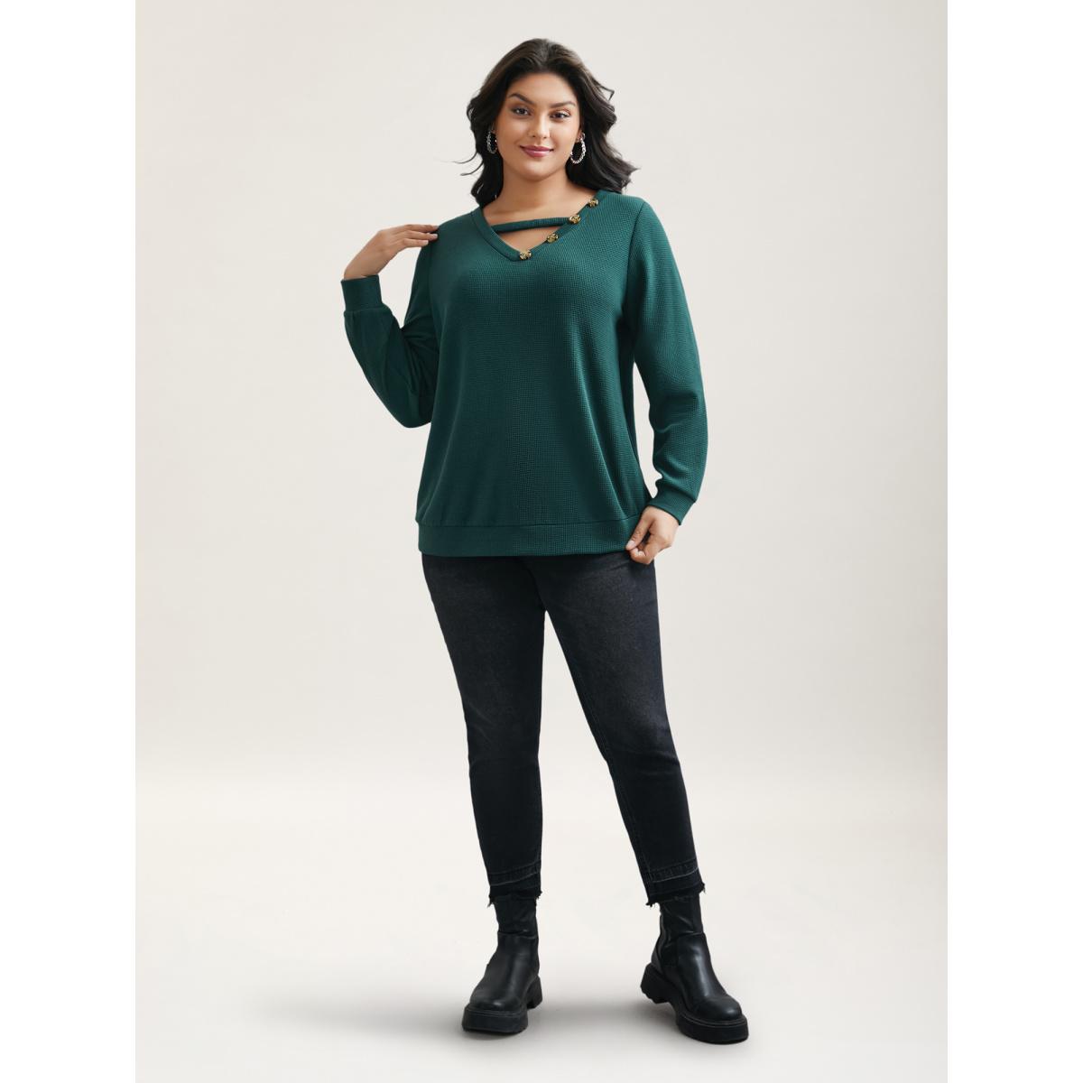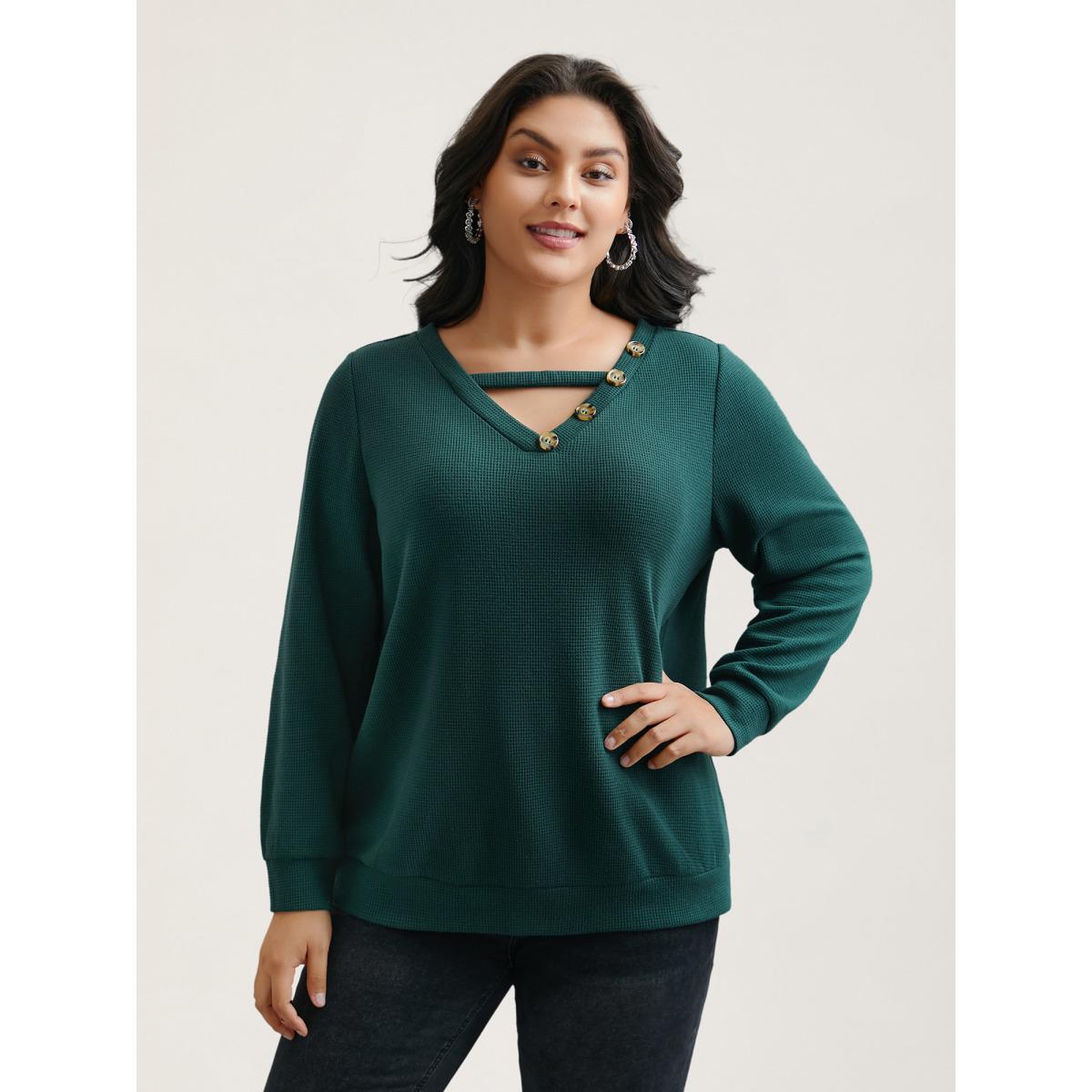 Plus Size Neck Cut-Out Button Detail Sweatshirt Women DarkSlateGray Casual Cut-Out V-neck Everyday Sweatshirts BloomChic 10/M