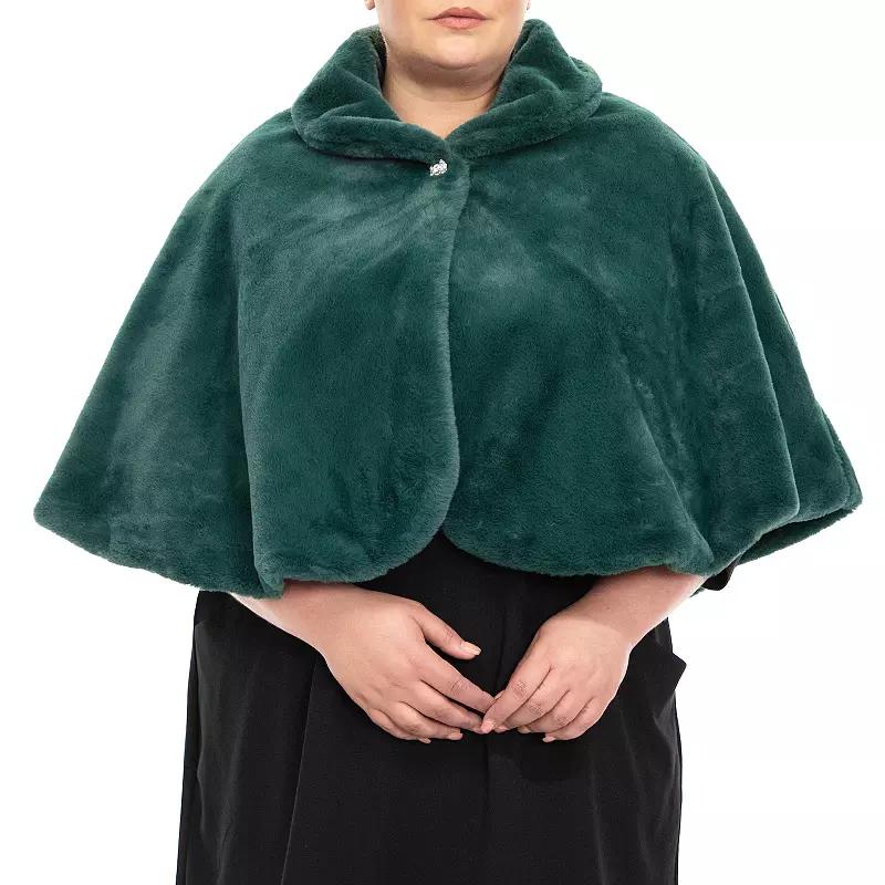 Elevate your evening look with this luxurious faux fur capelet from Nina Leonard, designed to drape effortlessly over your shoulders. The chic collar and sparkling crystal button add a touch of elegance, making it the perfect accessory for formal occasions or cozy nights out, ensuring you feel glamorous and warm all at once.Elevate your evening look with this luxurious faux fur capelet from Nina Leonard, designed to drape effortlessly over your shoulders. The chic collar and sparkling crystal button add a touch of elegance, making it the perfect accessory for formal occasions or cozy nights out, ensuring you feel glamorous and warm all at once.FEATURES 1-button front Short sleeves Fully lined Product contains faux furFIT & SIZING 22-in. length from shoulder to hemFABRIC & CARE Polyester Polyester lining Spot clean Imported Size: 3X. Color: Emerald. Gender: female. Age Group: adult.