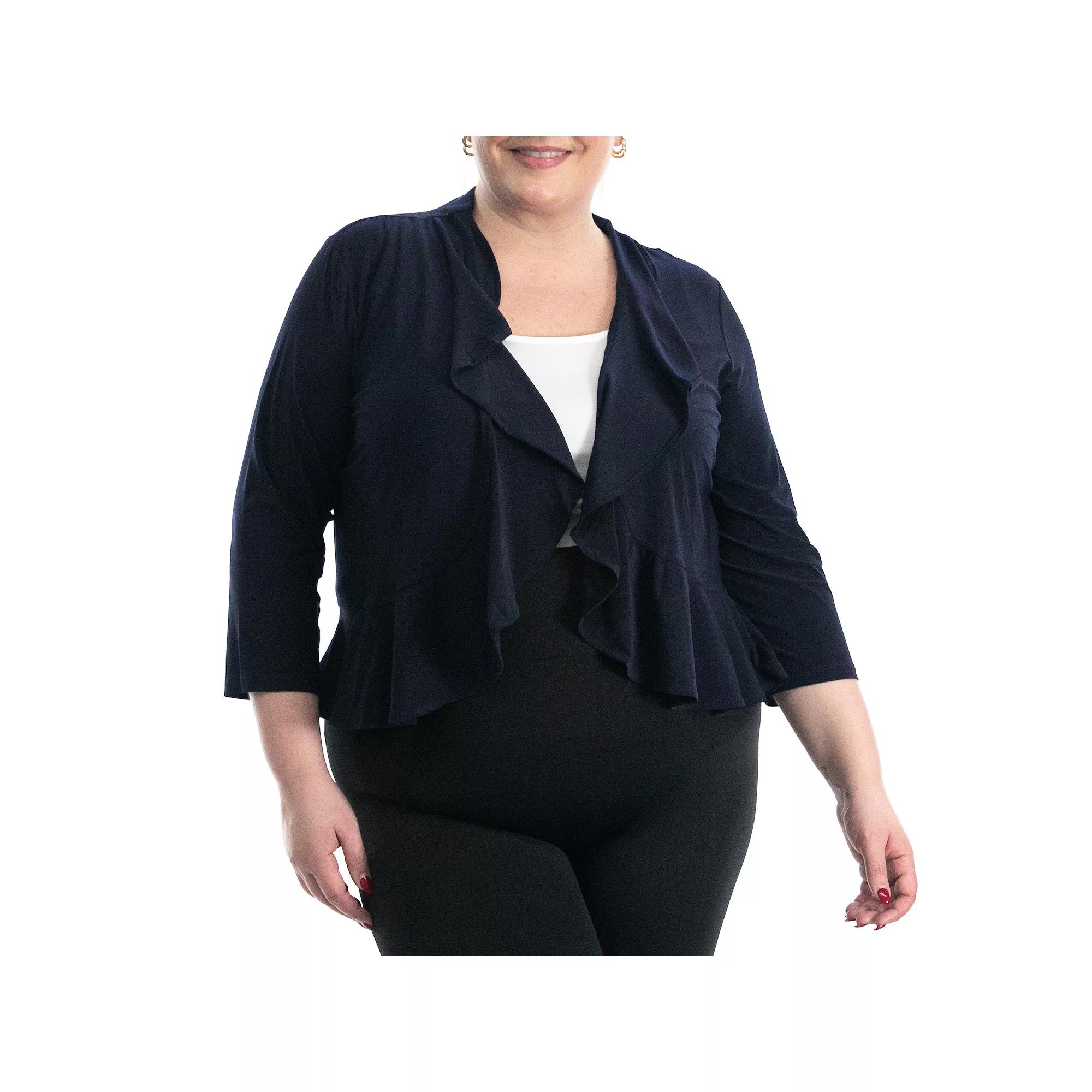 Layer your look with this womens bolero from Nina Leonard. Finding the perfect fit and size for womens clothing requires basic measurements of your chest, waist, hips and inseam. Use this guide to learn more about sizing and everything Kohls has to offer in womens fashion. Layer your look with this womens bolero from Nina Leonard. Finding the perfect fit and size for womens clothing requires basic measurements of your chest, waist, hips and inseam. Use this guide to learn more about sizing and everything Kohls has to offer in womens fashion. FEATURES Cool and soft fabric No closure - open front 3/4-length sleeves Unlined LightweightFIT & SIZING True to size 17 3/4-in. length from shoulder to hemFABRIC & CARE Polyester, spandex Machine wash and tumble dry low Imported Size: 3X. Color: Navy. Gender: female. Age Group: adult. Material: jersey.
