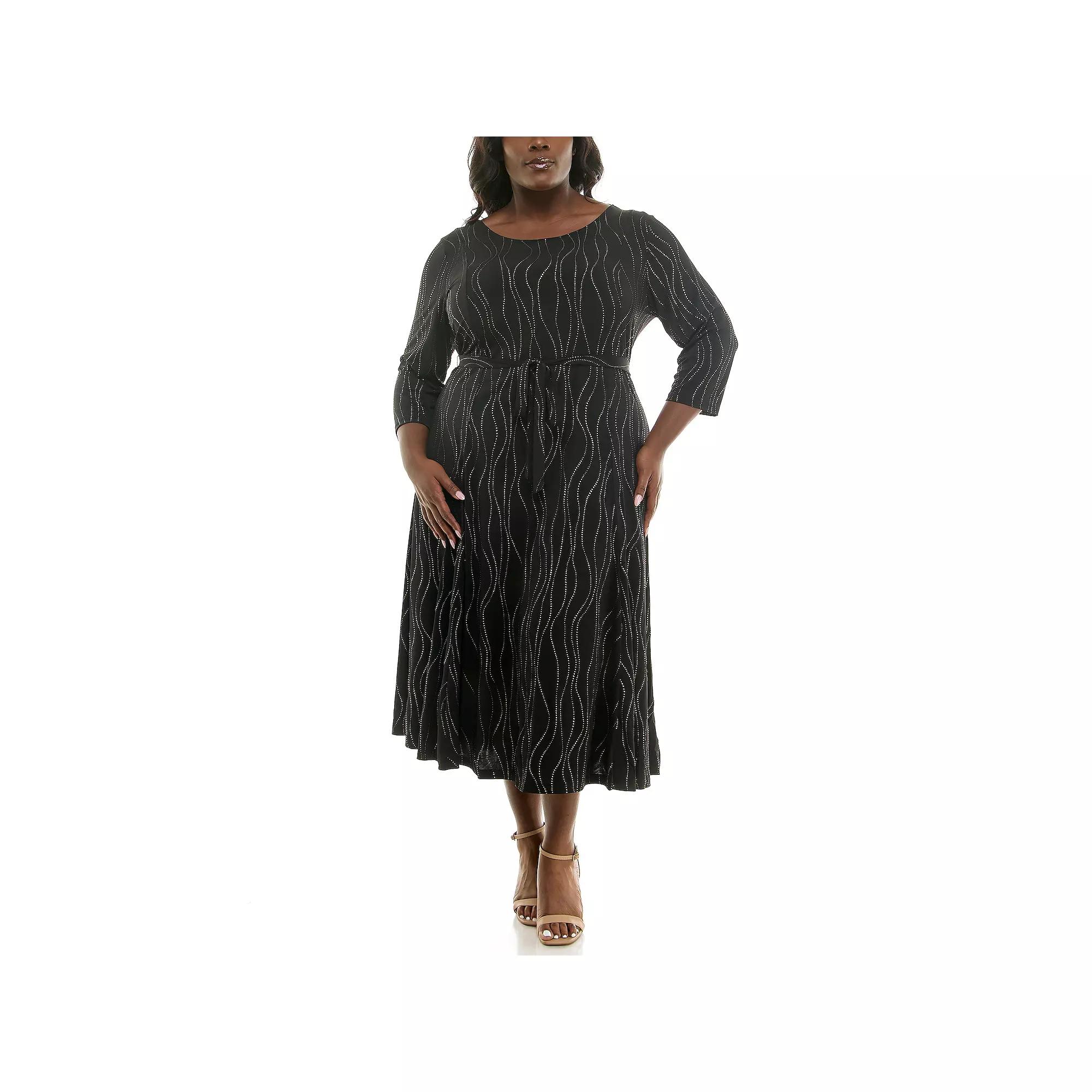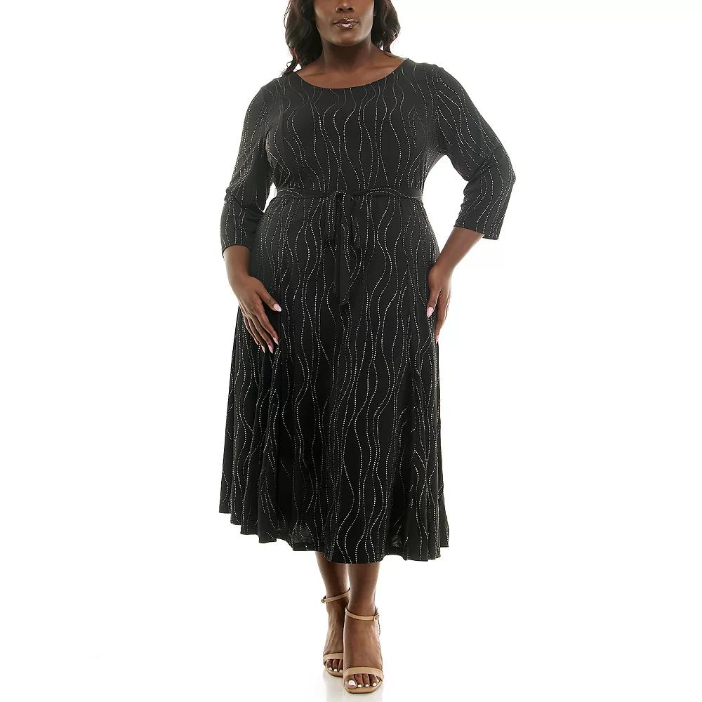 Refresh your wardrobe with this women's Nina Leonard midi sylvia dress with sash belt. Click on this WOMEN'S GUIDE to find the perfect fit and more!Refresh your wardrobe with this women's Nina Leonard midi sylvia dress with sash belt. Click on this WOMEN'S GUIDE to find the perfect fit and more!FEATURES A-line silhouette Soft construction 3/4-length sleeves ScoopneckFIT & SIZING 46-in. length from shoulder to hem Midi length hits below the kneeFABRIC & CARE Polyester, spandex Machine wash Imported Size: 3X. Color: Black Gold. Gender: female. Age Group: adult.