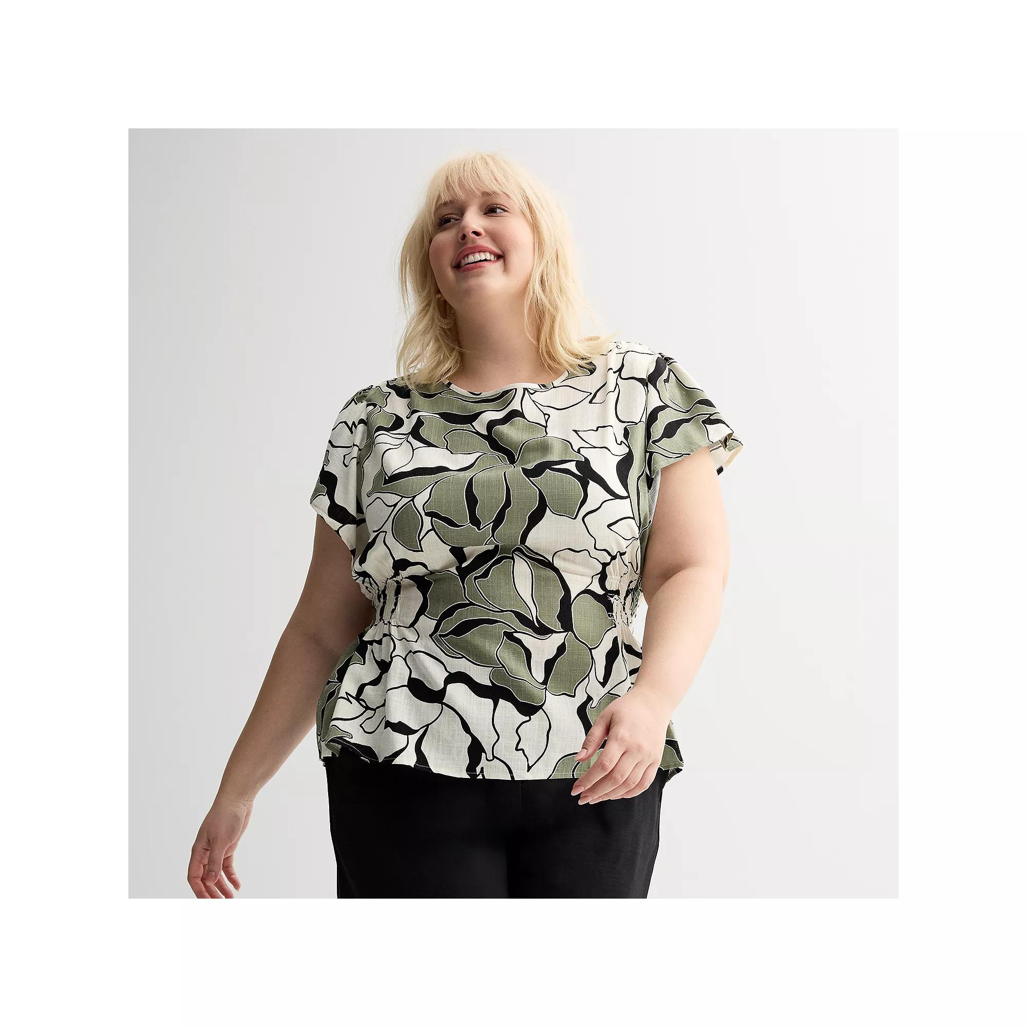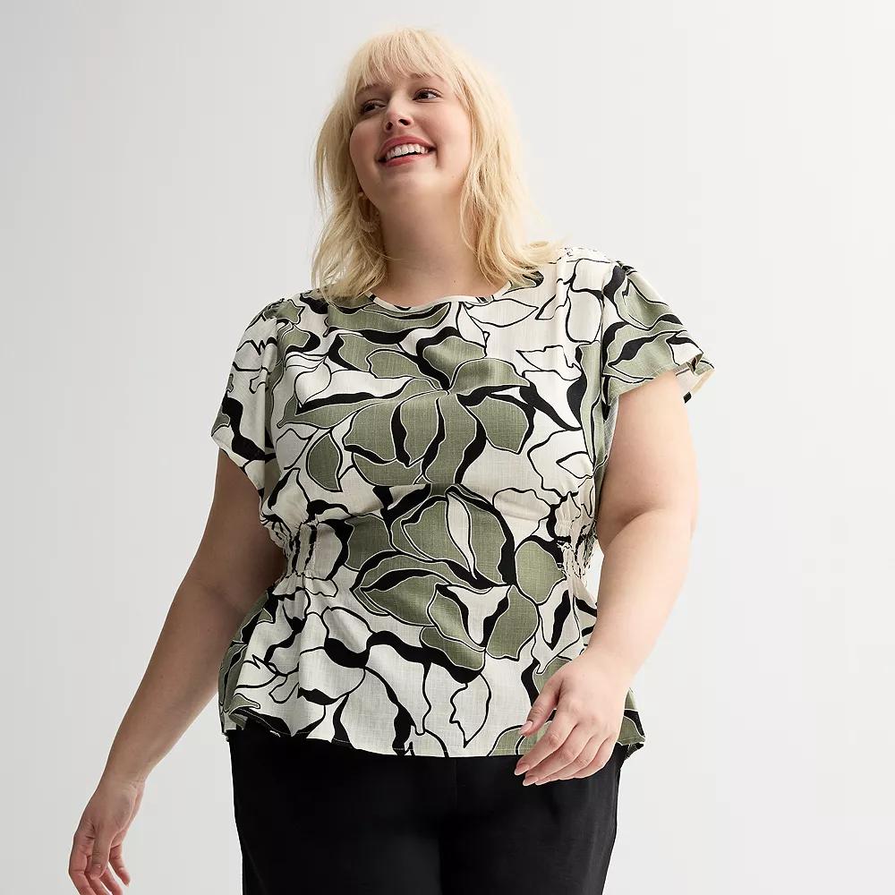 Showcase a new look with this plus size Nine West cinched flutter sleeve blouse. Click on this WOMEN'S GUIDE to find the perfect fit and more!Showcase a new look with this plus size Nine West cinched flutter sleeve blouse. Click on this WOMEN'S GUIDE to find the perfect fit and more!FEATURES Crewneck Batwing sleeves Cap sleeves Barrel cuffs Clasp closure Straight hemFIT & SIZING Comfortable fit 25 3/4-in. length Smocked waistbandFABRIC & CARE Rayon, linen Machine wash Imported Size: 5X. Color: Green Crystal Bloom. Gender: female. Age Group: adult.
