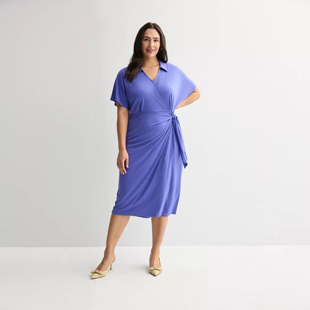 Style comes easy with this plus size Nine West dolman faux-wrap midi dress.Click on this WOMEN'S GUIDE to find the perfect fit and more!Style comes easy with this plus size Nine West dolman faux-wrap midi dress.Click on this WOMEN'S GUIDE to find the perfect fit and more!FEATURES Faux-wrap silhouette No closure - pullover styling Dolman sleeves Short sleeves Unlined V-neckFIT & SIZING 48-in. length from shoulder to hem Midi length hits below the kneeFABRIC & CARE Polyester, spandex Machine wash Imported Size: 3X. Color: Wesley Purple. Gender: female. Age Group: adult.