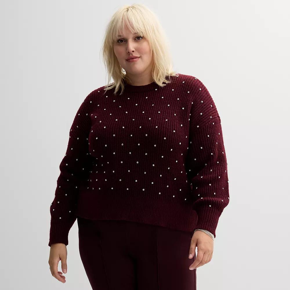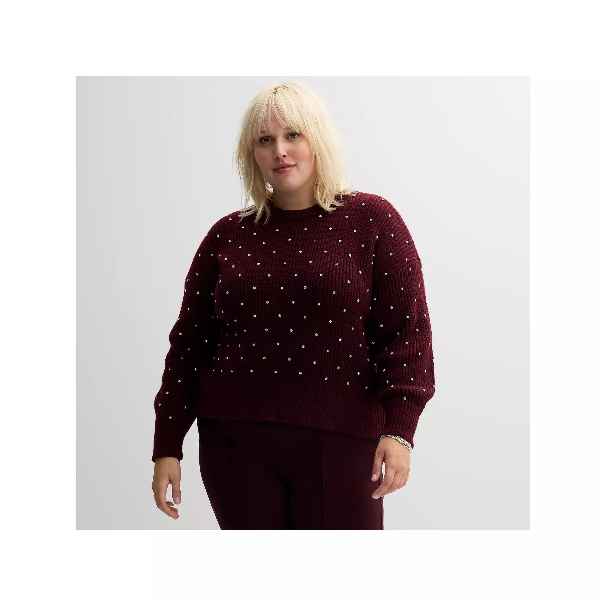 Show up in style with this cozy and cute Plus Size Nine West Rhinstone Detailed Crewneck Sweater.Click on this WOMENS GUIDE to find the perfect fit and more! Show up in style with this cozy and cute Plus Size Nine West Rhinstone Detailed Crewneck Sweater.Click on this WOMENS GUIDE to find the perfect fit and more! FEATURES Crewneck Long sleeves Ribbed cuffs Allover rhinestone detailing Straight hemFIT & SIZING 25 1/2-in. lengthFABRIC & CARE Polyester Machine wash Imported Size: 1X. Color: Maddie Plum. Gender: female. Age Group: adult.
