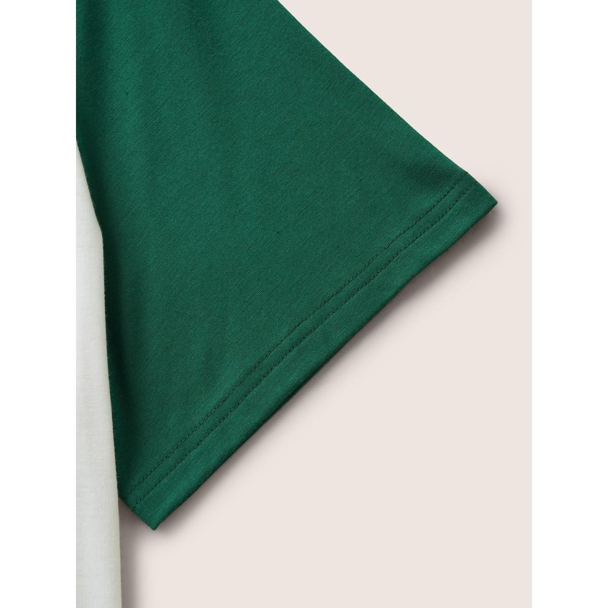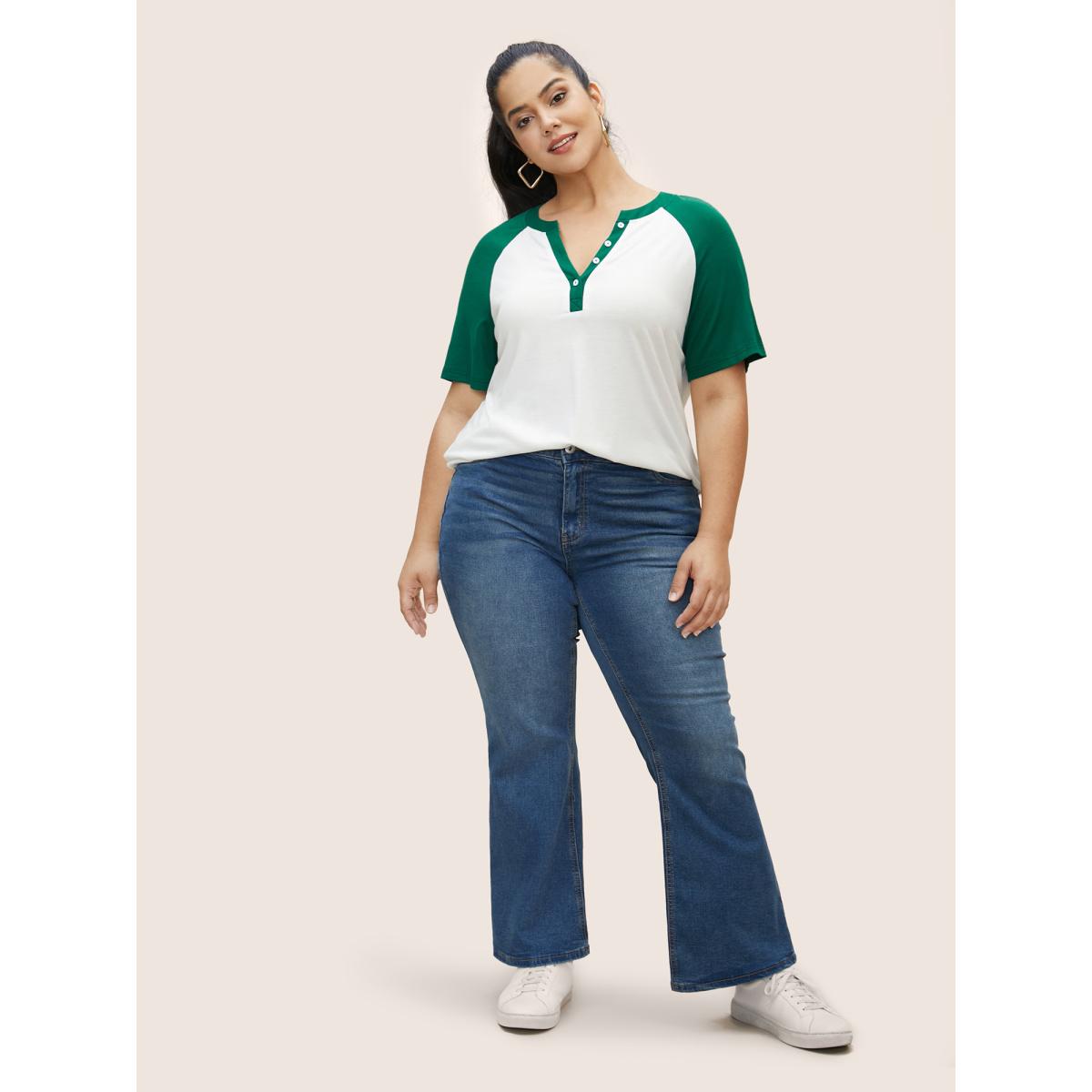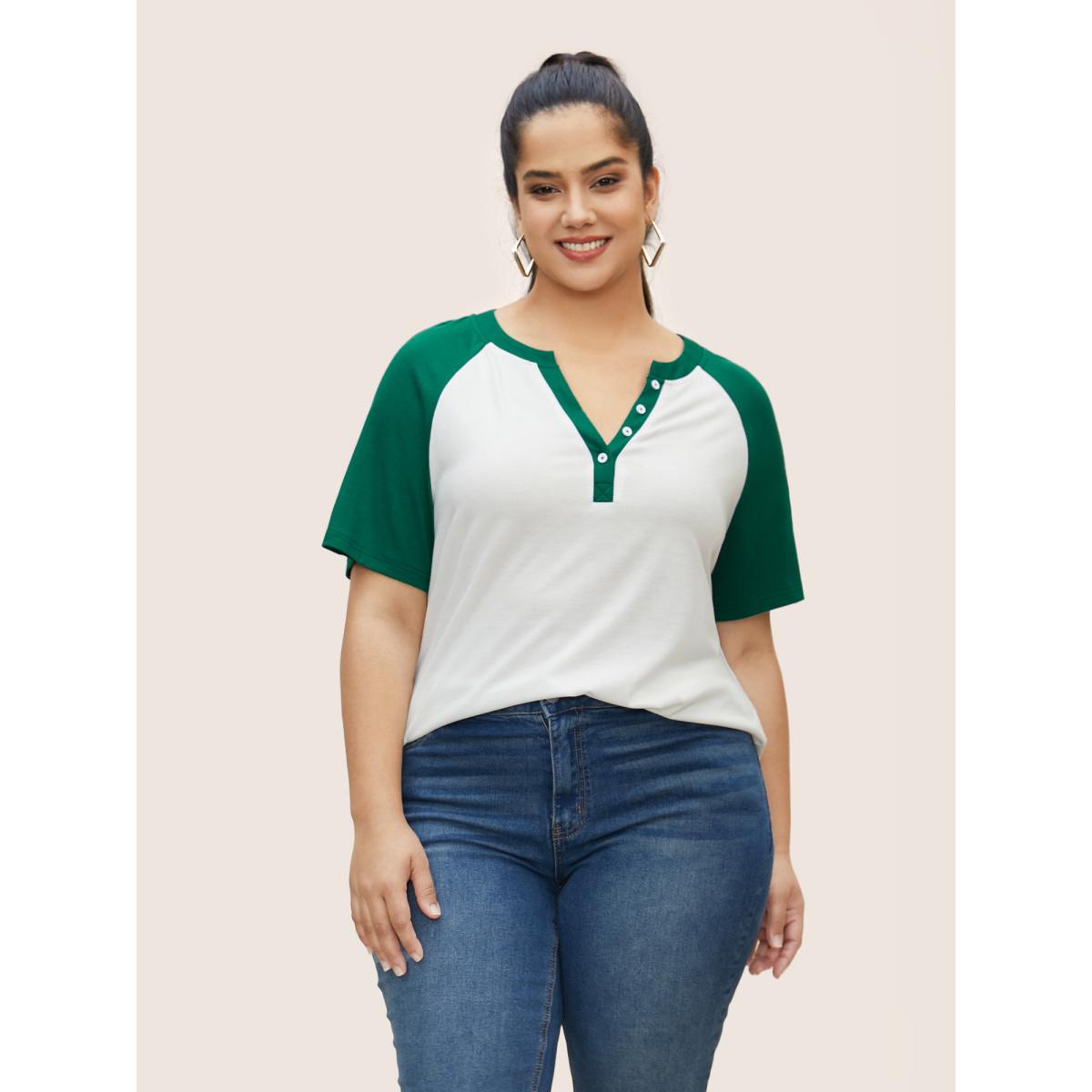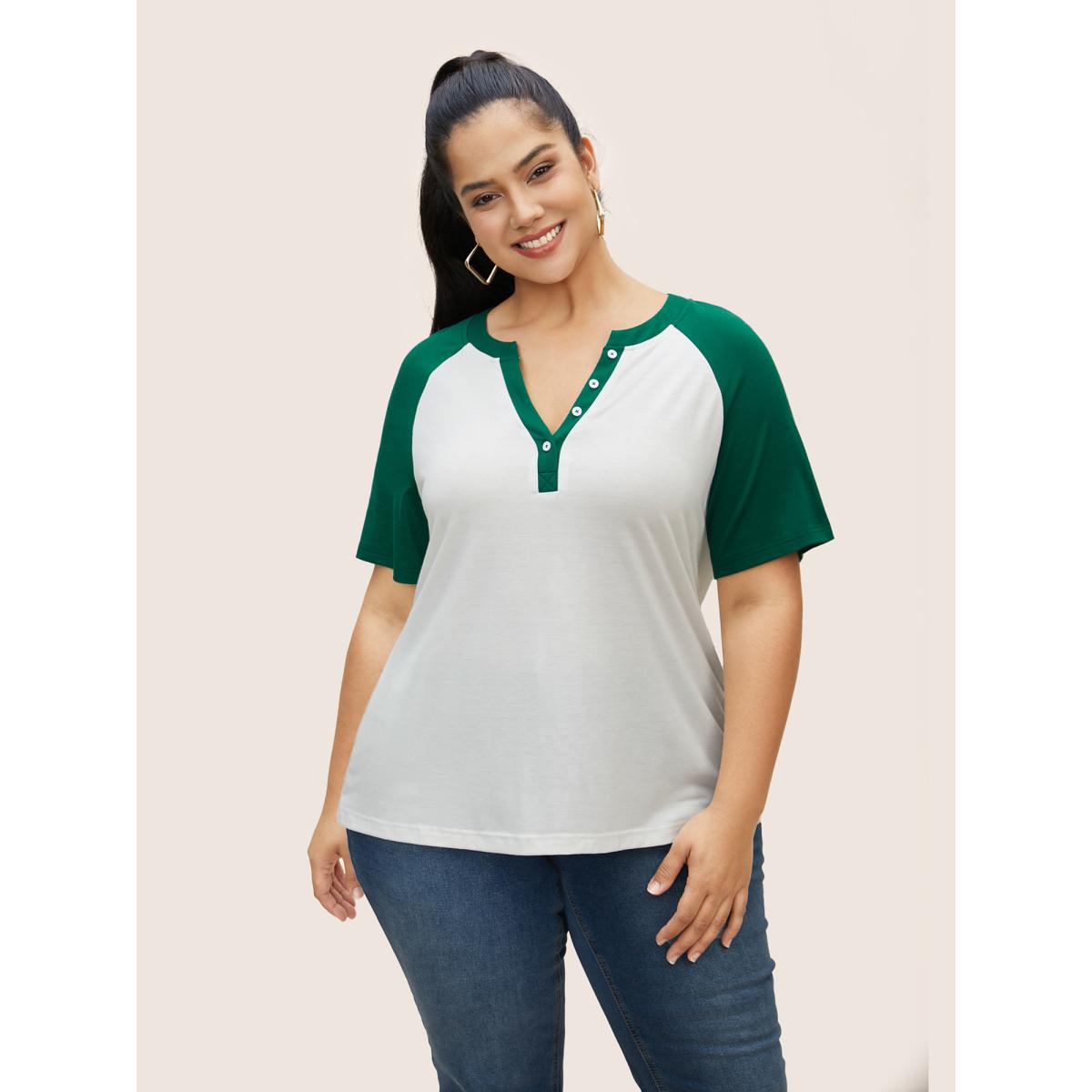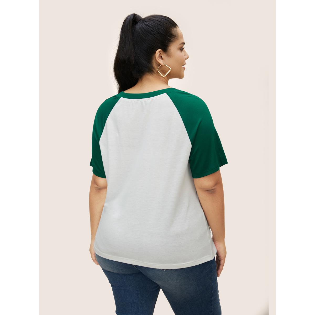 Plus Size Notched Collar Contrast Raglan Sleeve T-shirt Originalwhite Women Casual Contrast Notched collar Everyday T-shirts BloomChic 12/L