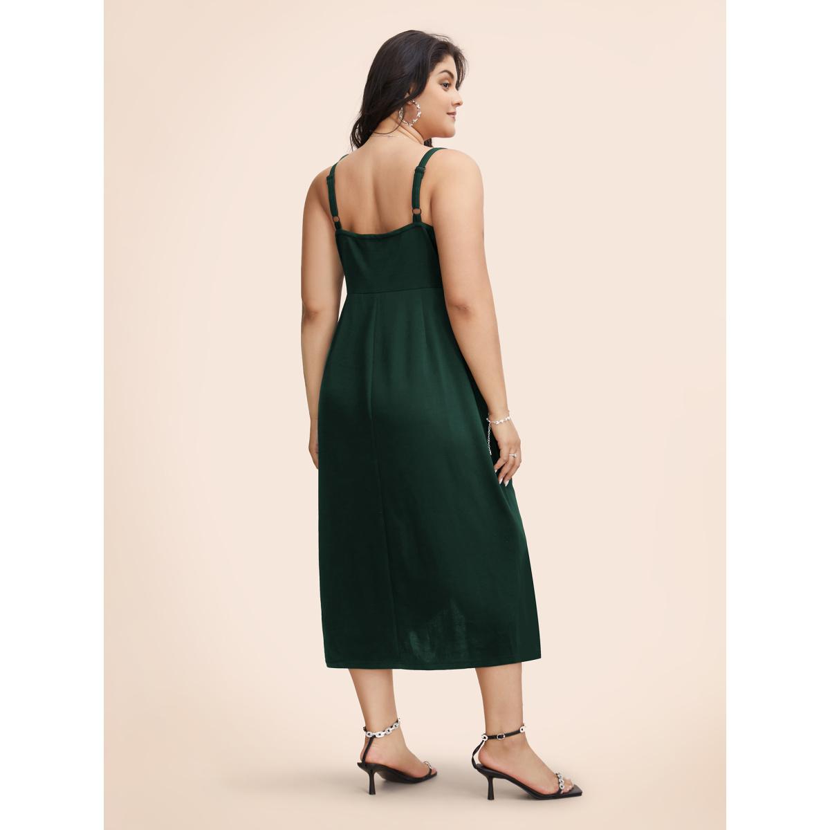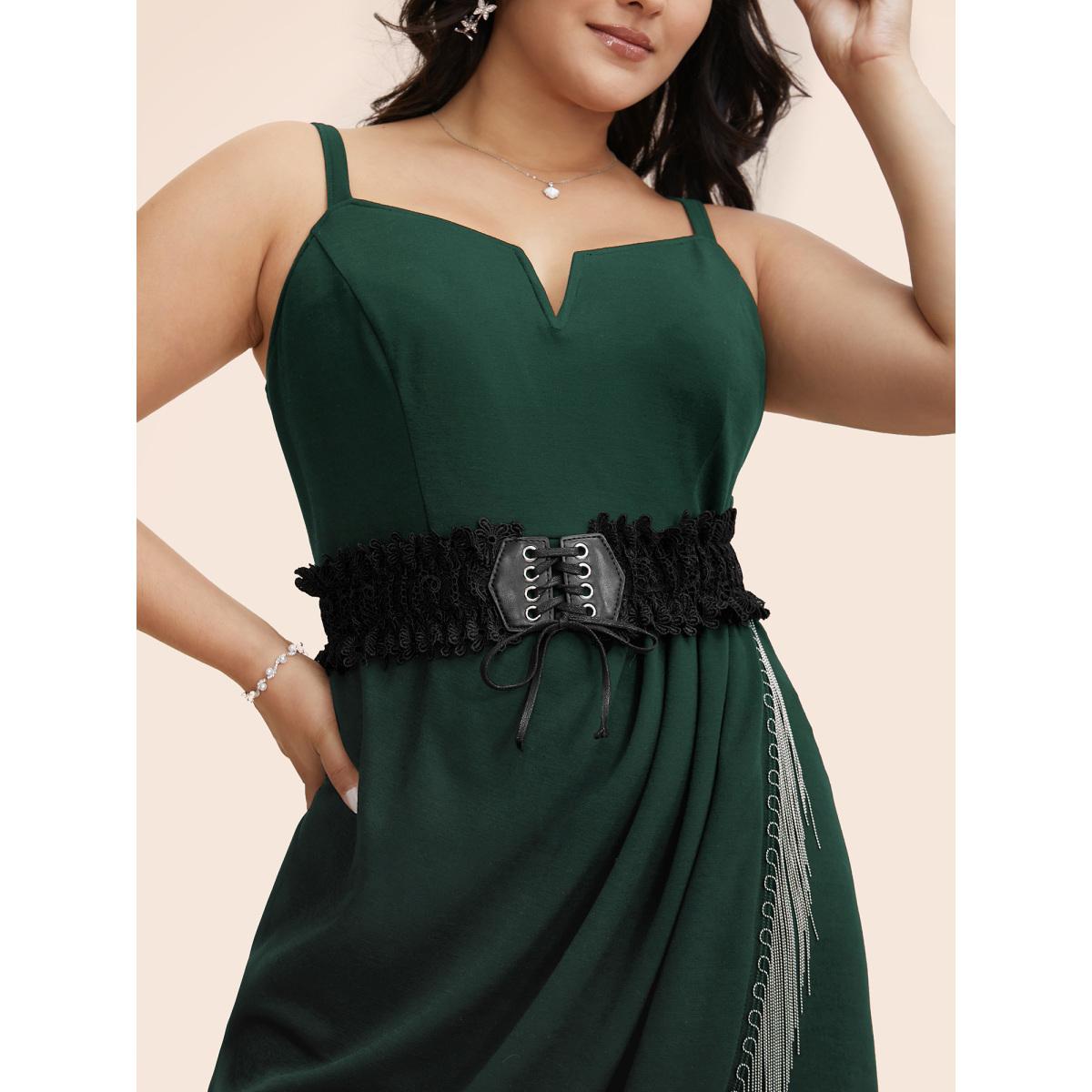 Plus Size Notched Collar Tassel Trim Cami Dress Cyan Women Cocktail Tassels Notched collar Sleeveless Curvy BloomChic 14-16/1X Product Image