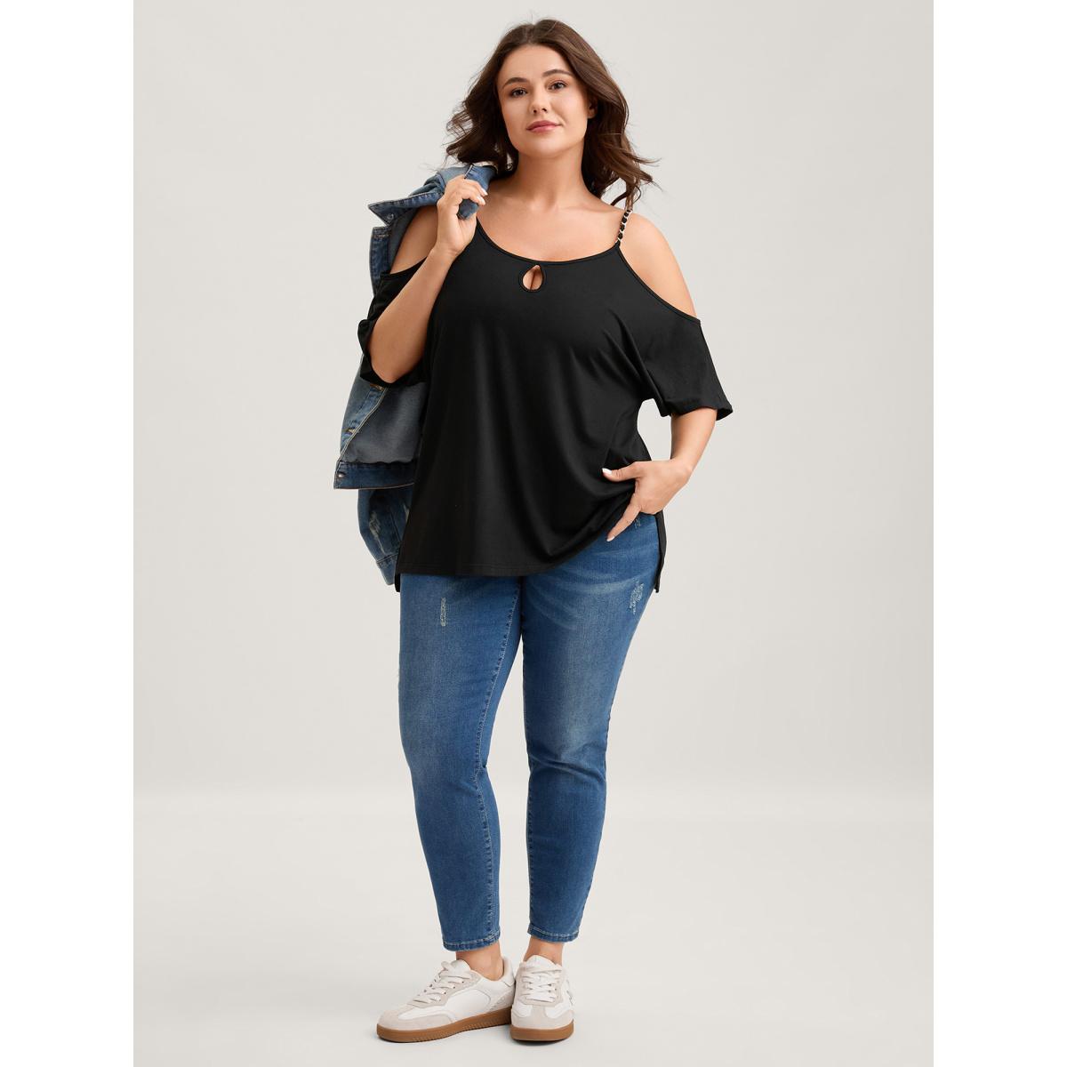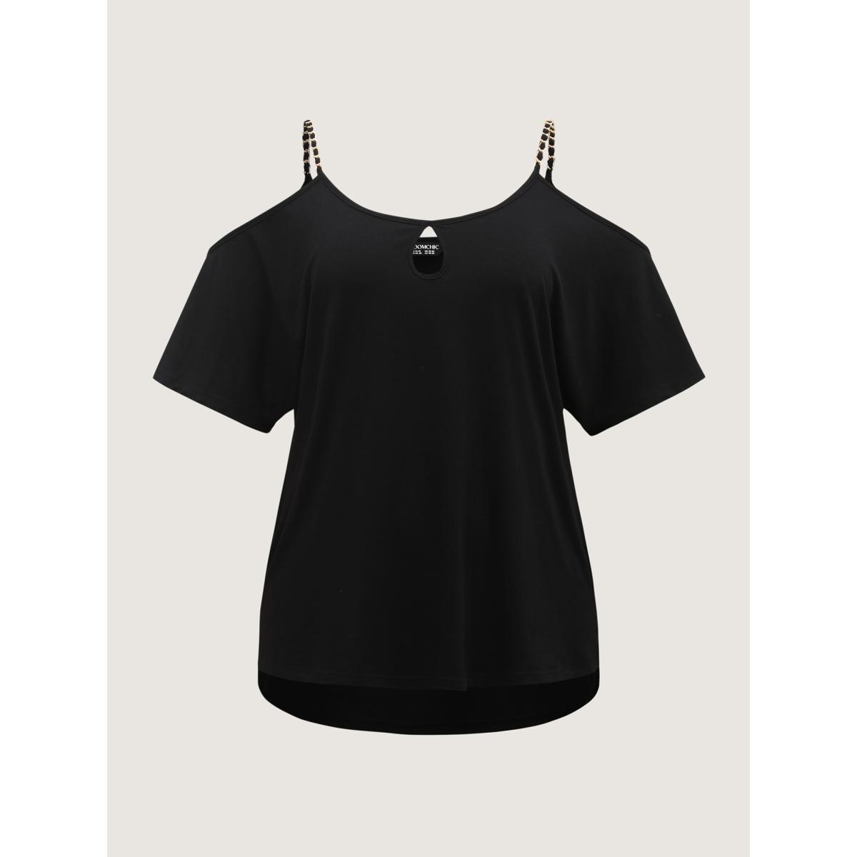Plus Size Off-Shoulder Loop Detail T-Shirt Black Women Timeless Eyelet Heart neckline Elegant T-shirts BloomChic 14-16/1X