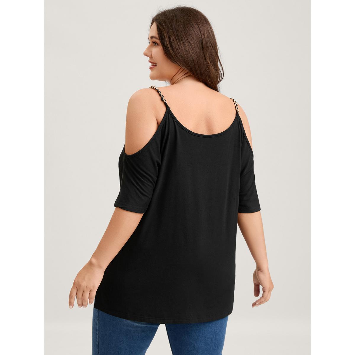 Plus Size Crew Neck Metal Chain Detail T-shirt Black Women Casual Non Round Neck Everyday T-shirts BloomChic 10/M