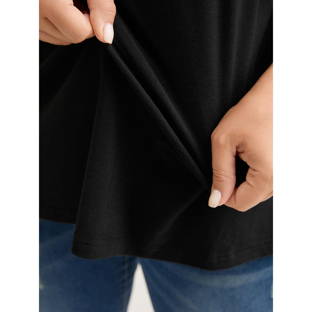 Plus Size Supersoft Stretchy High-Low Hem T-Shirt Black Women Leisure Non Round Neck Loose Casual T-shirts BloomChic 14-16/1X