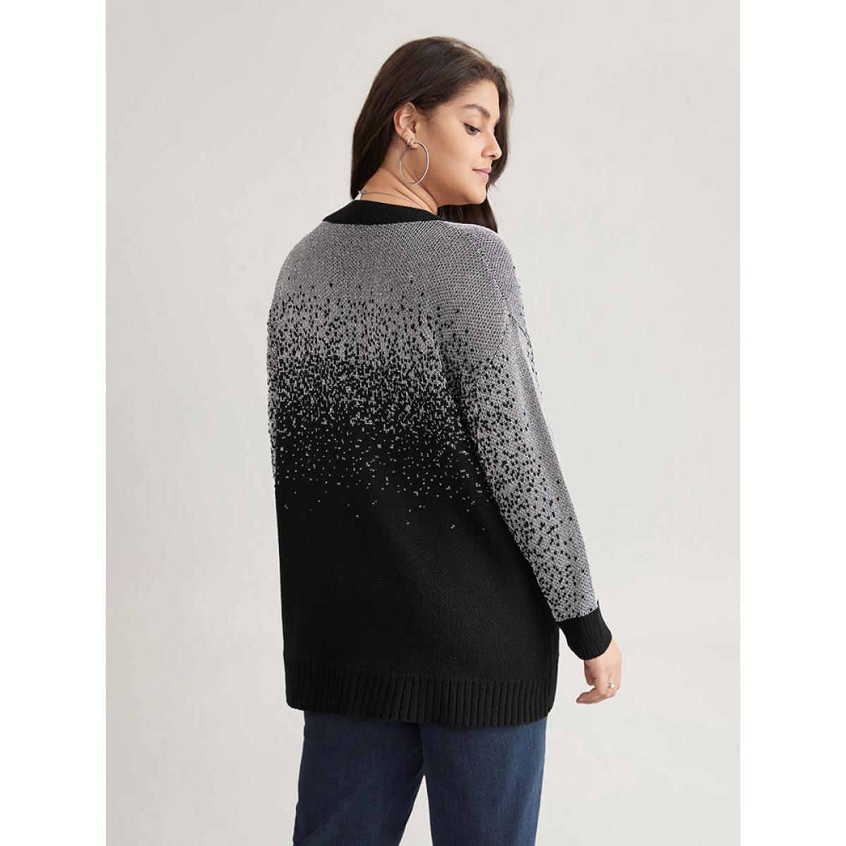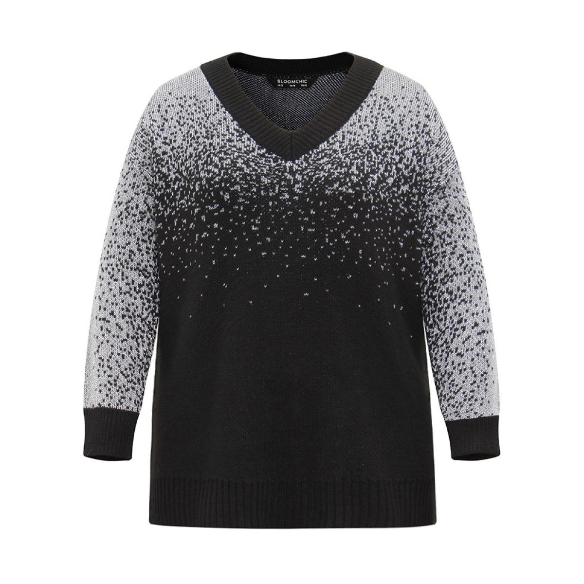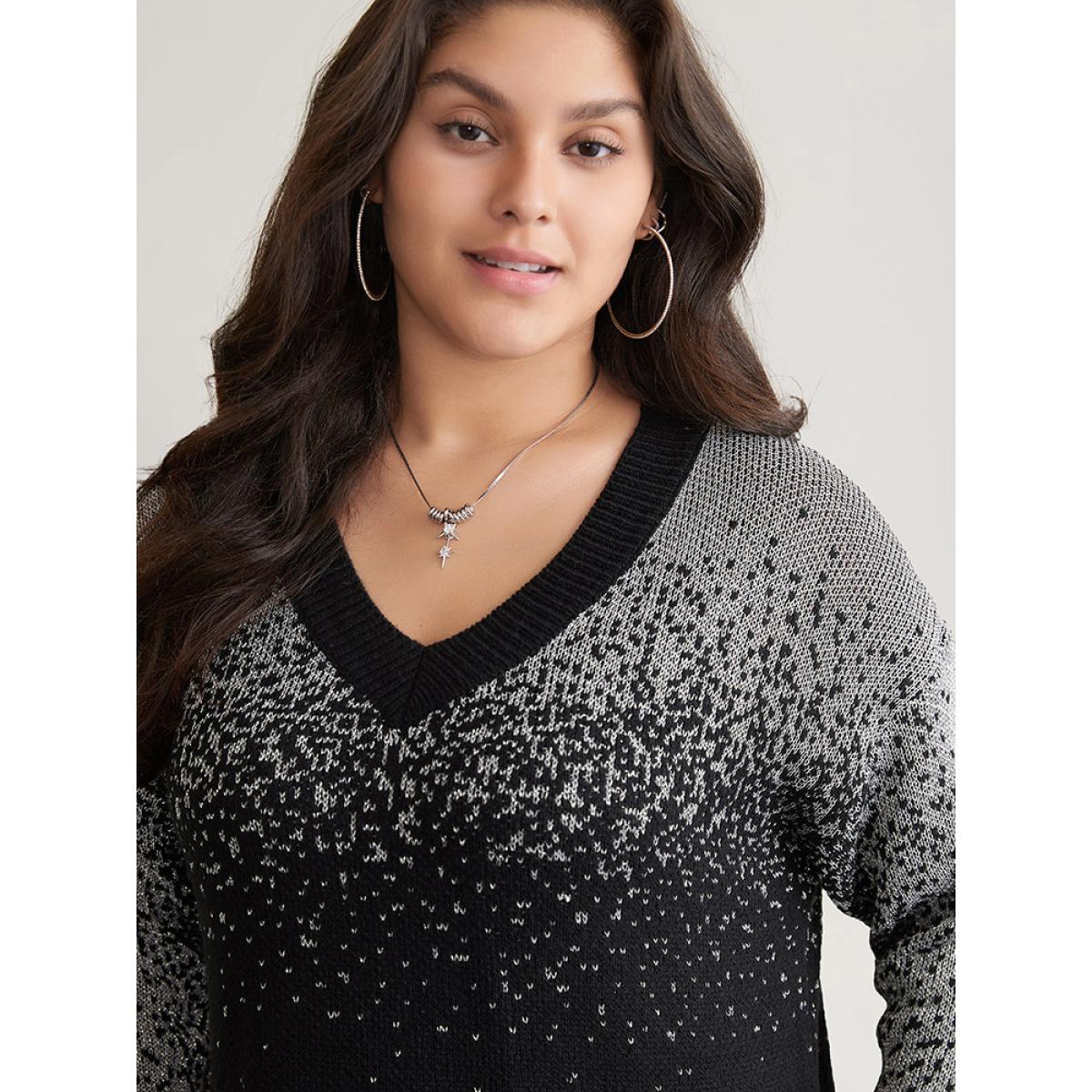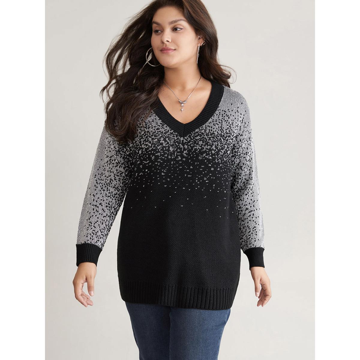 Plus Size Ombre Contrast Luxe V Neck Knit Pullover Black Women Casual Loose Long Sleeve V-neck Dailywear Pullovers BloomChic 26/4X
