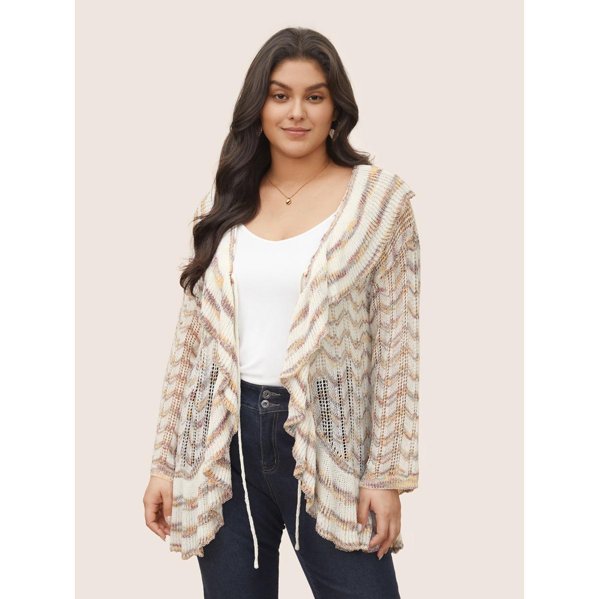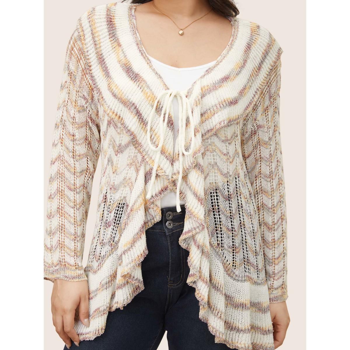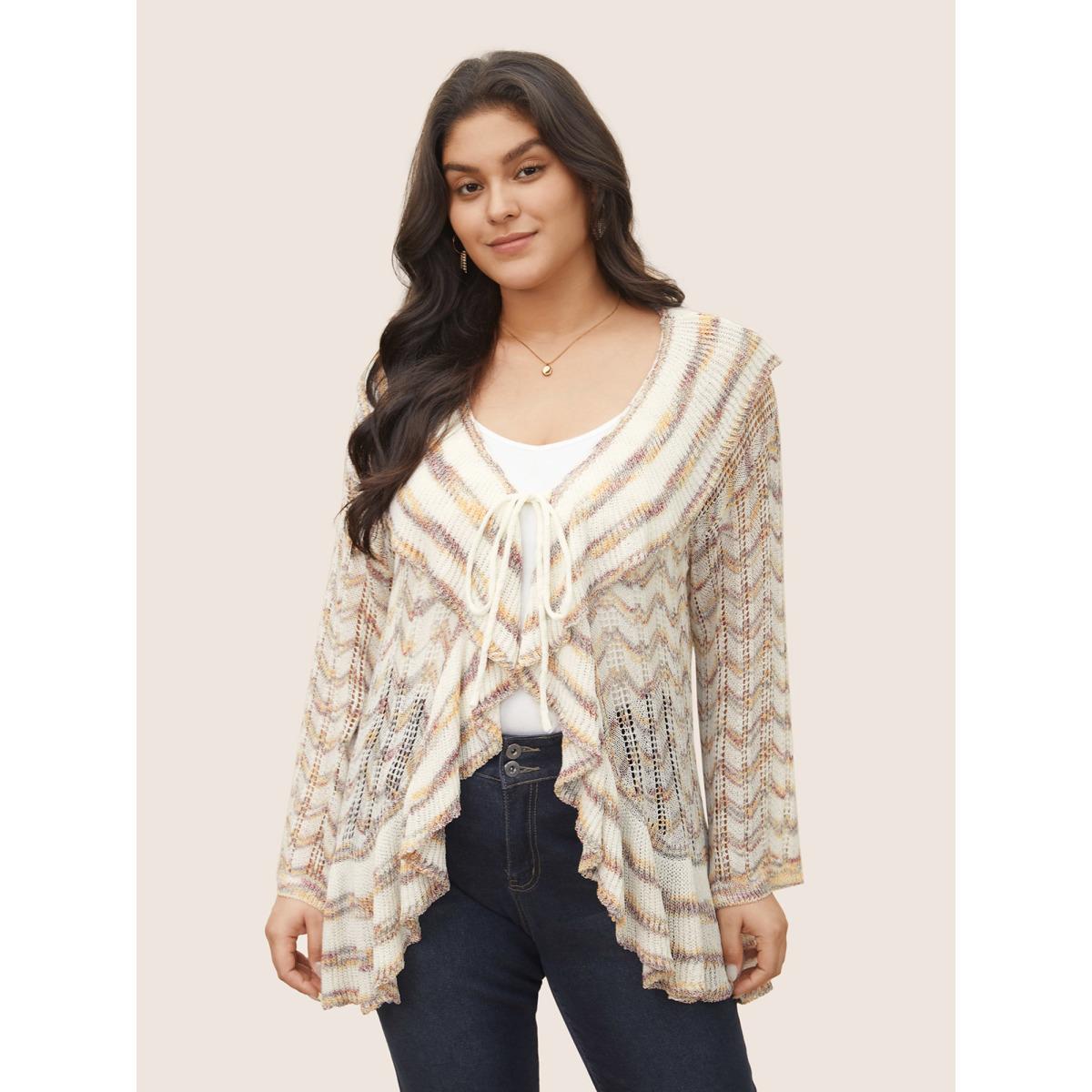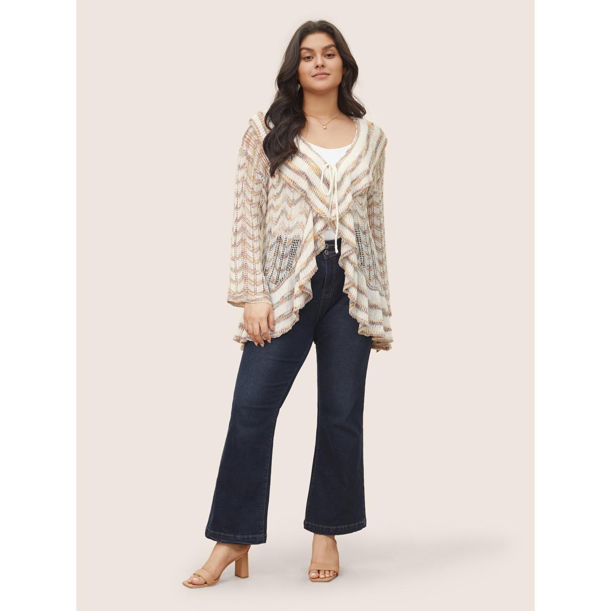 Plus Size Ombre Heather Ruffle Trim Ties Front Cardigan Ivory Women Everyday Elegant Cover Ups Bloomchic 14-16/1X