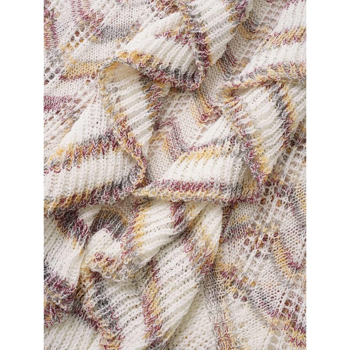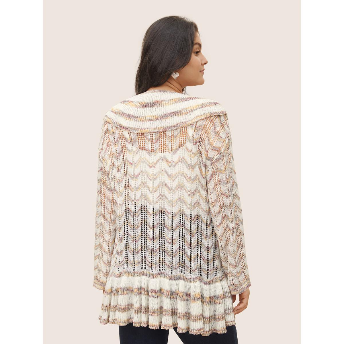 Plus Size Ombre Heather Ruffle Trim Ties Front Cardigan Ivory Women Everyday Elegant Cover Ups Bloomchic 14-16/1X Product Image