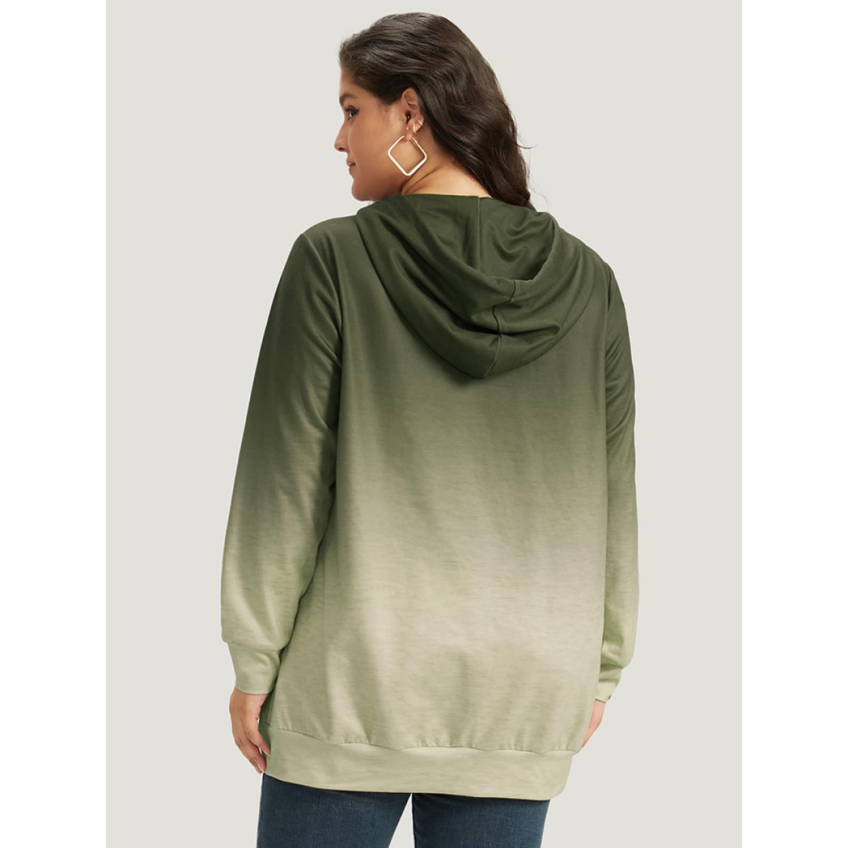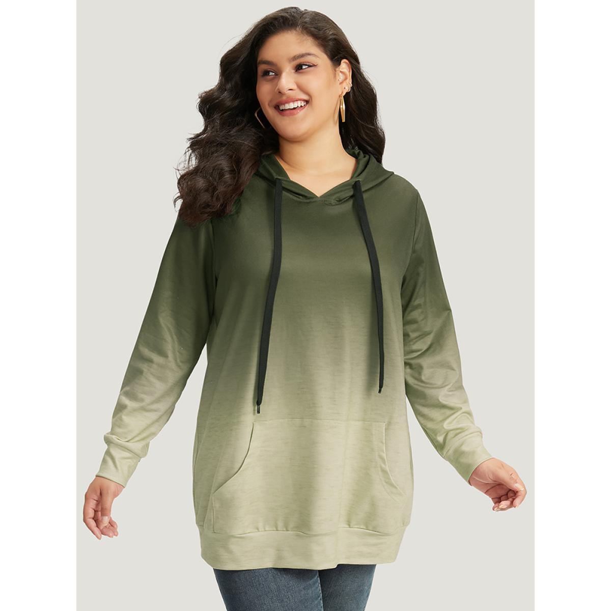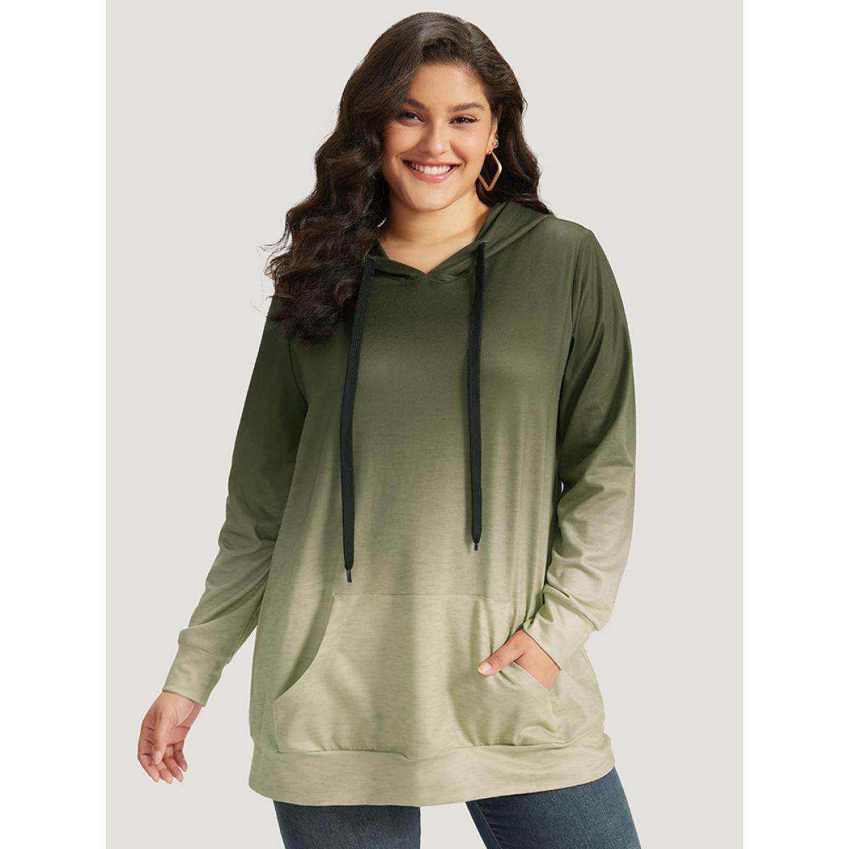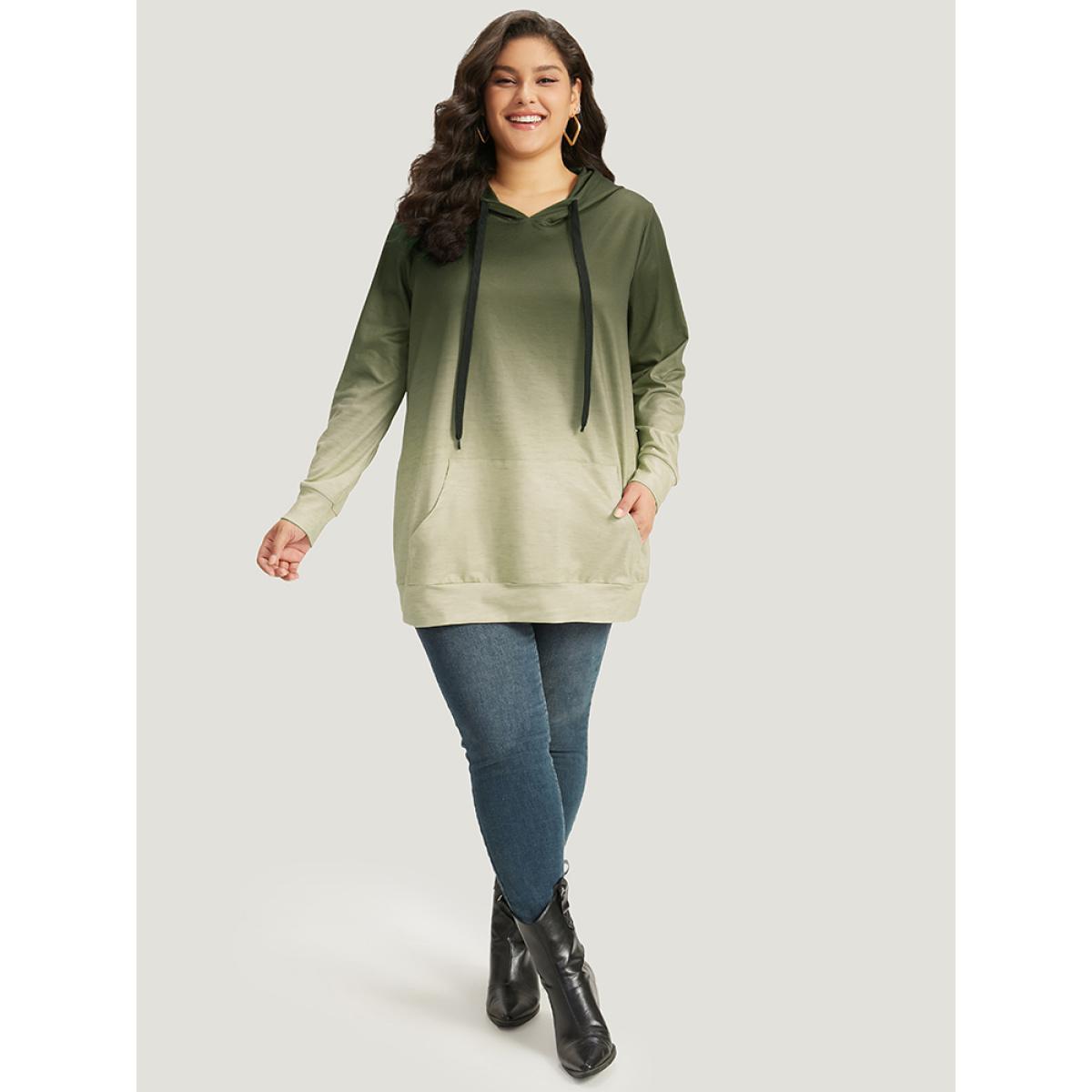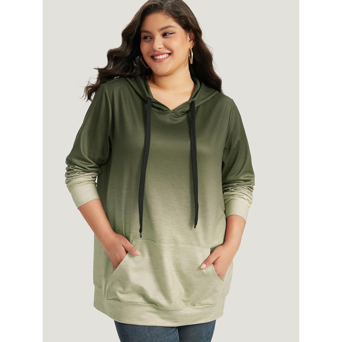 Plus Size Ombre Pocket Drawstring Hooded Sweatshirt Women Sage Leisure Elastic cuffs Hooded Casual Sweatshirts BloomChic 30/6X