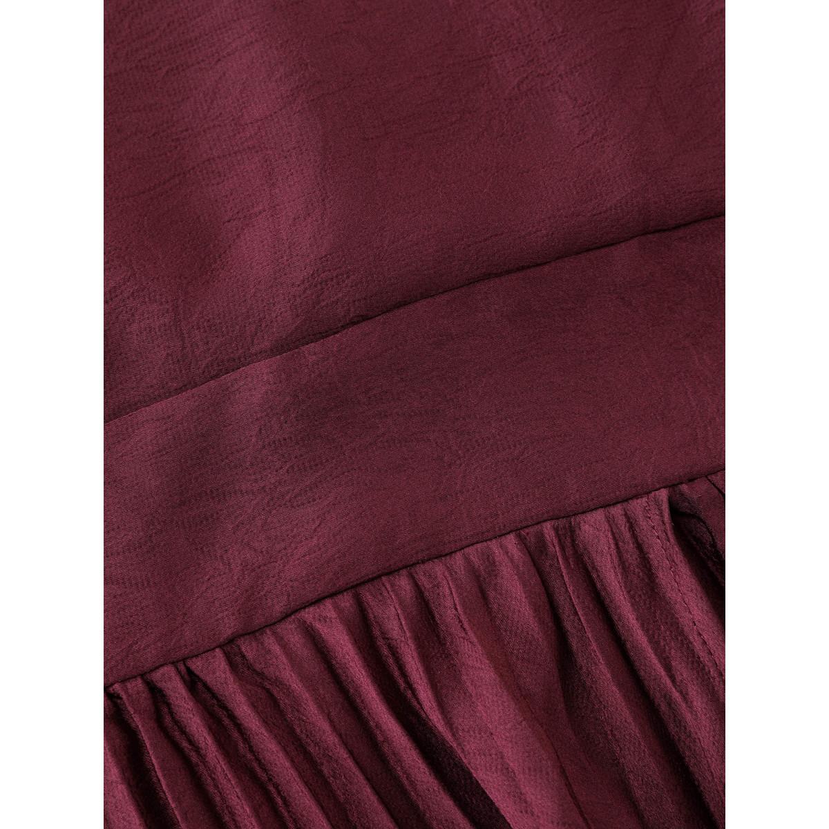 Plus Size Lace Detail Surplice Neckline Midi Dress Burgundy Women Elegant Woven ribbon&lace trim Overlap Collar Long Sleeve Curvy BloomChic 10/M