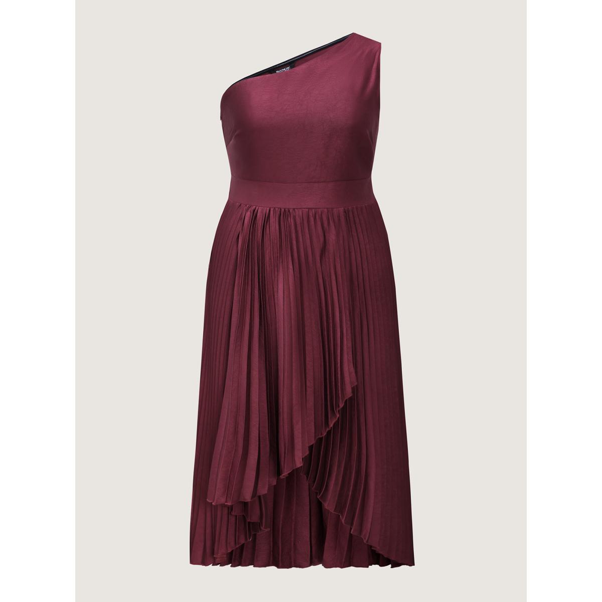 Plus Size One-Shoulder Pleated Asymmetrical Hem Midi Dress Burgundy Women Formal Asymmetrical Neck Sleeveless Curvy BloomChic 26/4X