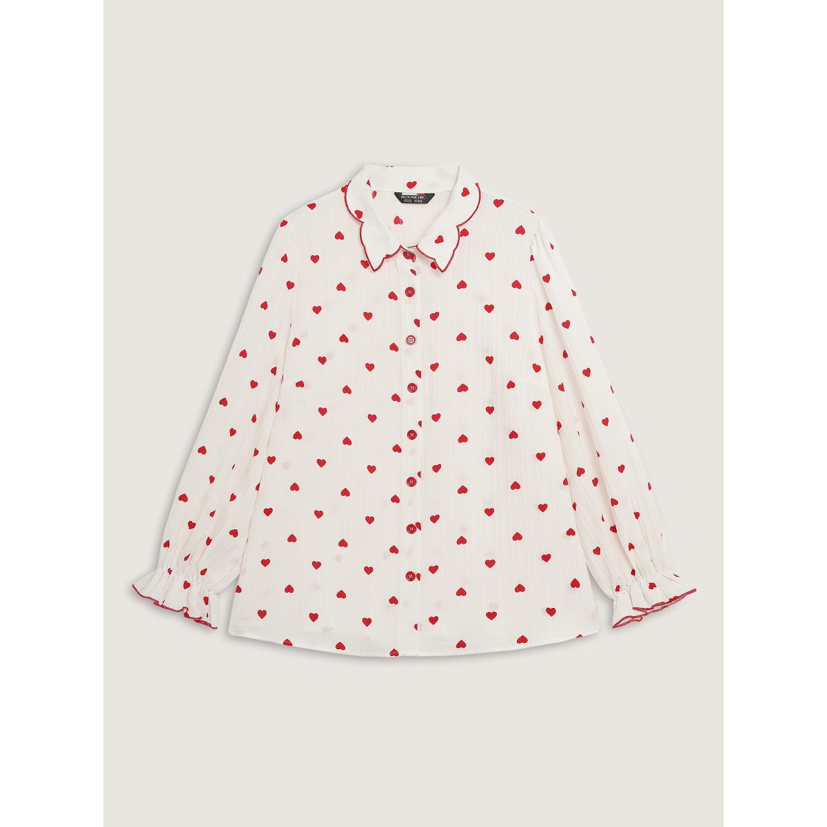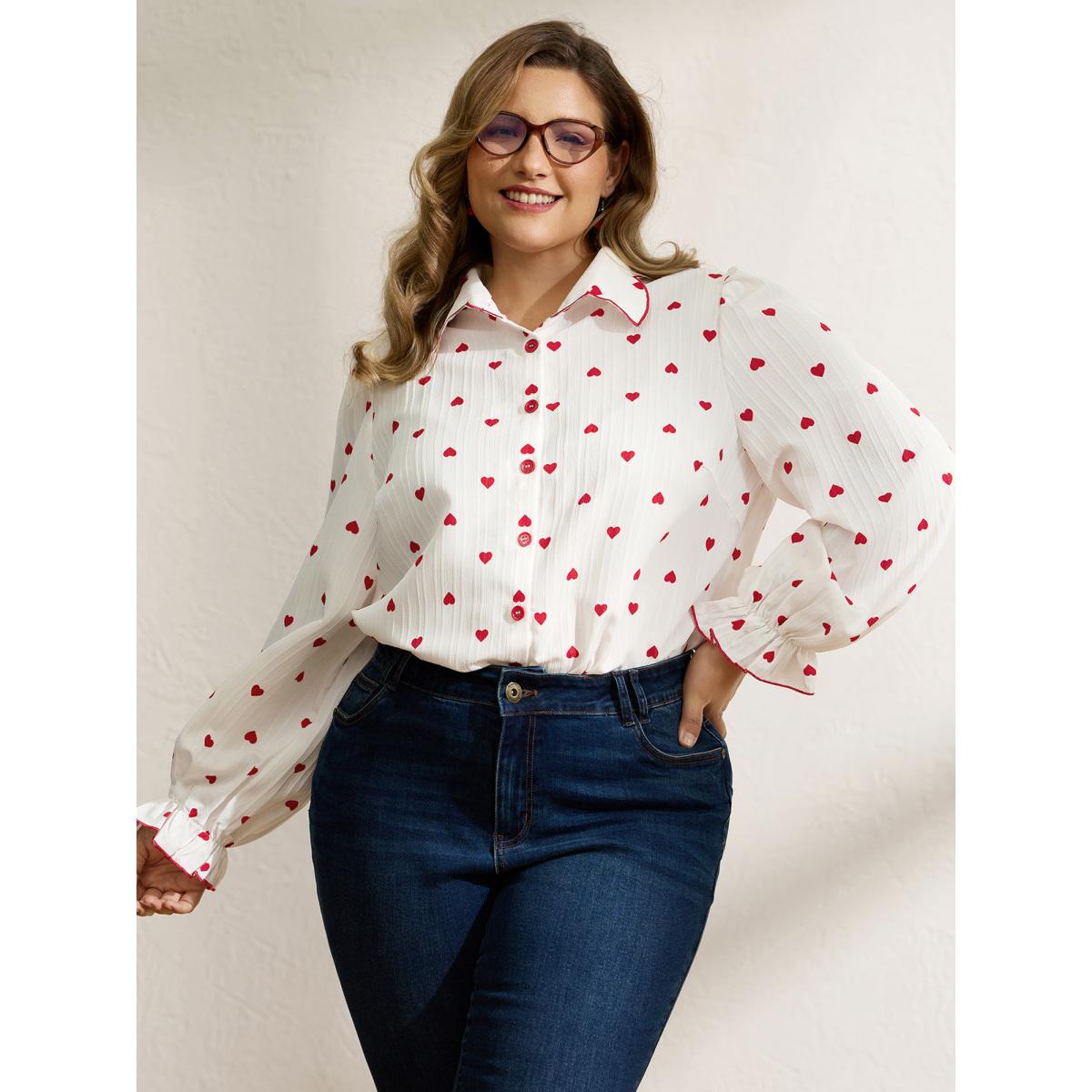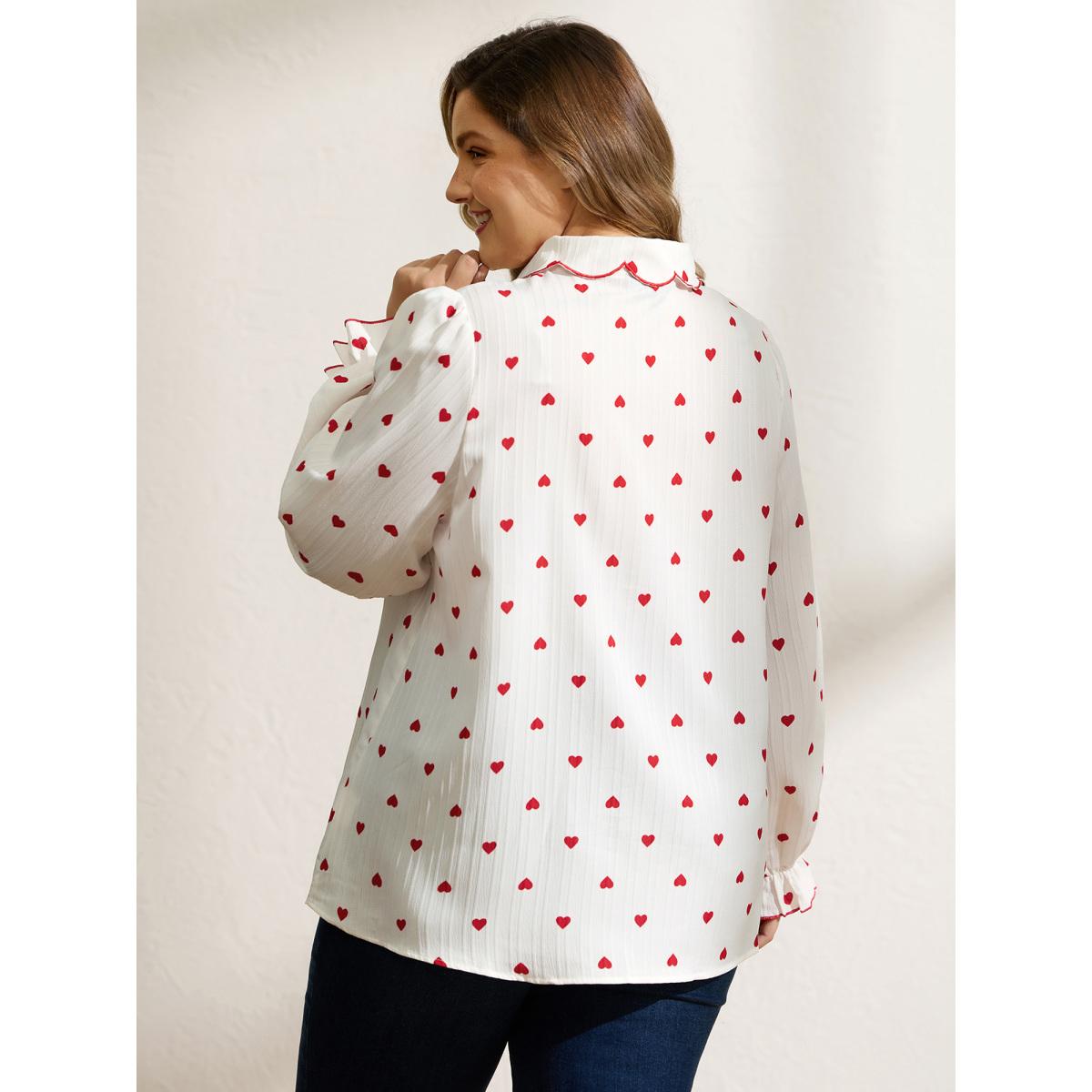 Plus Size Originalwhite Textured Heart Embroidered Collar Blouse Women Retro Long Sleeve Shirt collar Elegant Blouses BloomChic 12/L