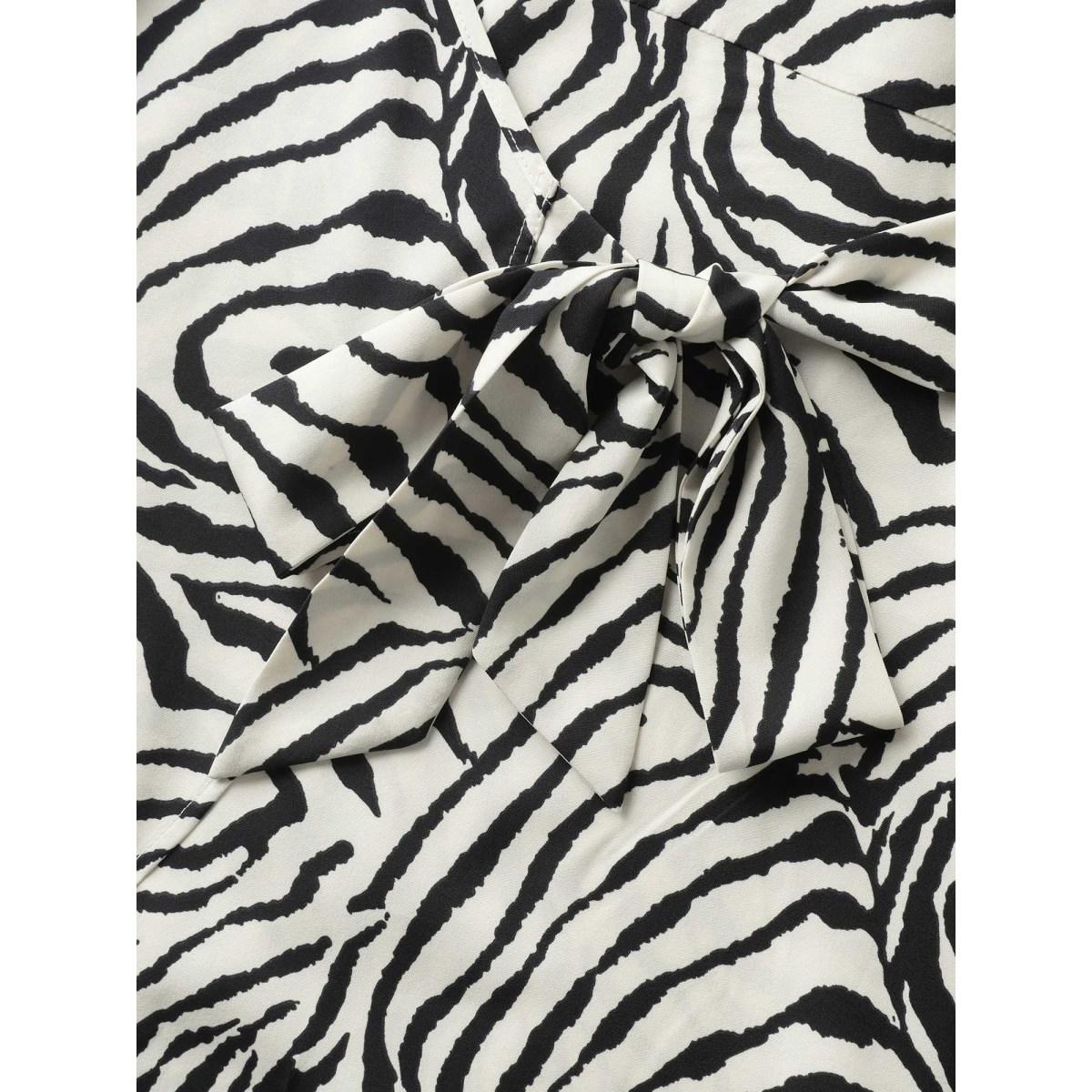 Plus Size Originalwhite Zebra Print Wrap Tie Flowy Blouse Women Short sleeve Overlap Collar Work Blouses BloomChic 14-16/1X