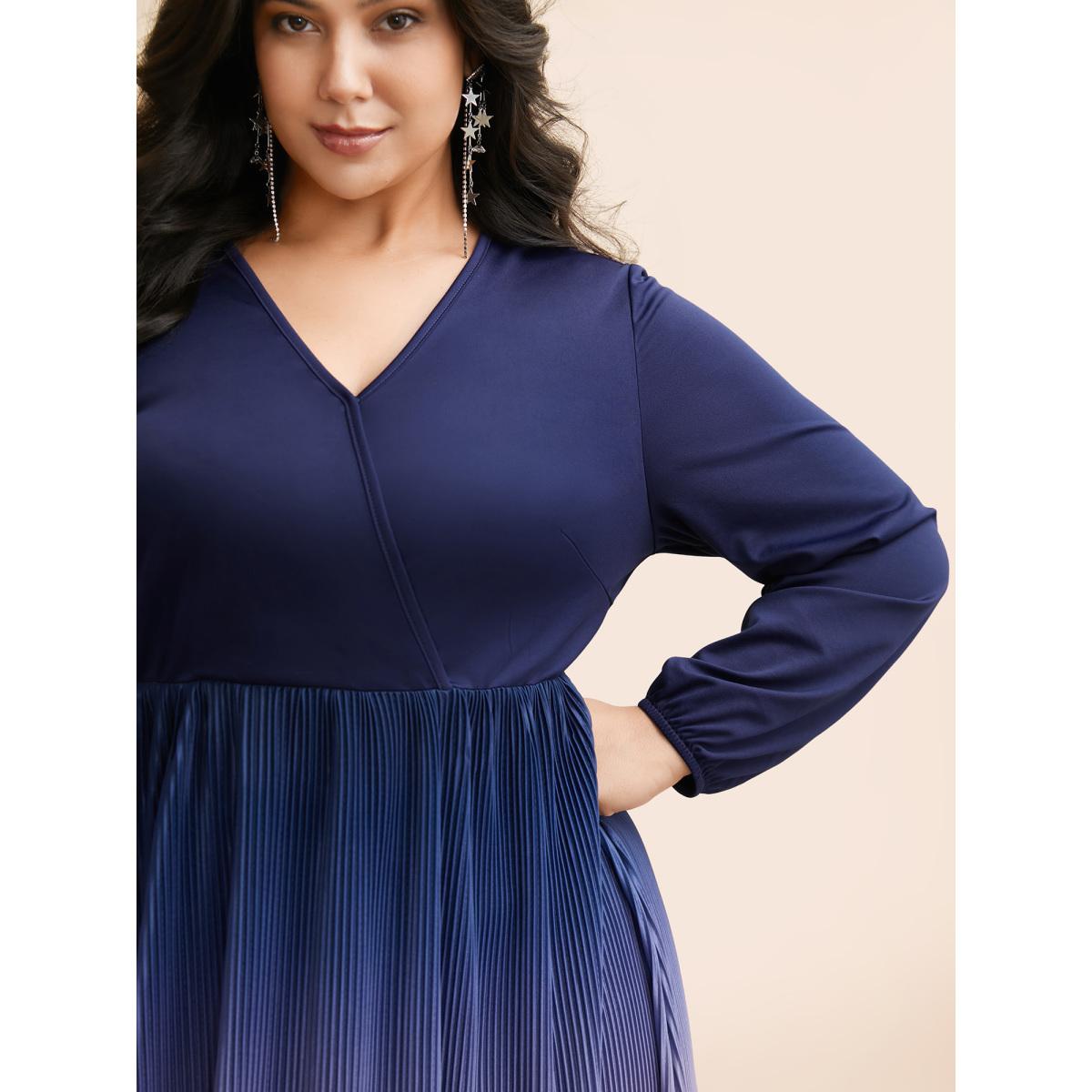 Plus Size Overlap Collar Ombre Patchwork Pleated Dress Navy Women Cocktail Texture Party Curvy Bloomchic 26/4X