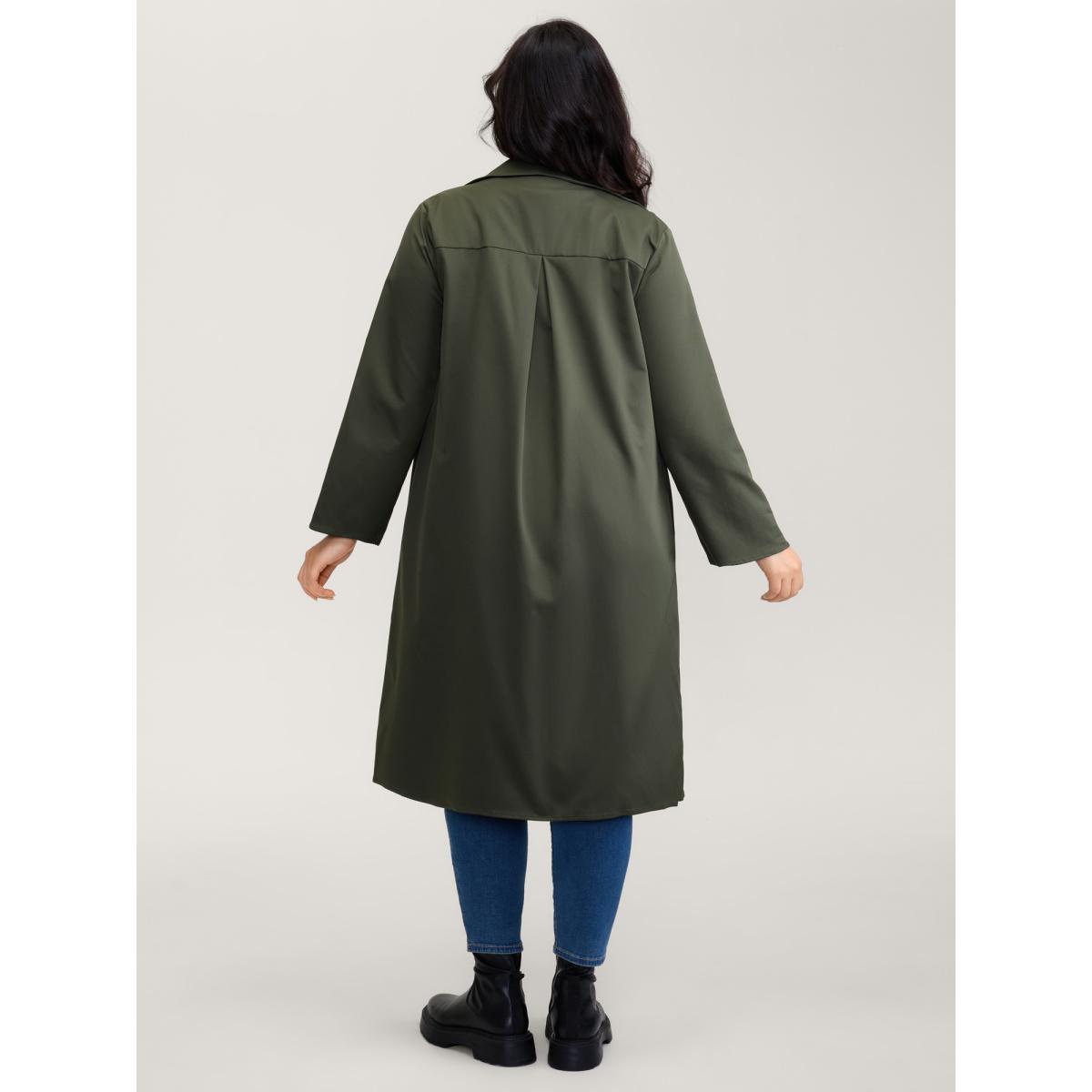 Plus Size Lapel Collar Metal Detail Zipper Pocket Coat Women ArmyGreen Casual Plain Ladies Dailywear Winter Coats BloomChic 10/M