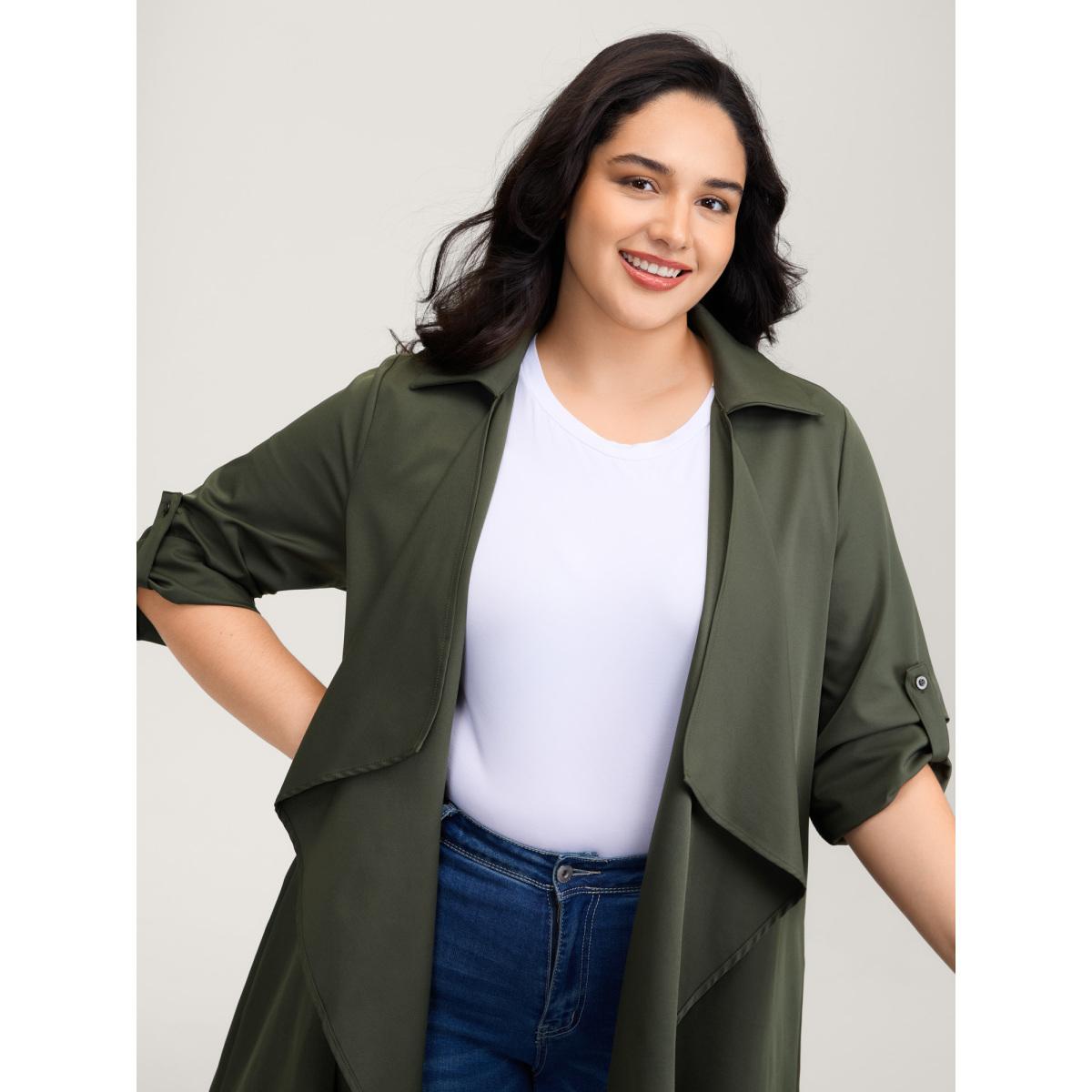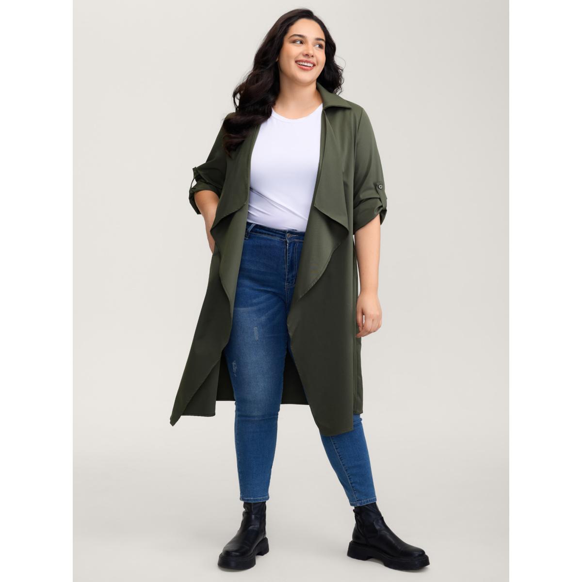 Plus Size Solid Pocket Roll Sleeve Waterfall Collar Coat Women ArmyGreen Casual Pocket Ladies Dailywear Winter Coats BloomChic 18-20/2X