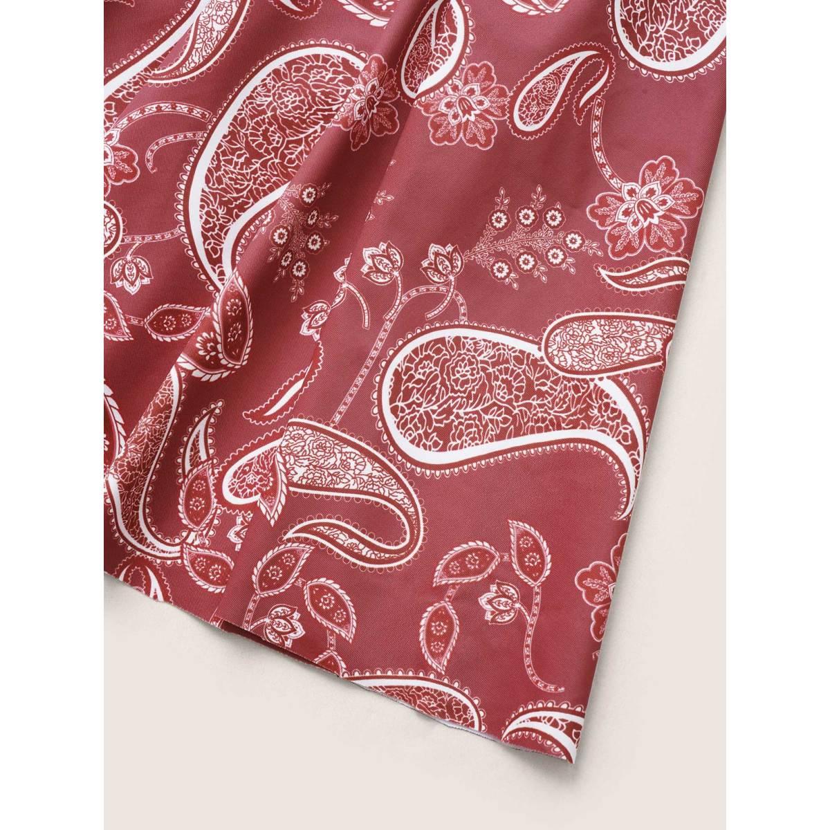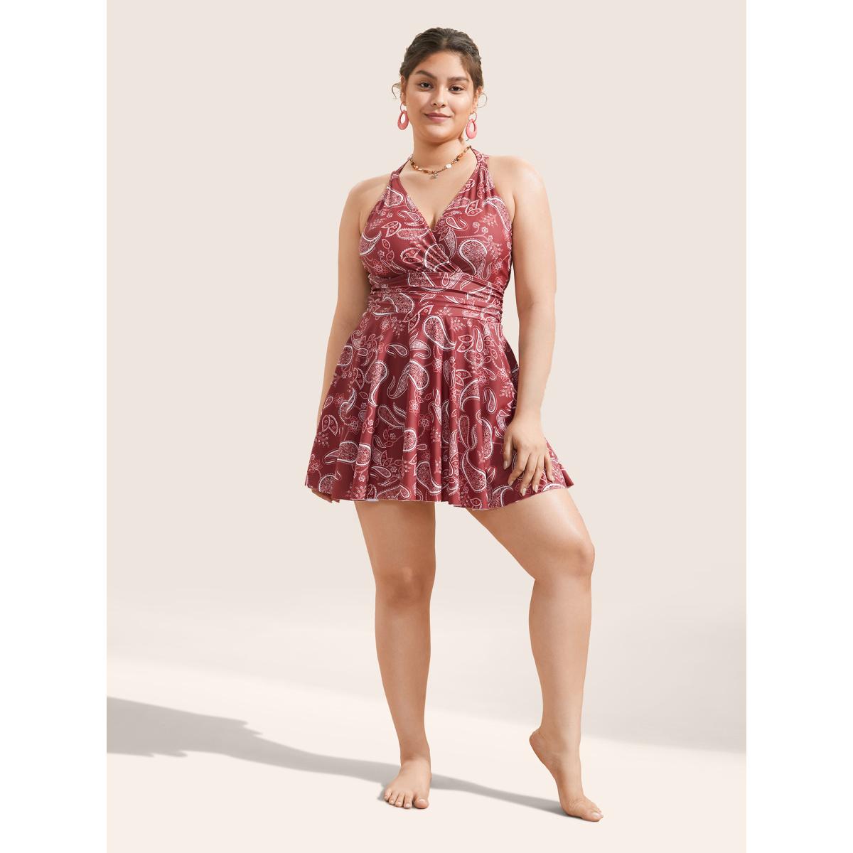 Plus Size Paisley Print Knotted Wrap Swim Dress Women's Swimwear Russet Beach Bodycon V-neck High stretch Curve Swim Dresses BloomChic 14-16/1X