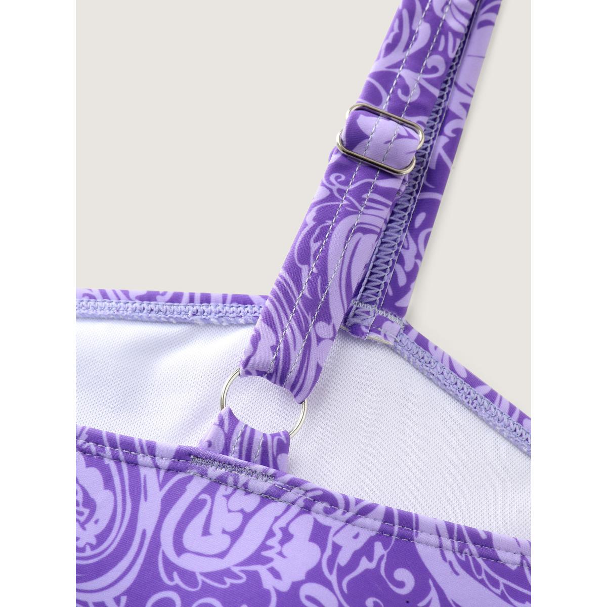 Plus Size Paisley Print Twist Front Swim Dress Women's Swimwear Lilac Resort Bodycon U-neck High stretch Curve Swim Dresses BloomChic 26/4X