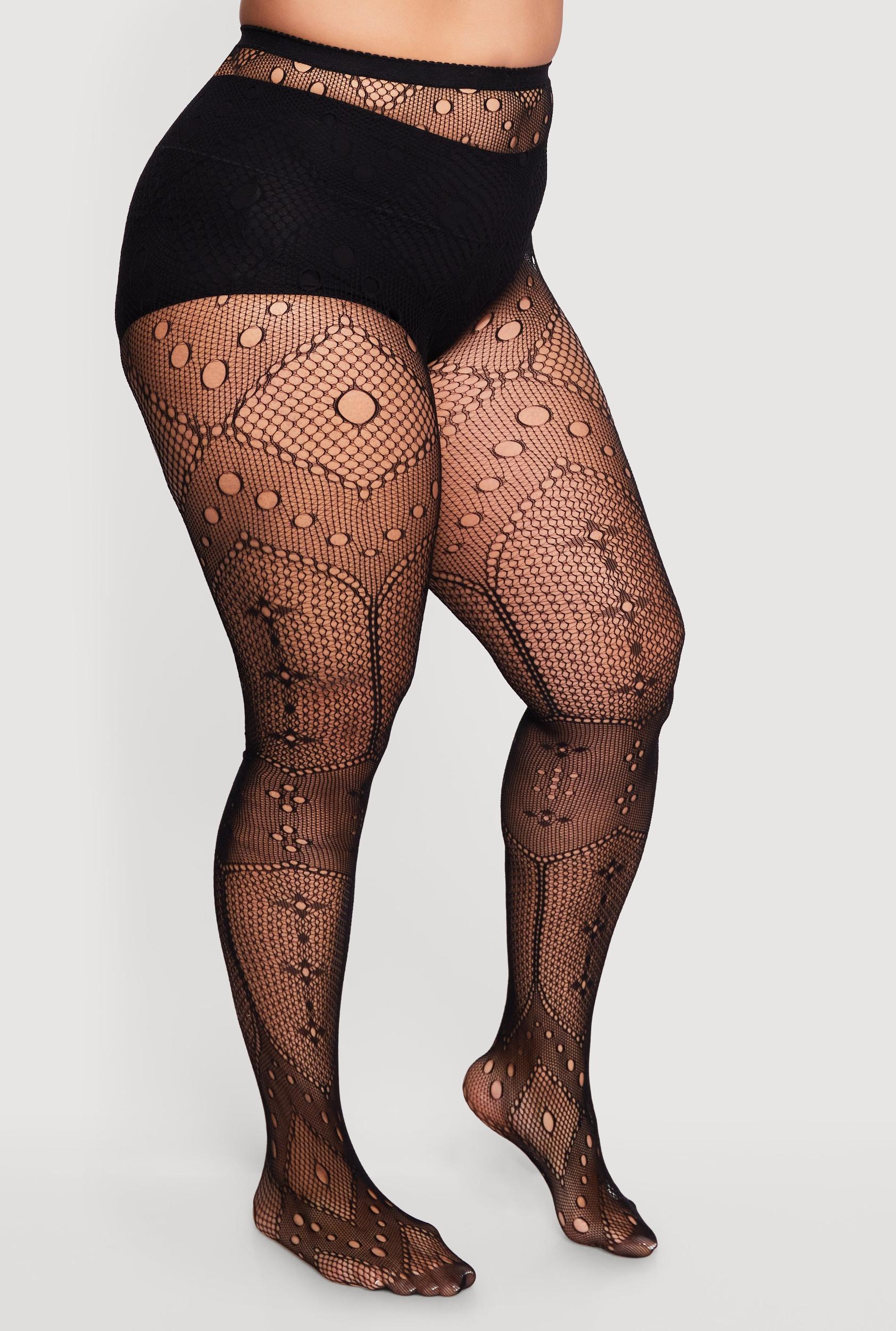 Step up your style game with these Plus Size High Waisted Patterned Fishnet Tights designed to hug your curves and add an edgy vibe to any outfit. Made from breathable fishnet material, these tights offer a bold look without sacrificing comfort. The high waist design provides extra support and a flattering silhouette, perfect for day-to-night wear. Whether you’re pairing them with your favorite skirt or layering under ripped shorts, these tights are your new go-to for effortless cool. One size fits most: 1X to 3X, fits weights from 150 to 190 lbs High-waisted for a smooth, flattering fit Made from breathable fishnet material for comfort and style Solid pattern adds a sleek, edgy touch to any look Final sale item, so grab yours before they’re gone Model Pictured Wearing Size ONE SIZEHeight 5 ft 8 in, Bust 36 in, Waist 35 in, Hips 47 inFits True To SizeContent and Care Material: 80% Nylon, 20% Spandex Care Instructions: Machine Wash, Tumble Dry Country Of Origin: China Rainbow Item Number 1150041451320