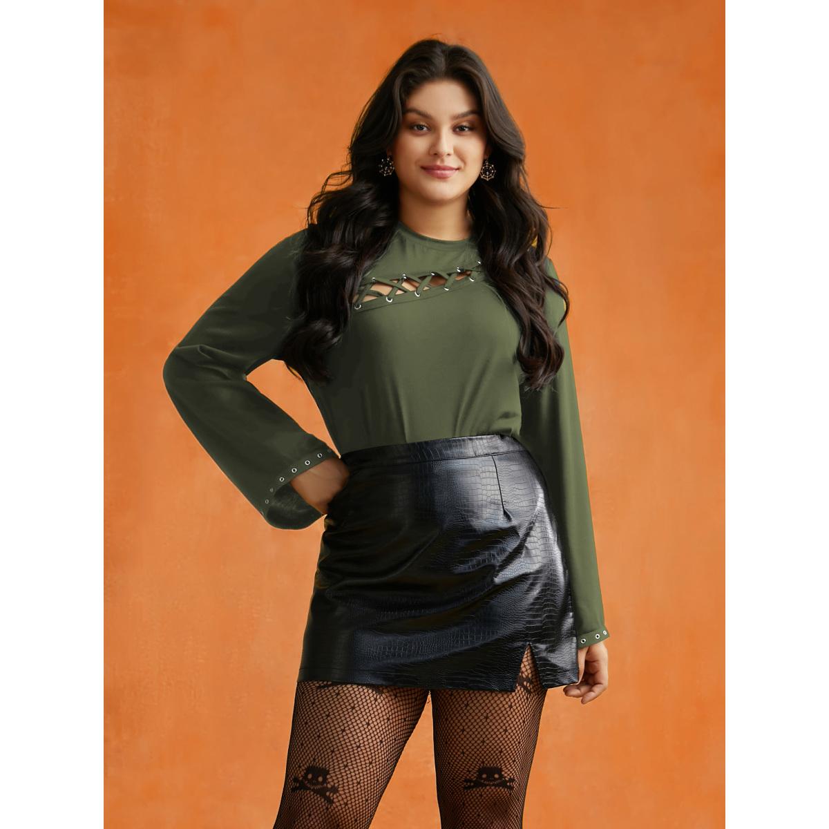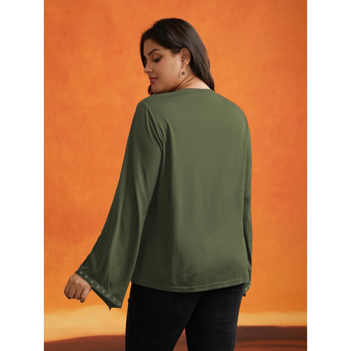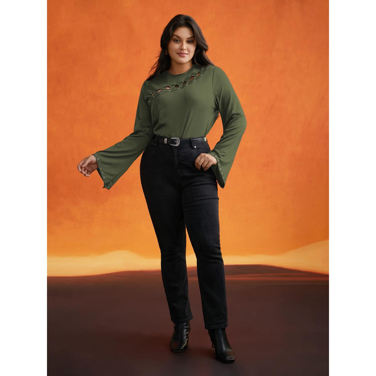 Plus Size Peek-A-Boo Cut-Out Neckline T-shirt ArmyGreen Women Timeless Eyelet Round Neck Elegant T-shirts BloomChic 10/M