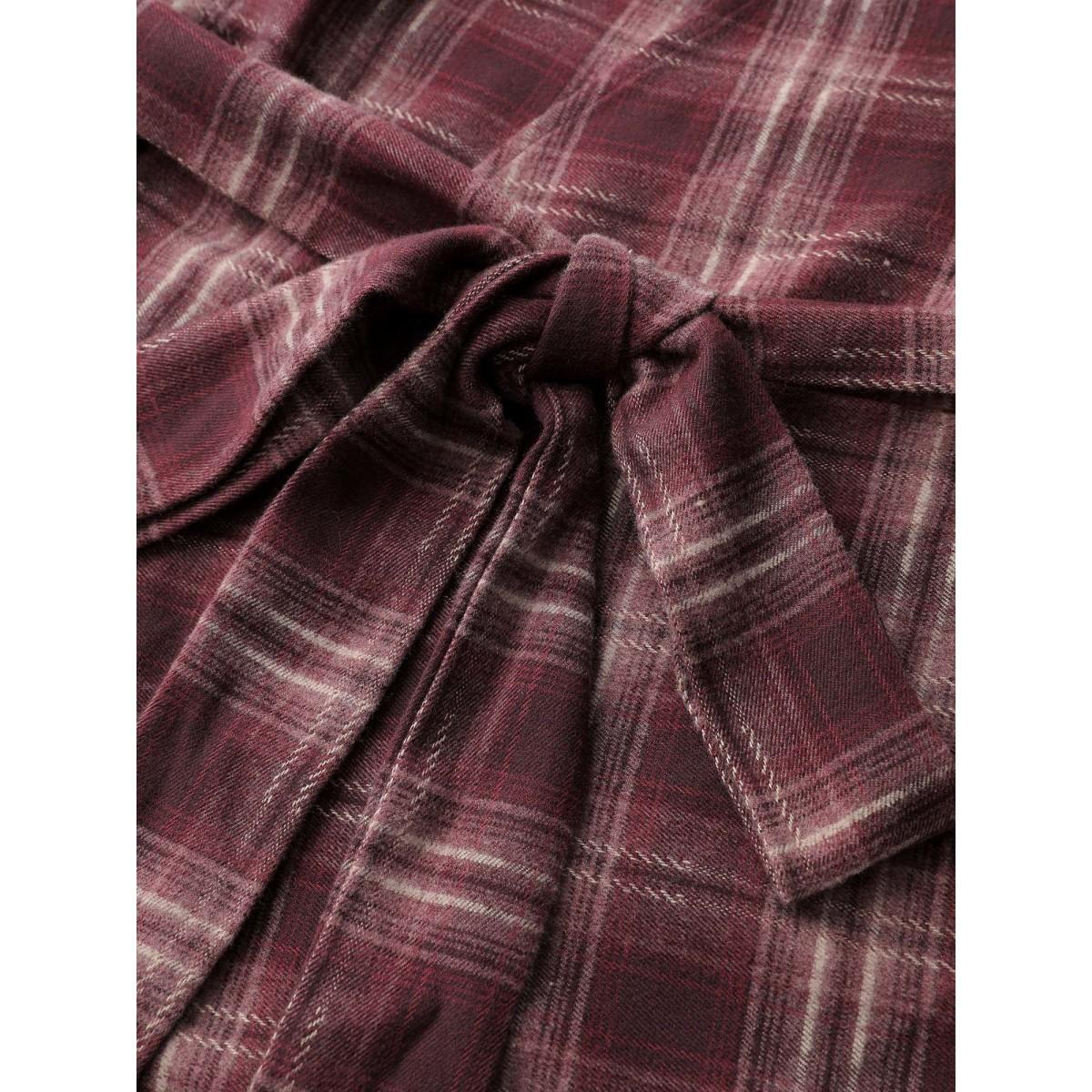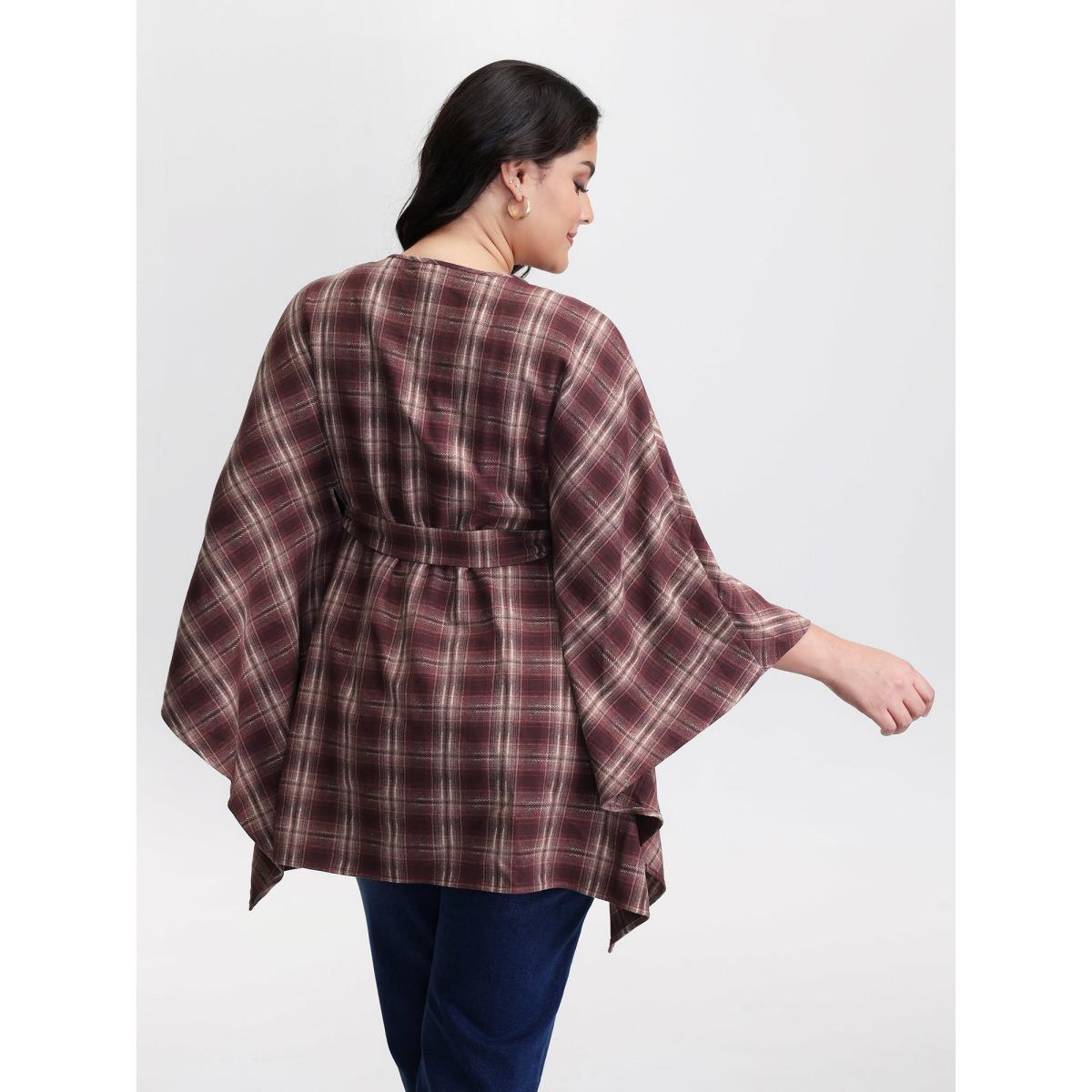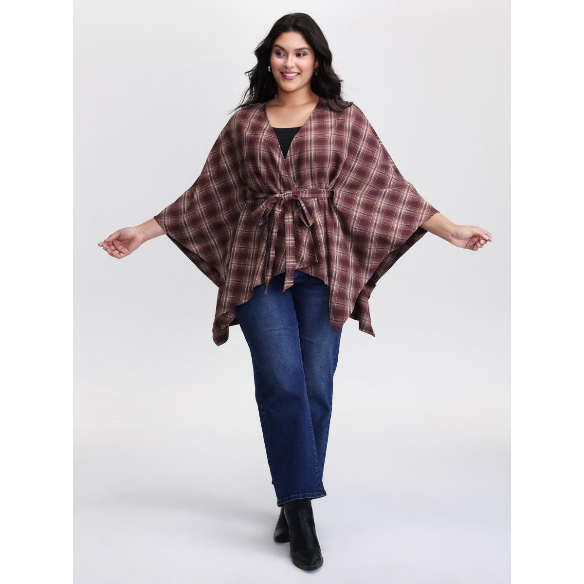 Plus Size Plaid Asymmetrical Hem Cinched-Waist Coat Women Burgundy Timeless Belted Ladies Elegant Winter Coats BloomChic 30/6X
