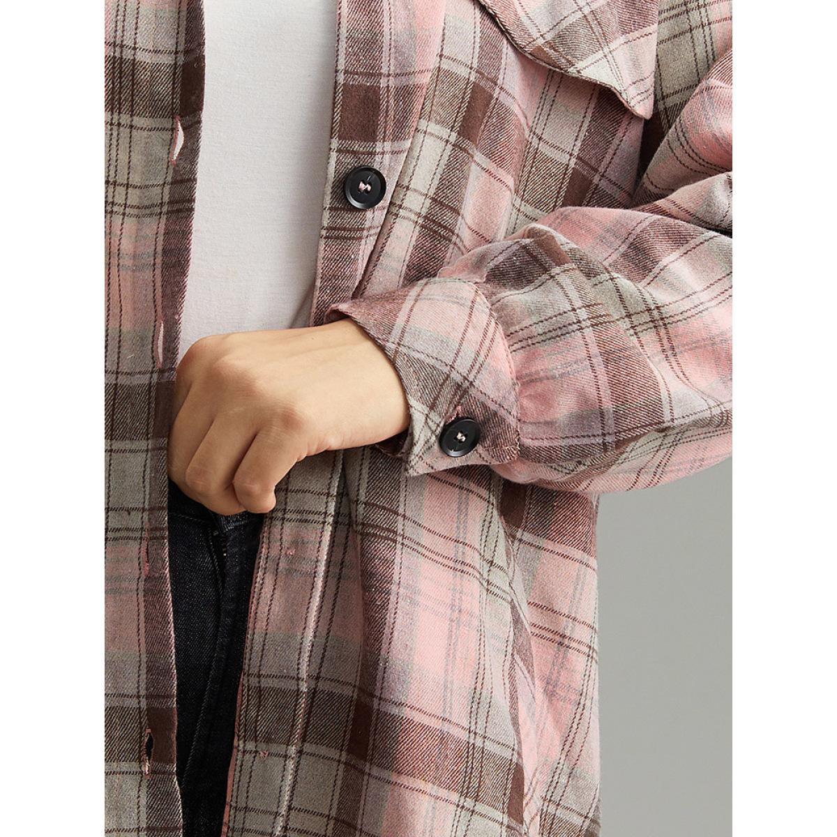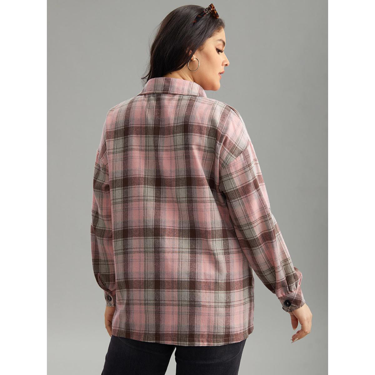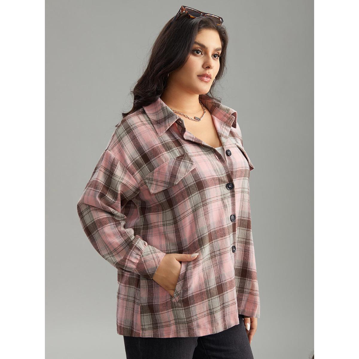Plus Size Plaid Contrast Flap Pocket Button Fly Shacket Women Watermelon Casual Contrast Ladies Dailywear Winter Coats BloomChic 30/6X