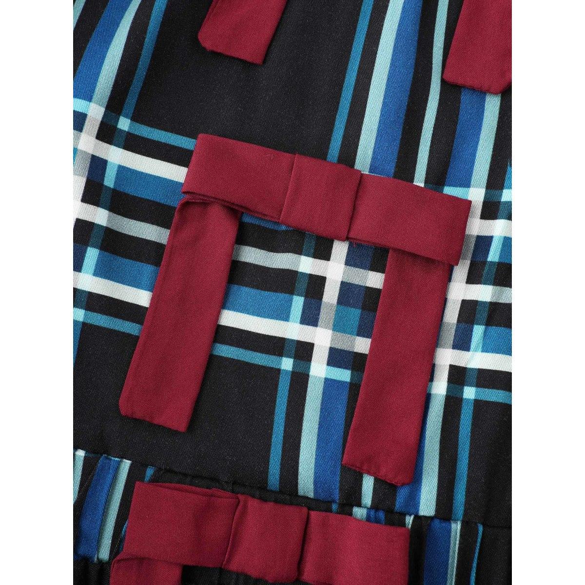 Plus Size Plaid Pattern Bowknot Pockets Maxi Dress DarkGreen Women Leisure Tie knot U-neck Long Sleeve Curvy BloomChic 28/5X Product Image