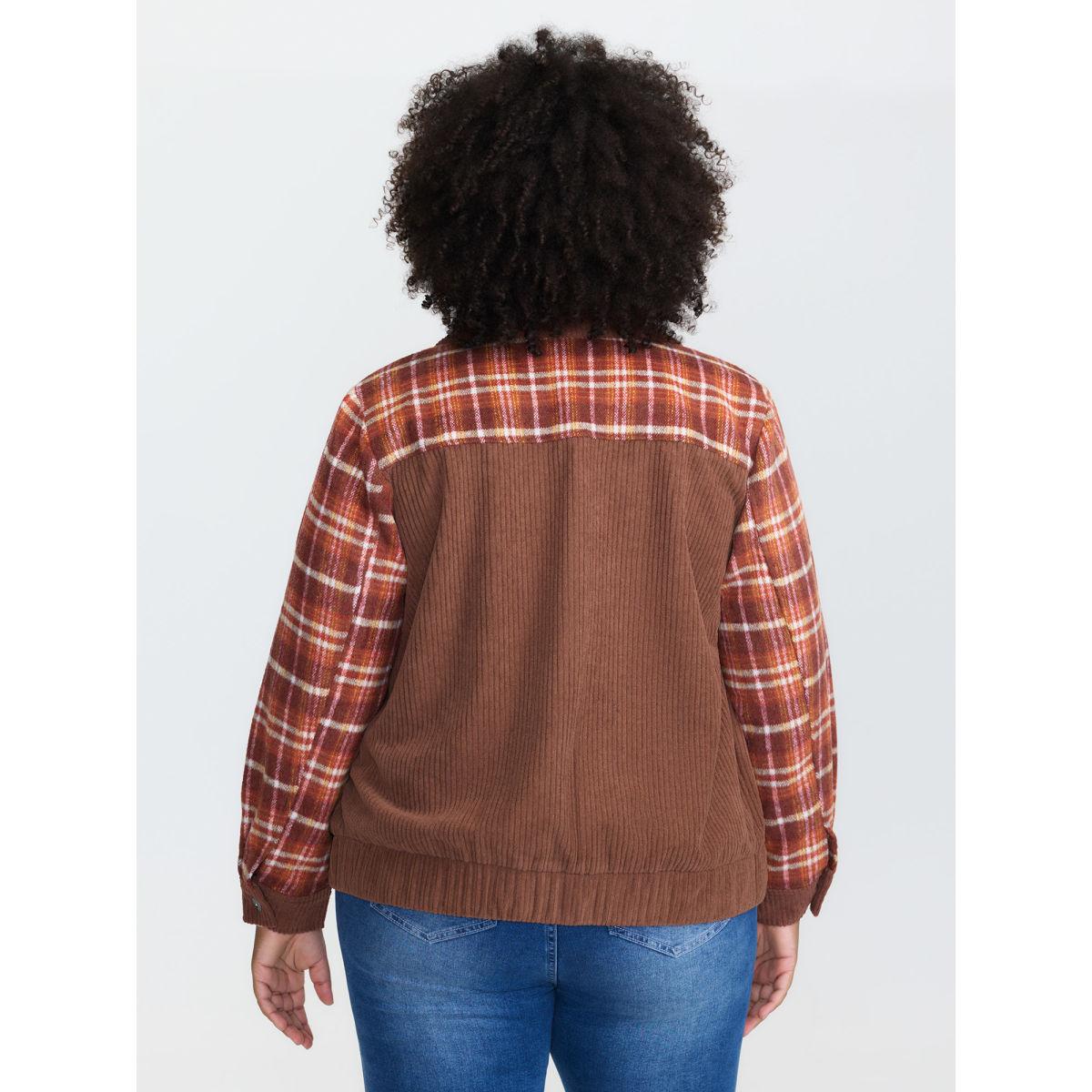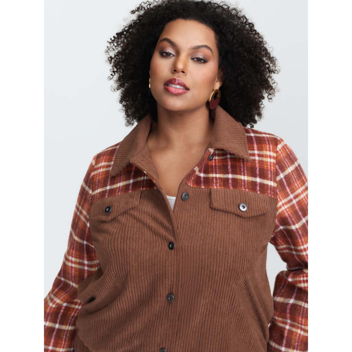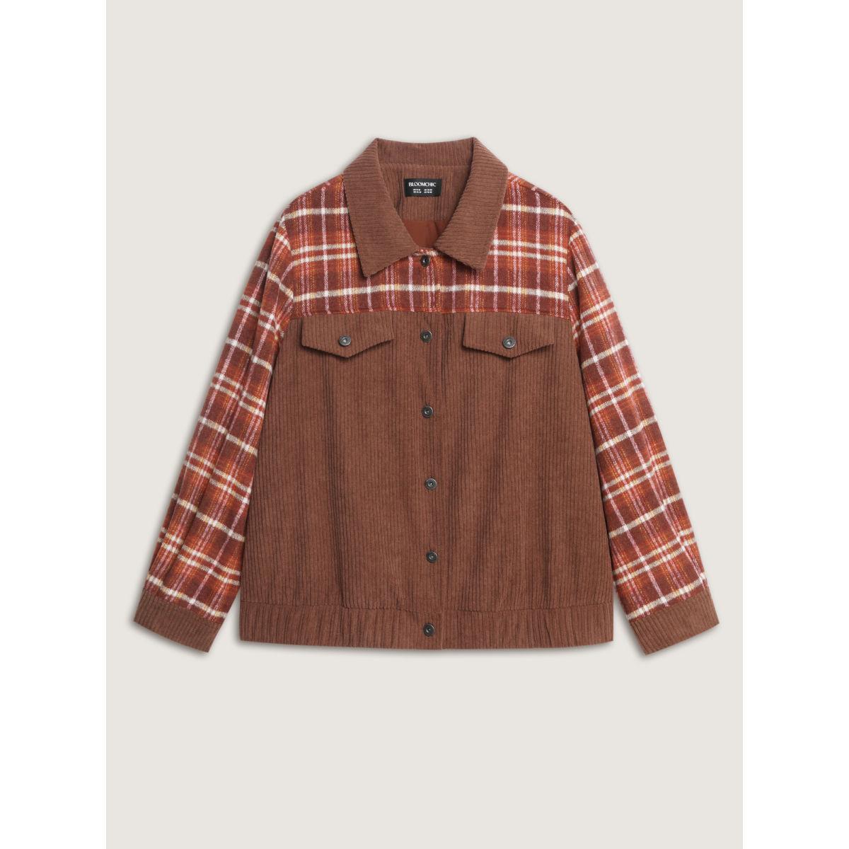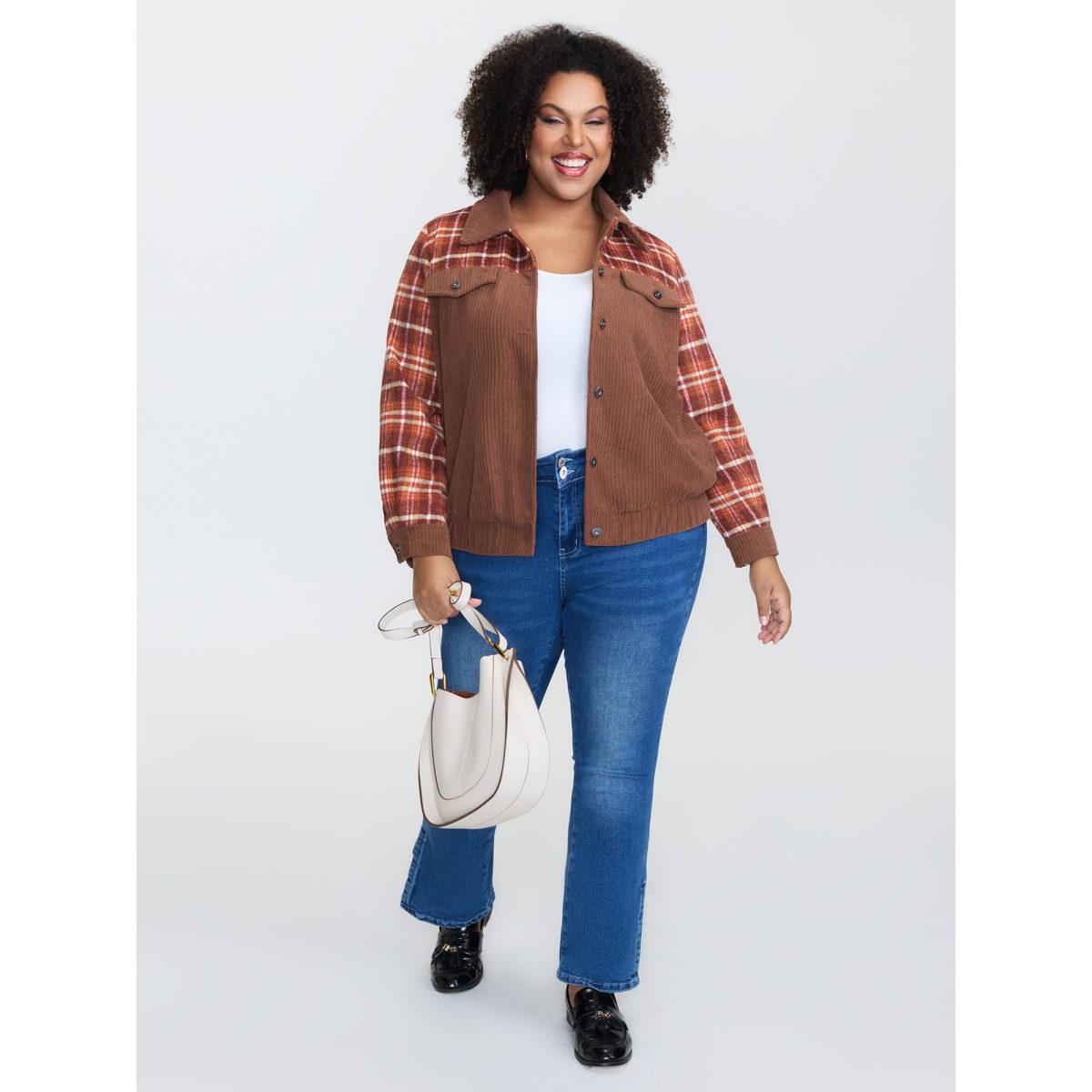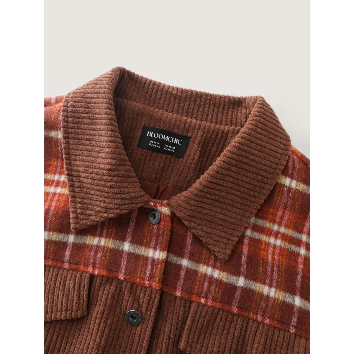 Plus Size Plaid Pattern Contrast Button Coat Women Browncoffeecolor Leisure Contrast Ladies Casual Winter Coats BloomChic 26/4X